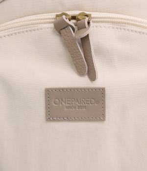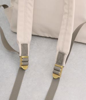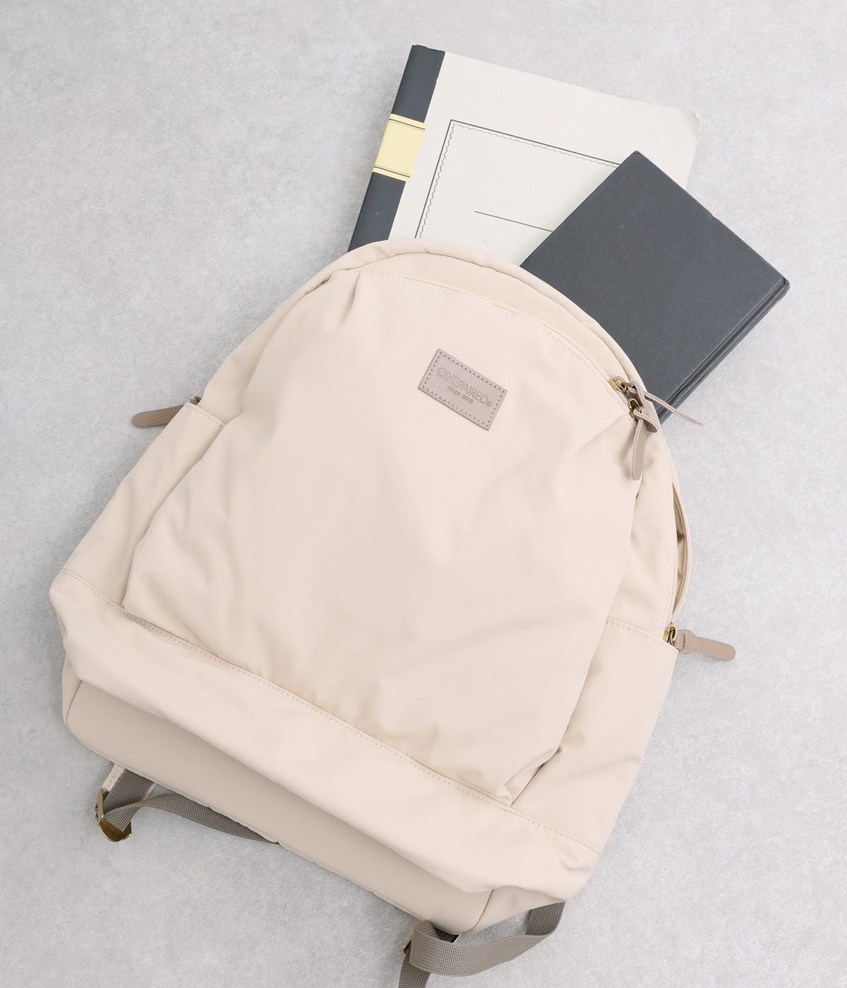 さらりとした手ざわりのナイロン生地に撥水加工をほどこしました。マットな質感でほのかな光沢感が上品な印象です。ファスナーや取手部分にはやわらかな牛革を合わせました。