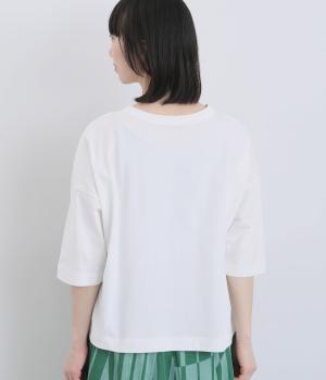 さらりと編み上げたコットン素材を使用した、やさしい肌ざわりの生地です。なめらかな表面感とほどよい厚みがあり、軽やかな風合いながら安心感のある着心地に仕上げました。
