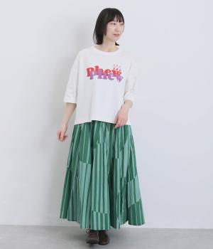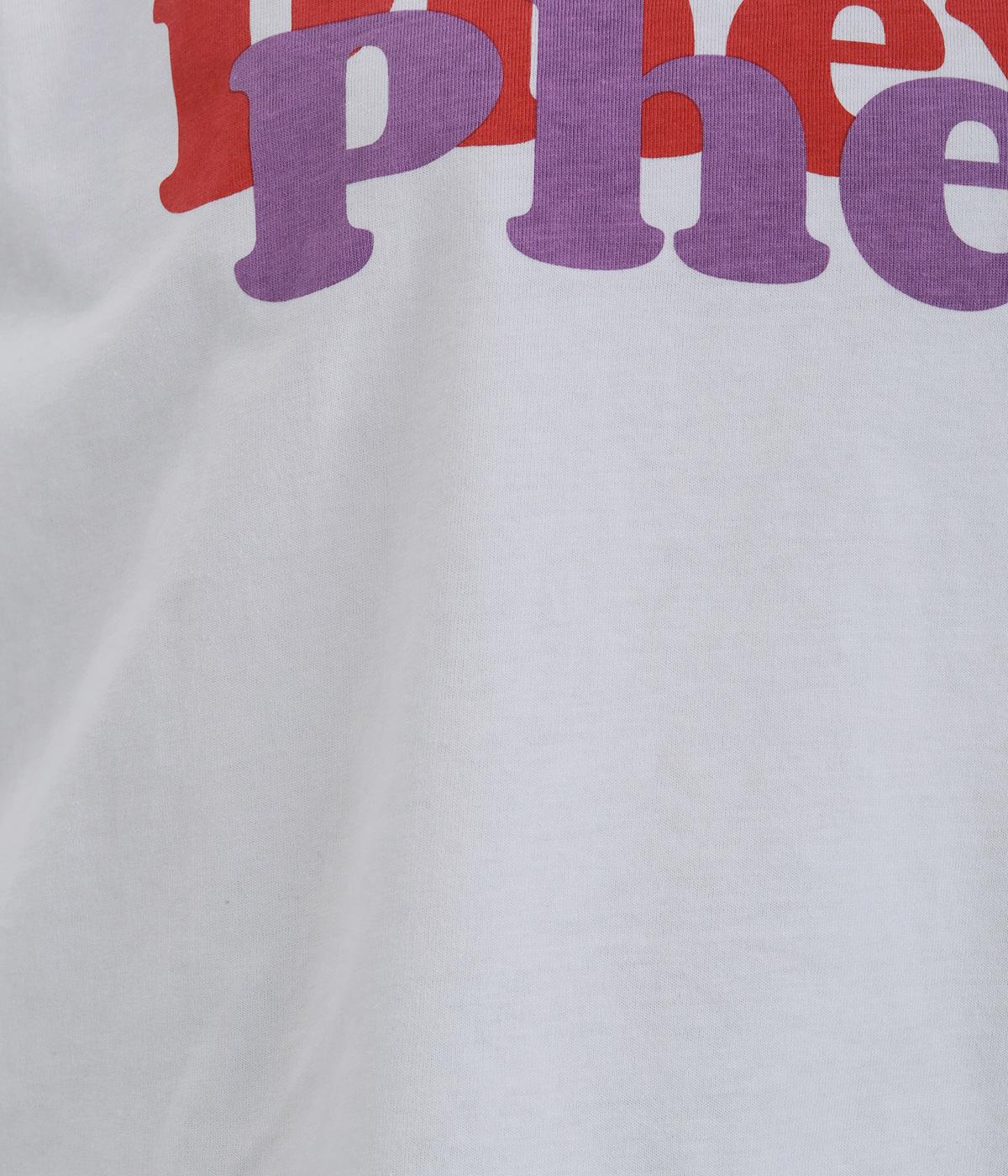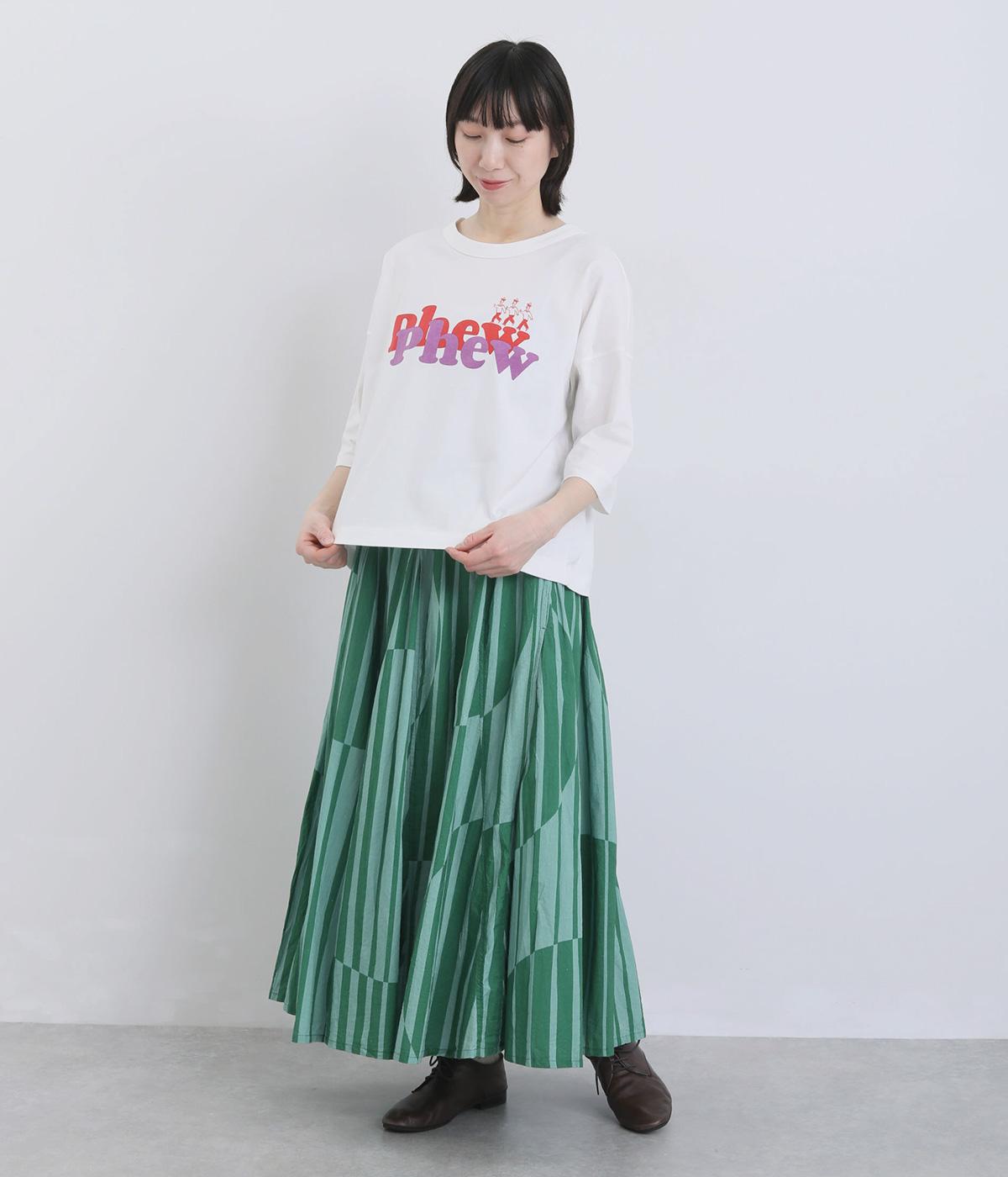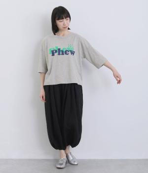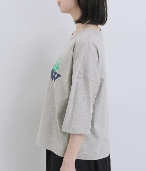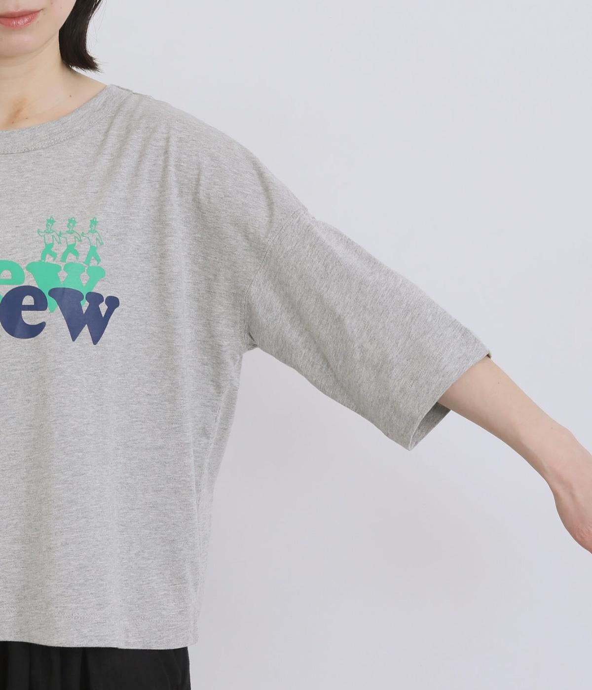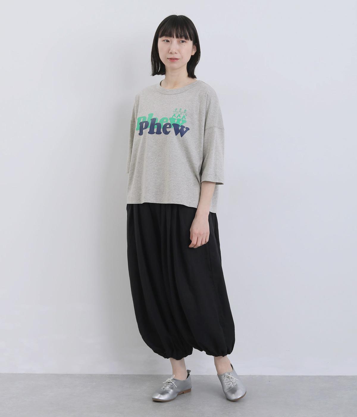 2色使いのロゴプリントと、セーラーおじさんのイラストが並んだ、遊び心のあるデザインです。どこかレトロな雰囲気があり、コーディネートのアクセントになります。ゆったりとしたボックスシルエットで、リラックス感のある着こなしに。腰にかかる着丈で、さまざまなボトムスと合わせやすい一枚です。