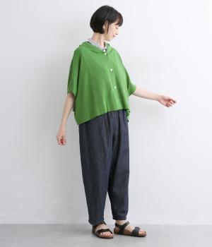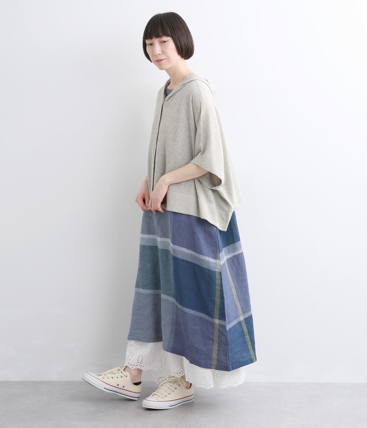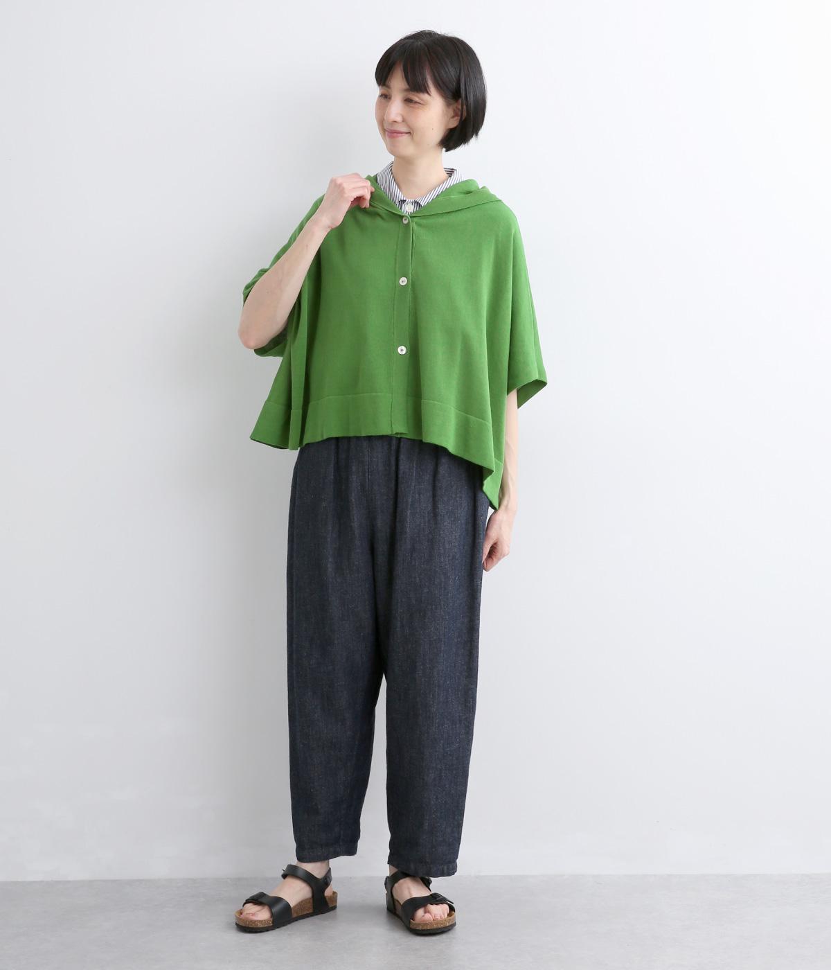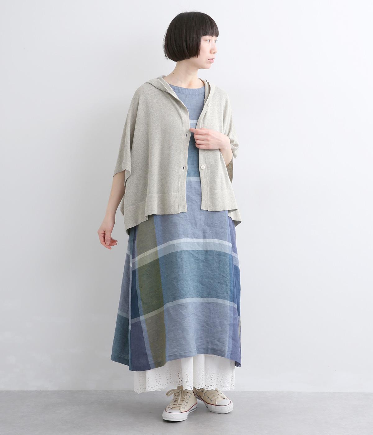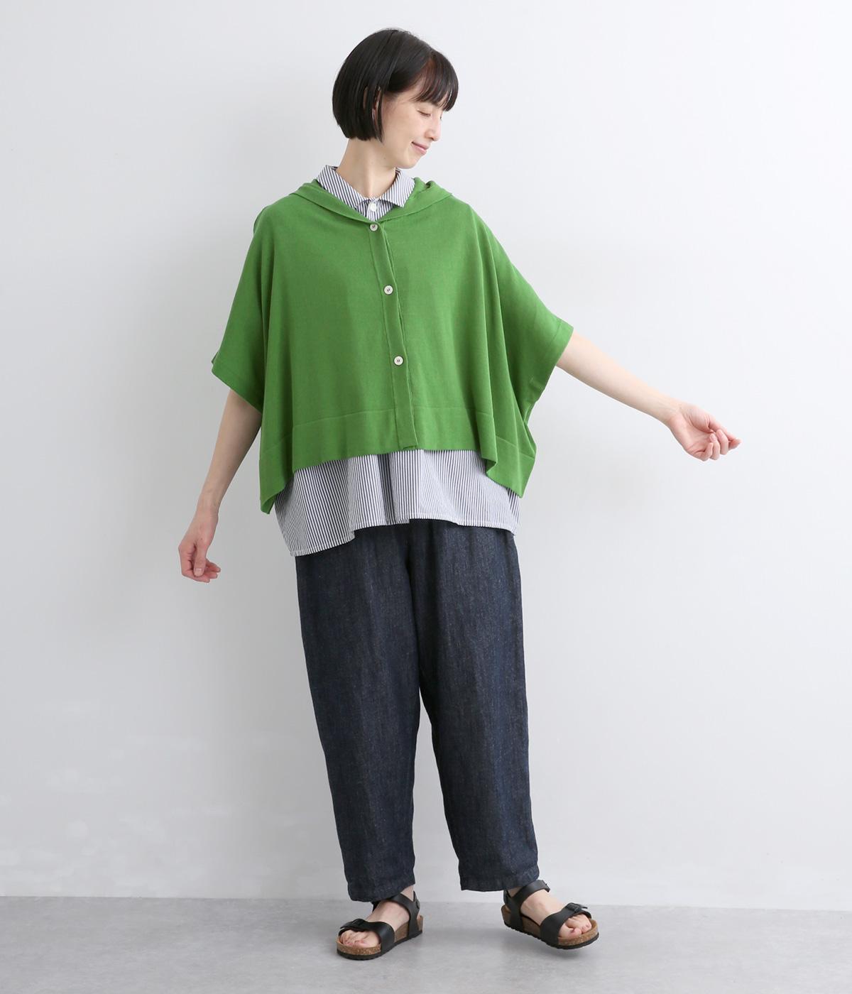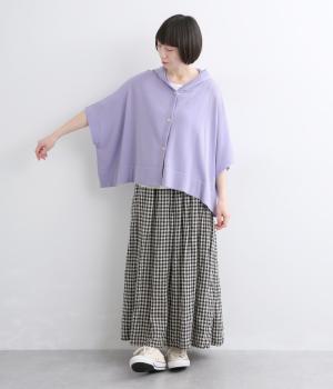 四角いフォルムが抜け感のある装いをつくるニットポンチョです。ボタンをあけてカーディガン感覚で羽織ったり、ボタンを留めてプルオーバーとして着ることもできます。ロングTシャツとの重ね着もできるので、ロングシーズン活躍する一枚に。