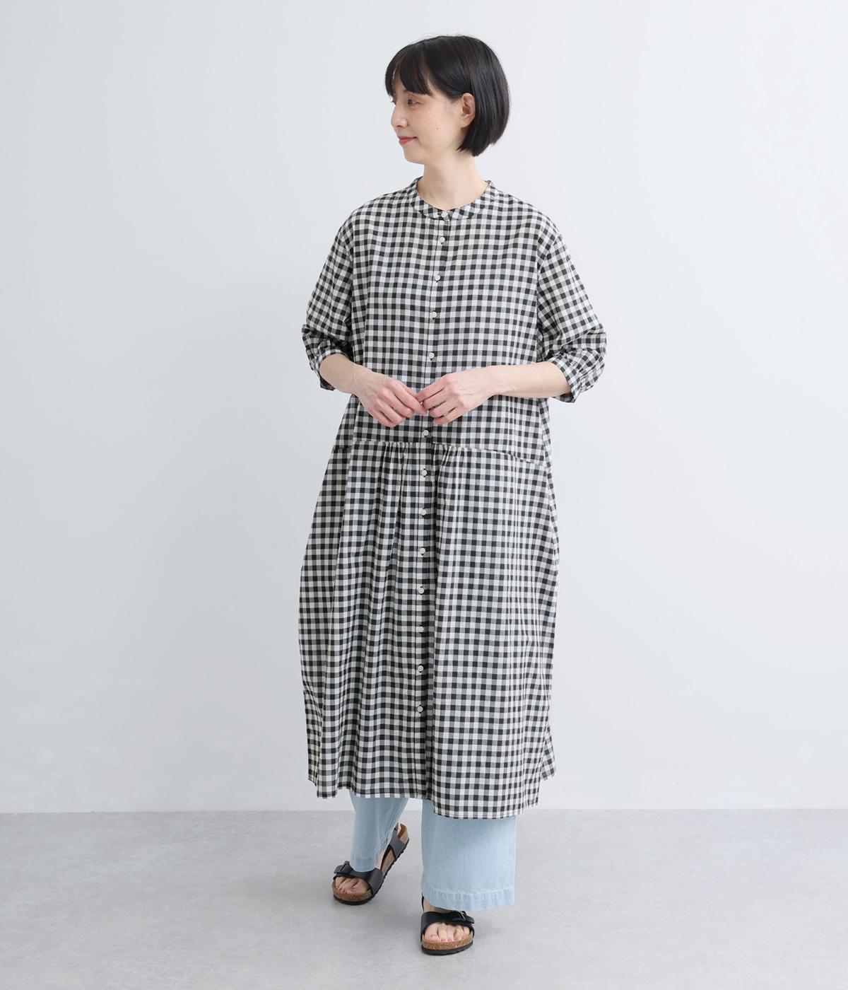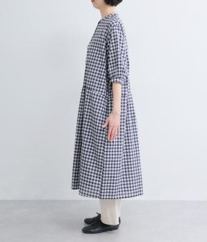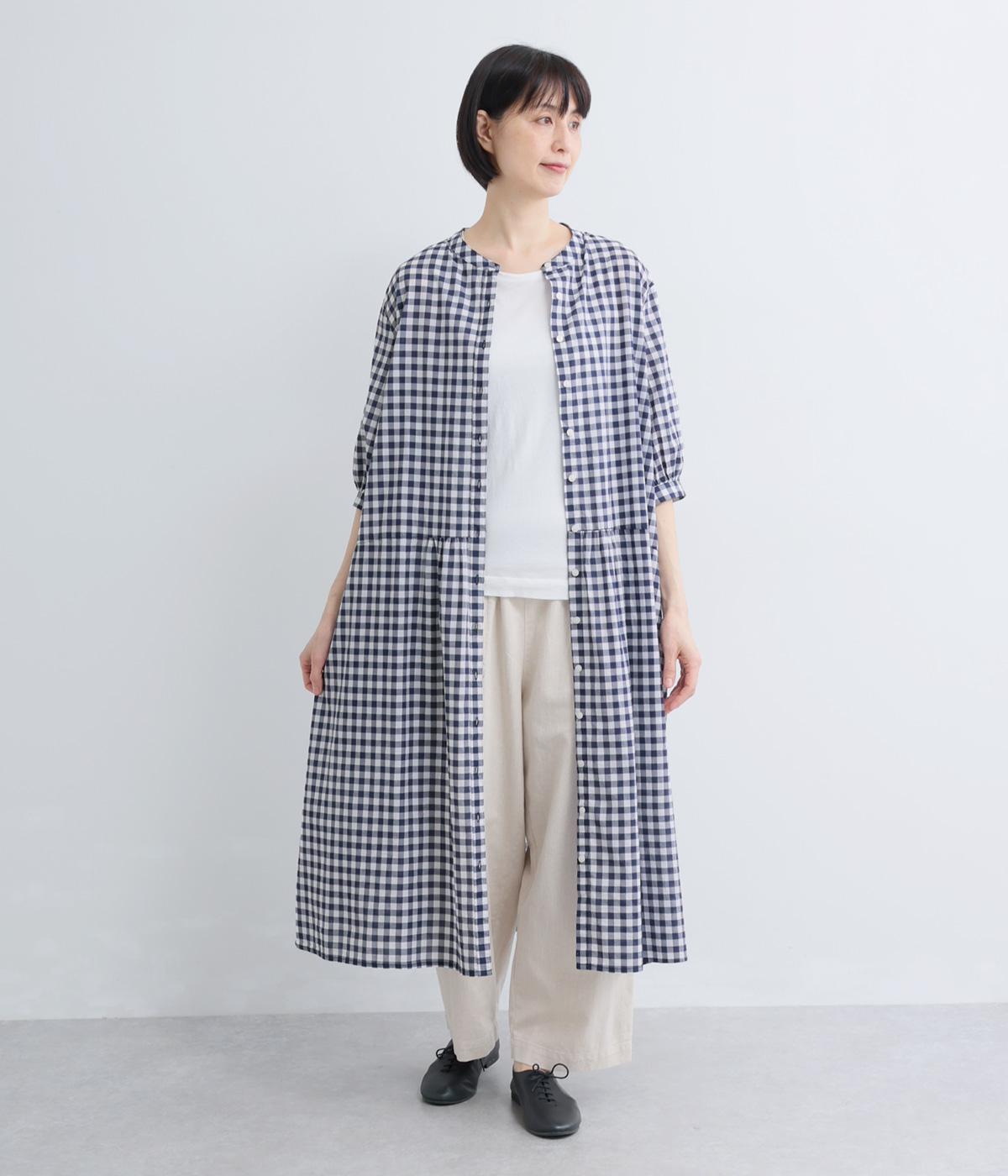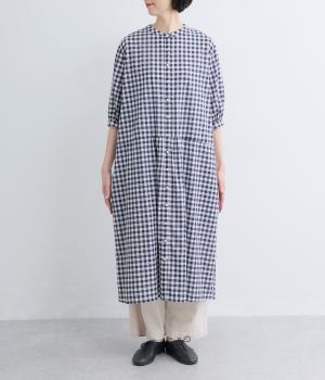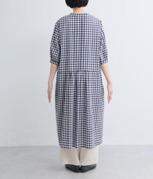 コットンリネンビッグチェックシャツワンピース
