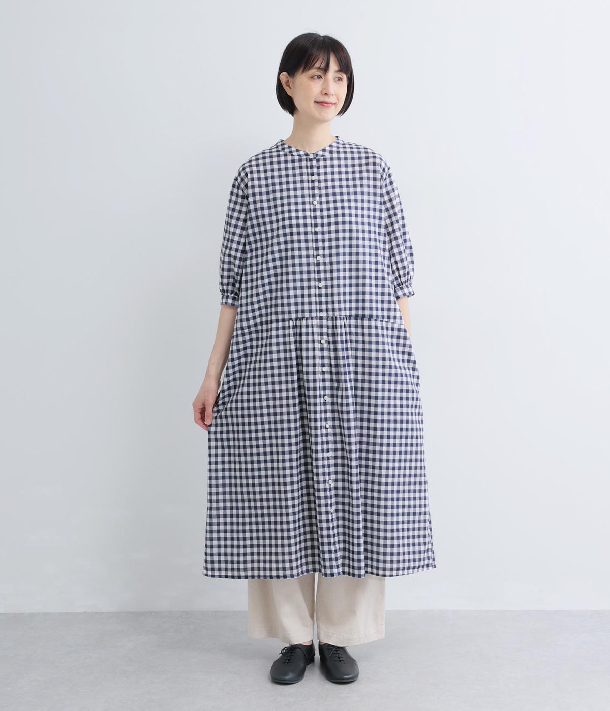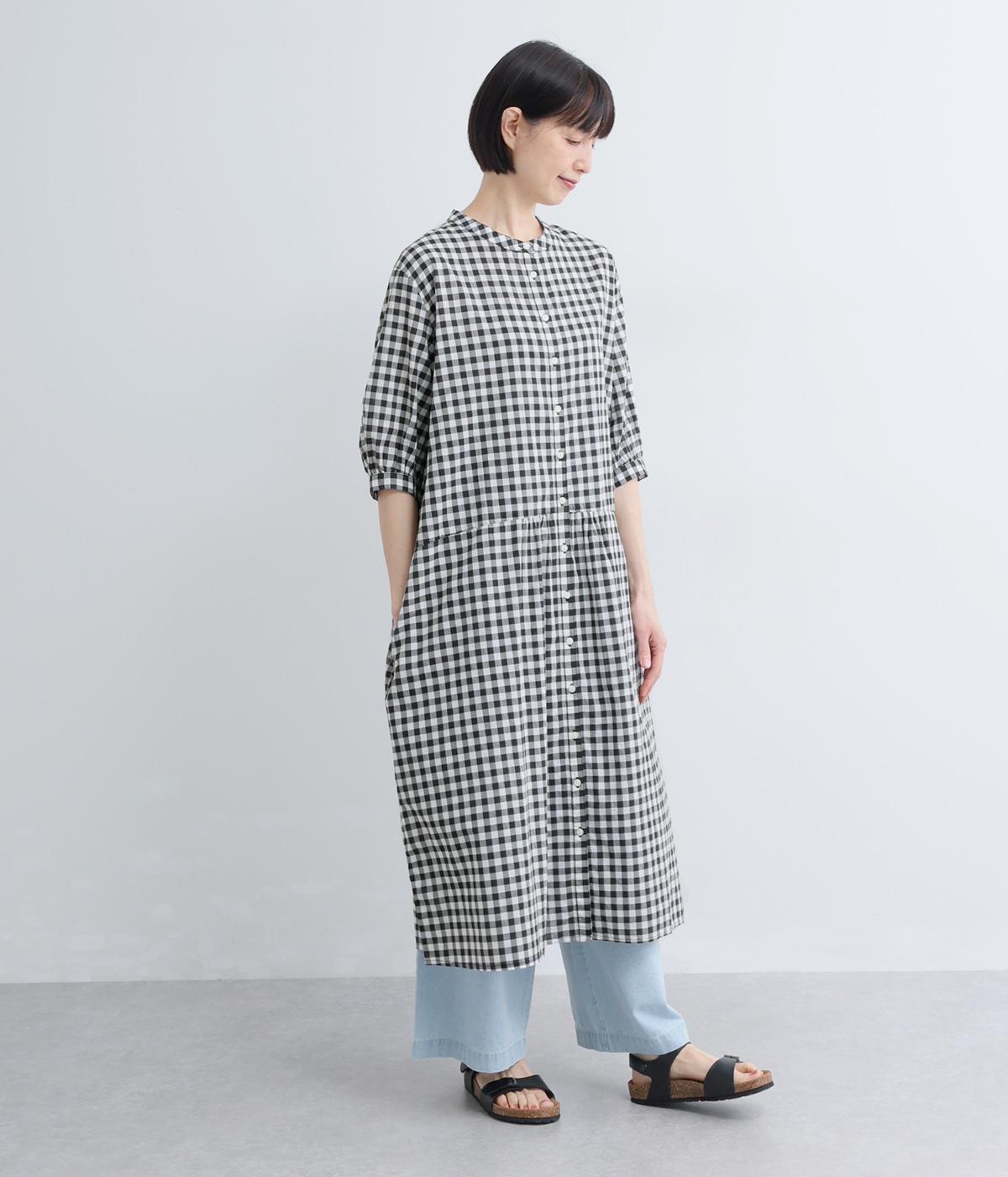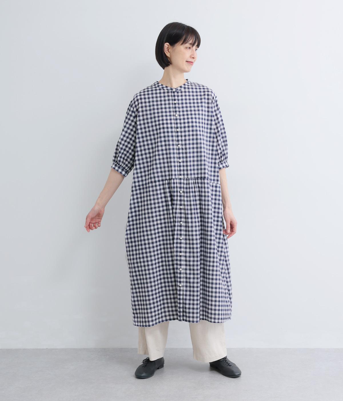 コットンリネンビッグチェックシャツワンピース