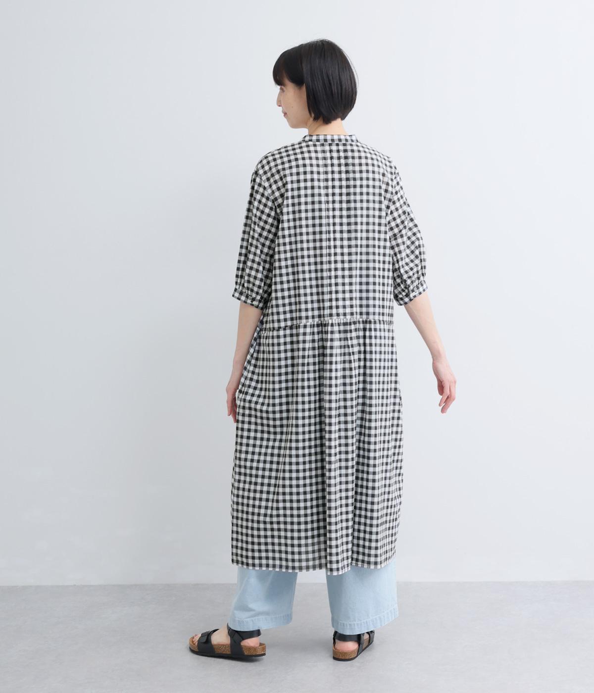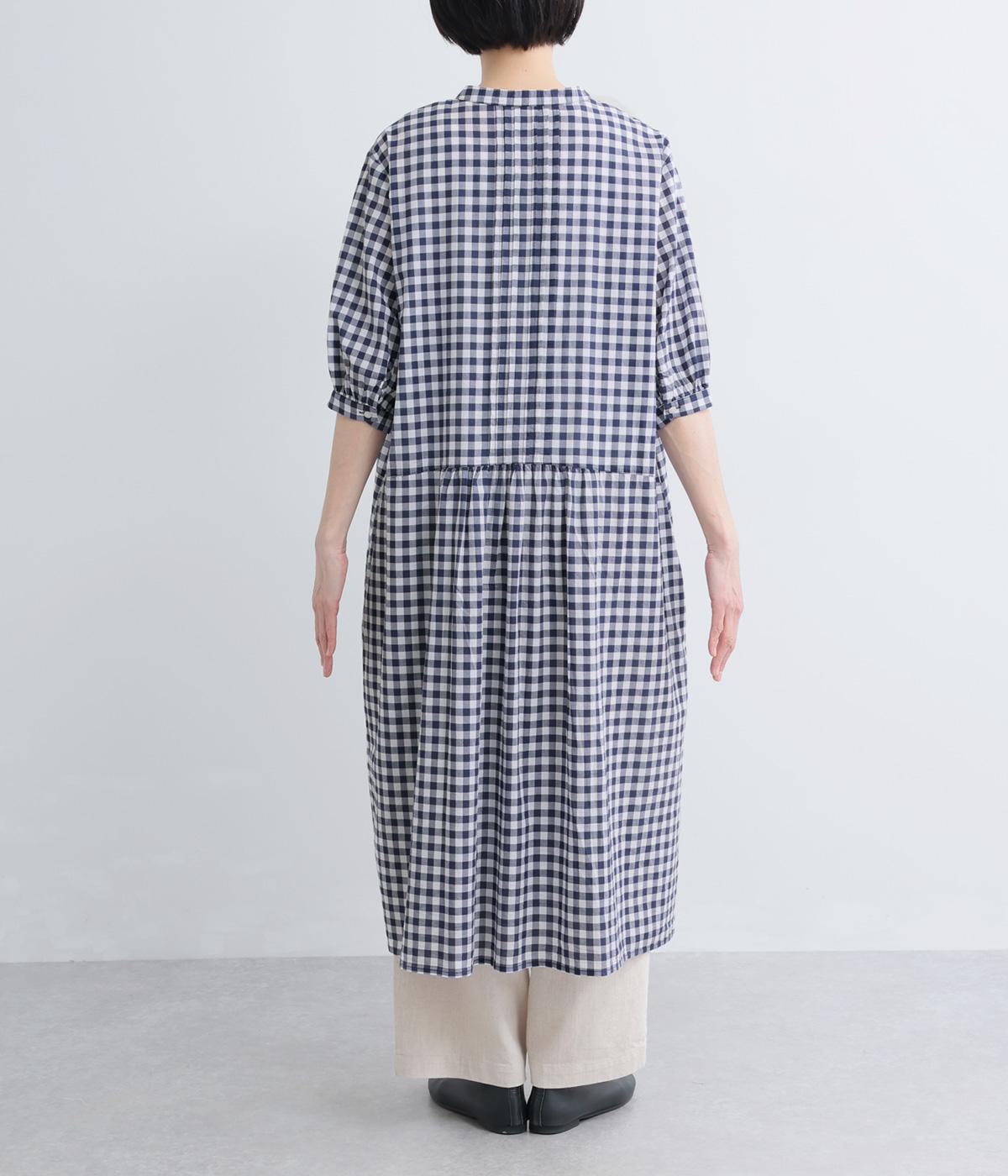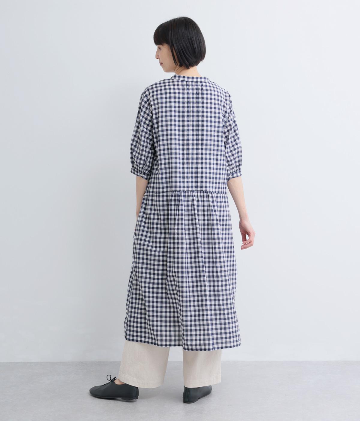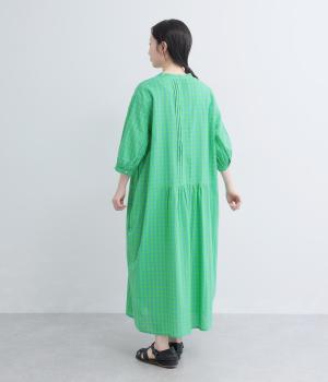 ドットギンガムバックギャザーワンピース