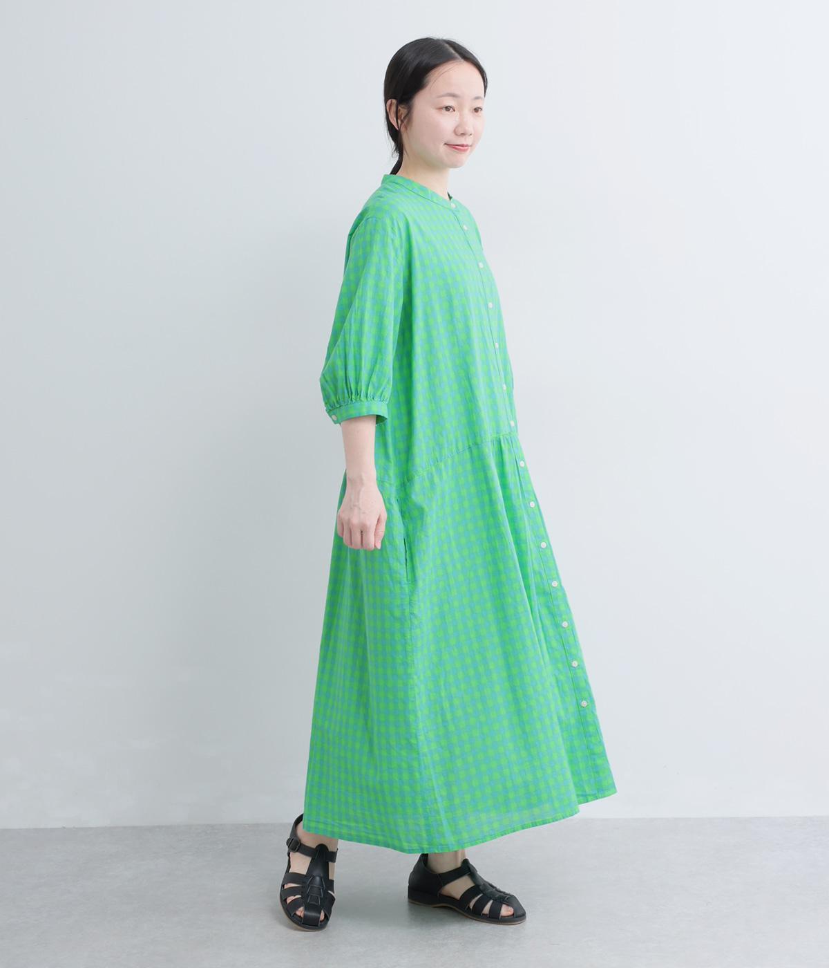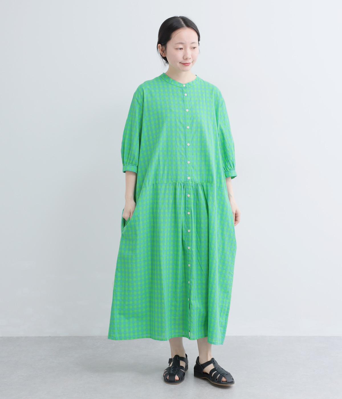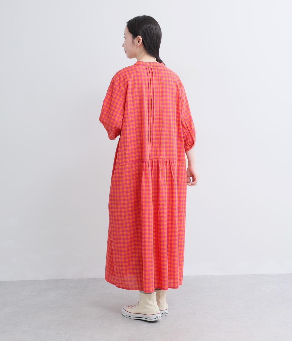 ドットギンガムバックギャザーワンピース
