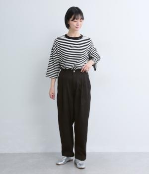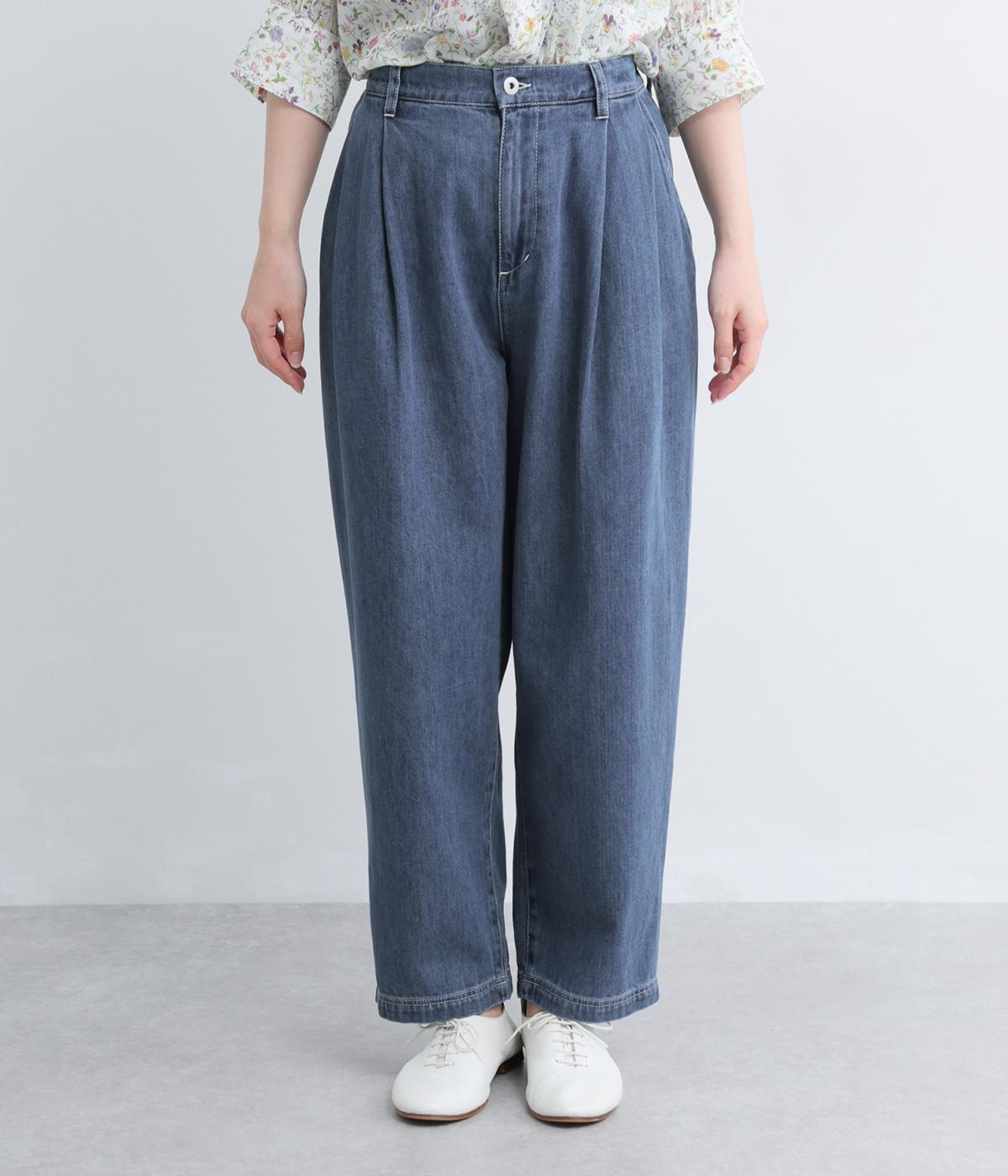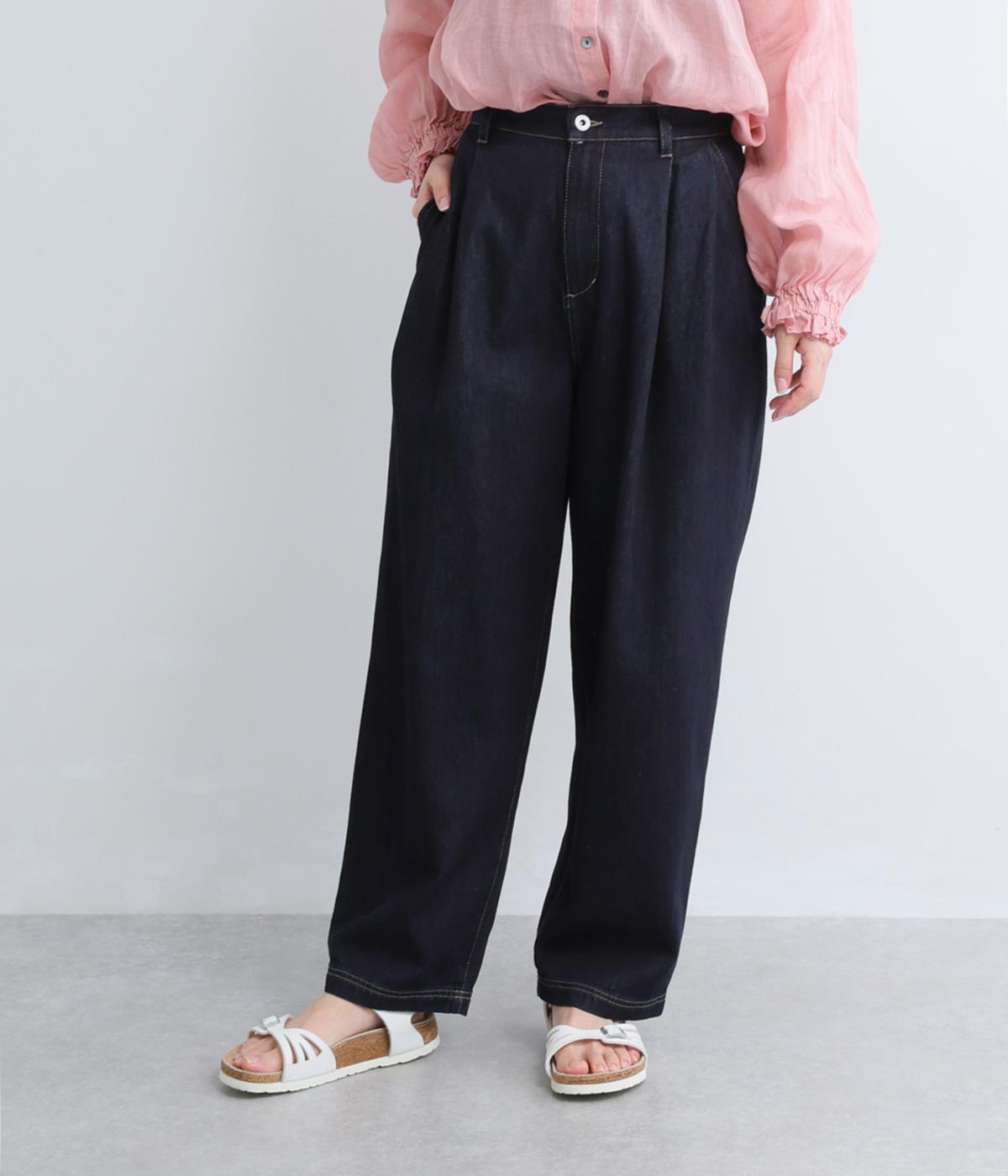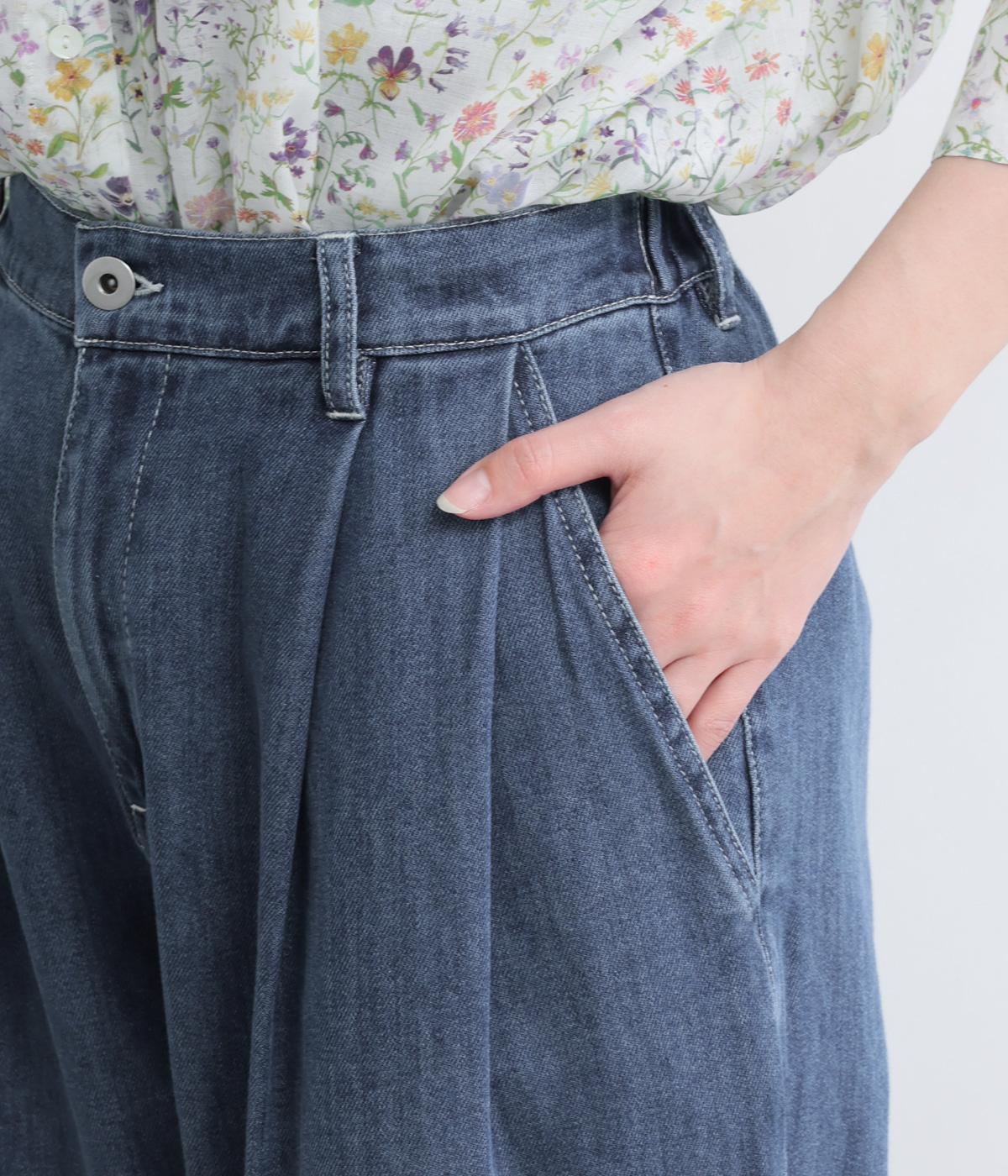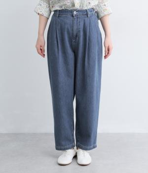 ライトオンスコットンリネンデニム2タックワイドテーパードパンツ