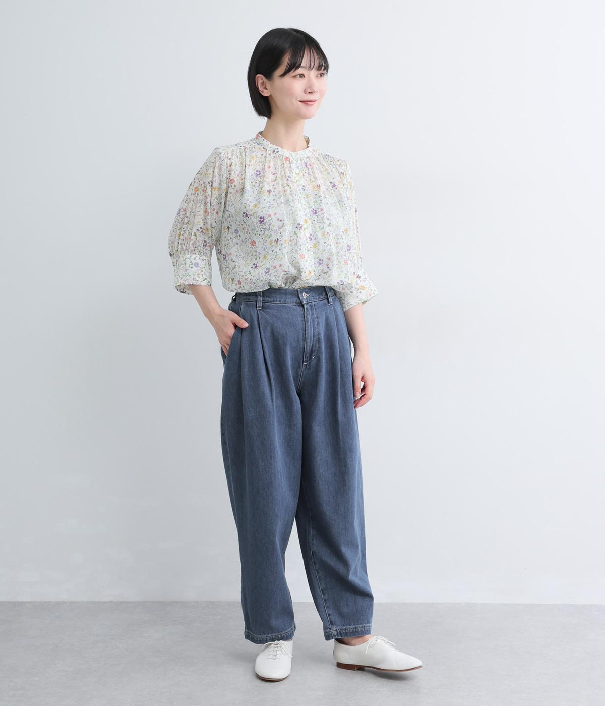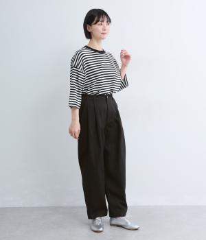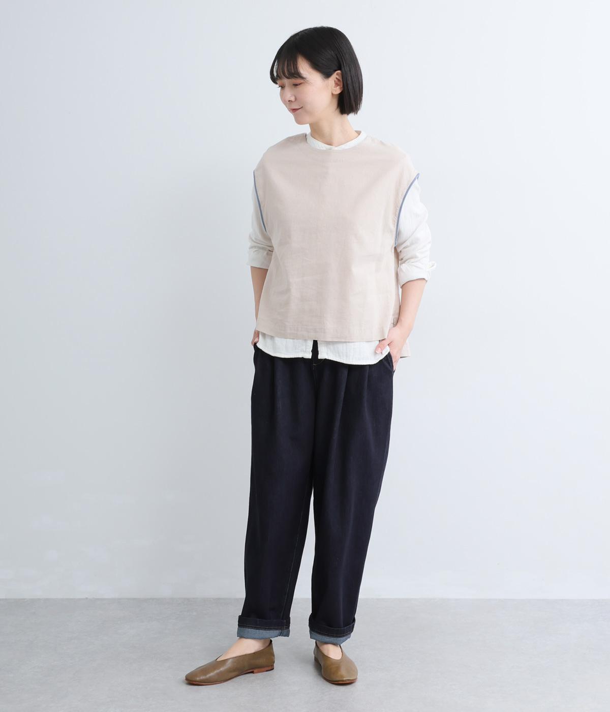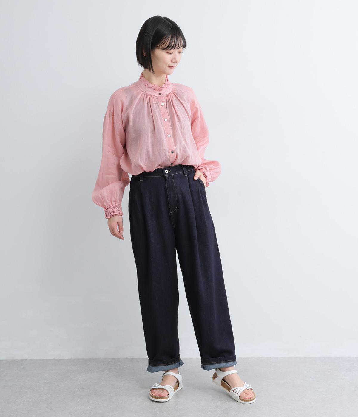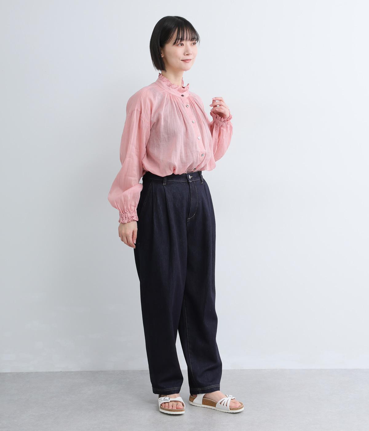 ライトオンスコットンリネンデニム2タックワイドテーパードパンツ