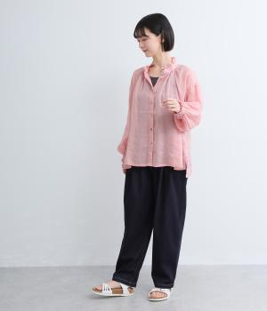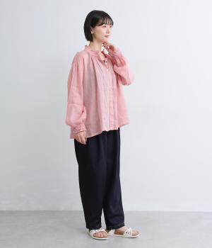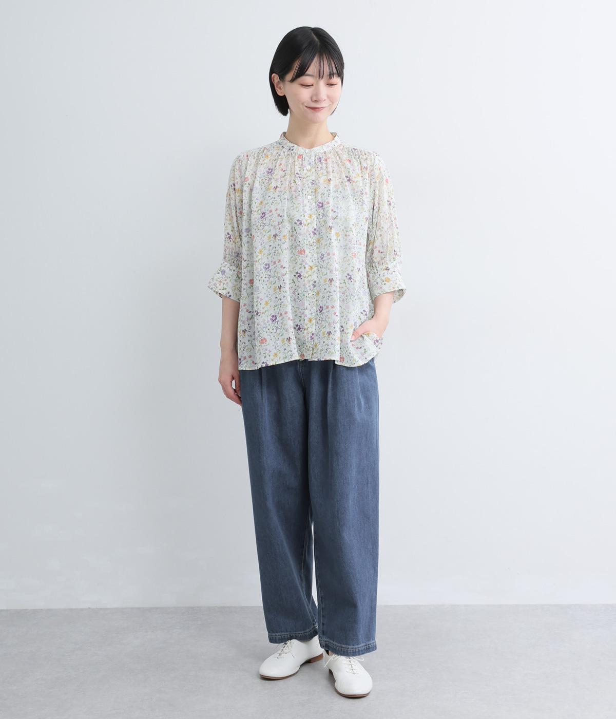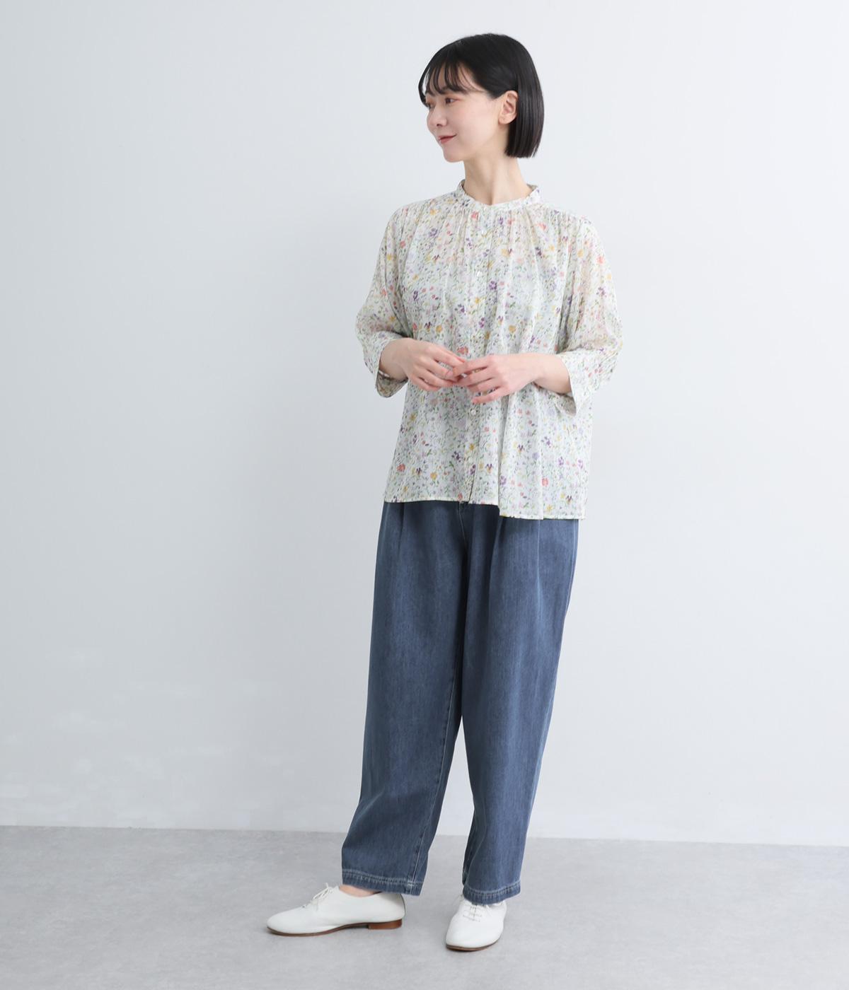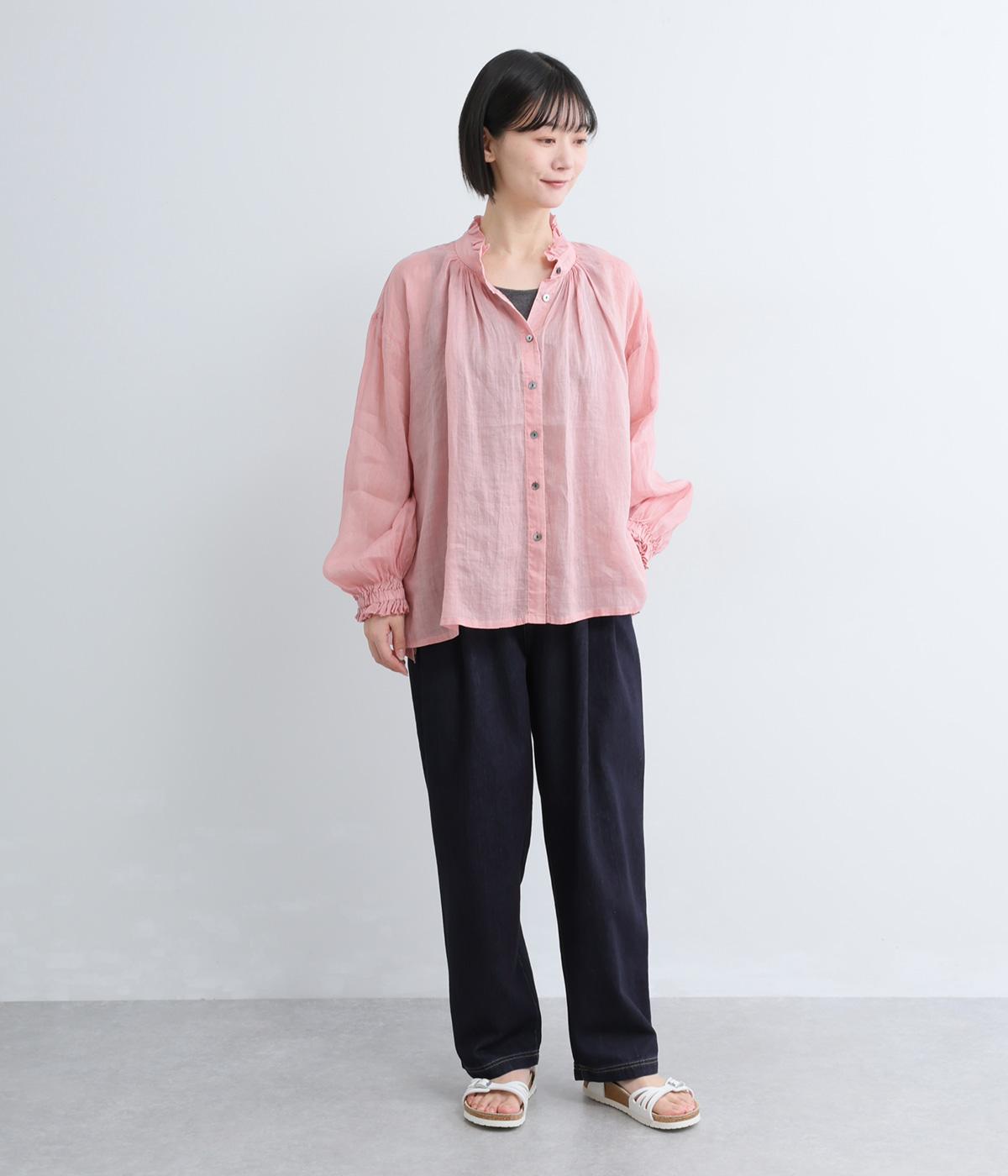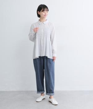 ライトオンスコットンリネンデニム2タックワイドテーパードパンツ