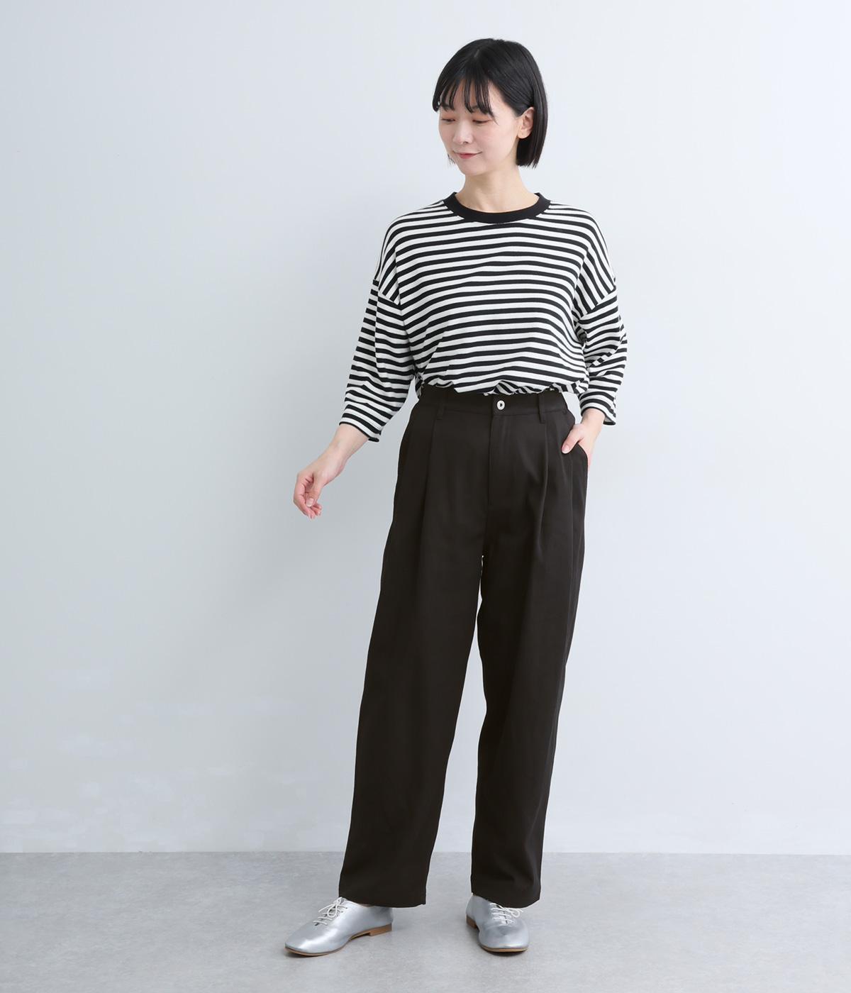 1枚で着映えるワイドプルオーバー(オフホワイト×ブラック)