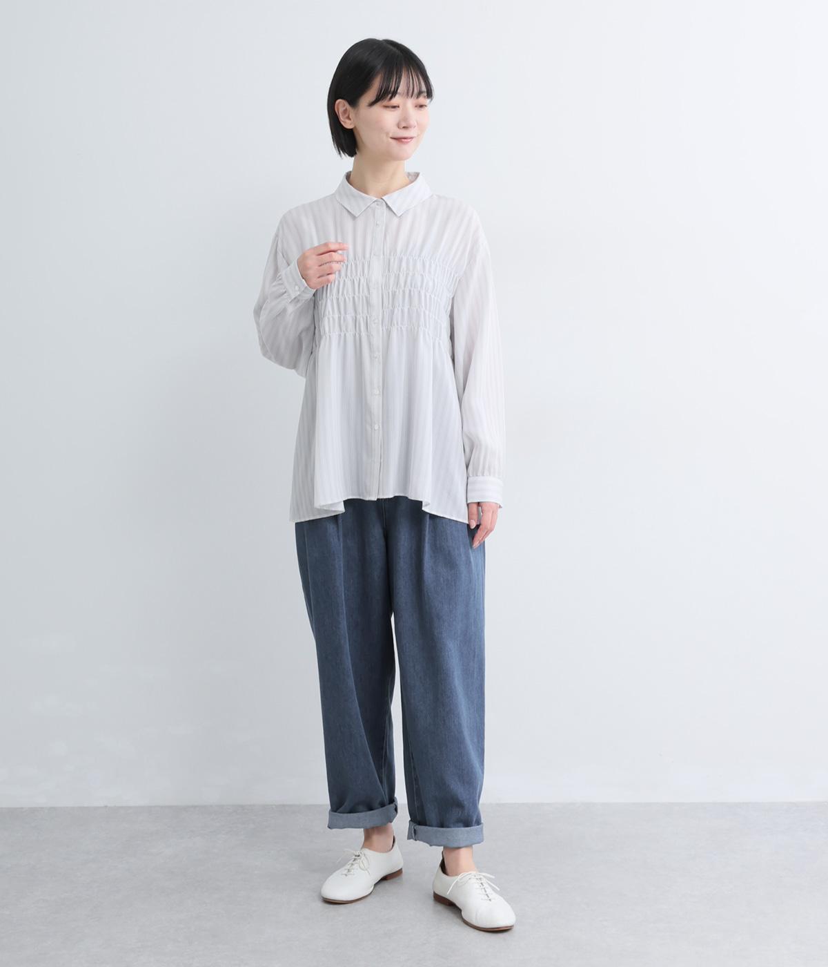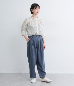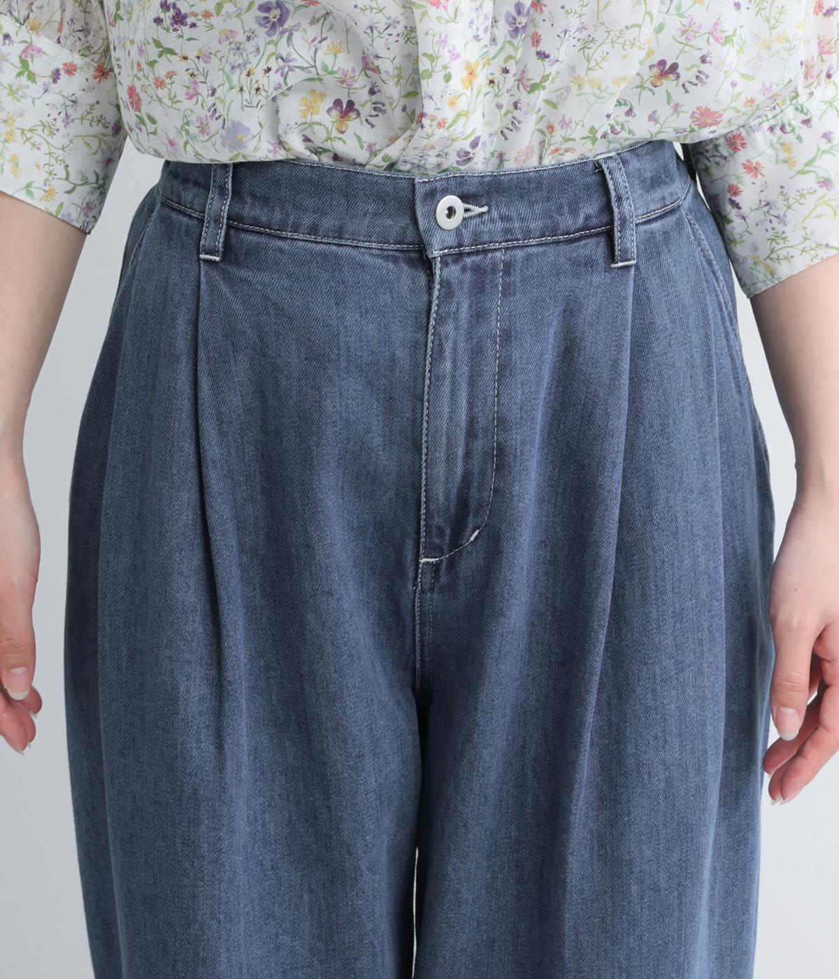 6.5ozデニムケミカルウォッシュ加工タックイージーパンツ