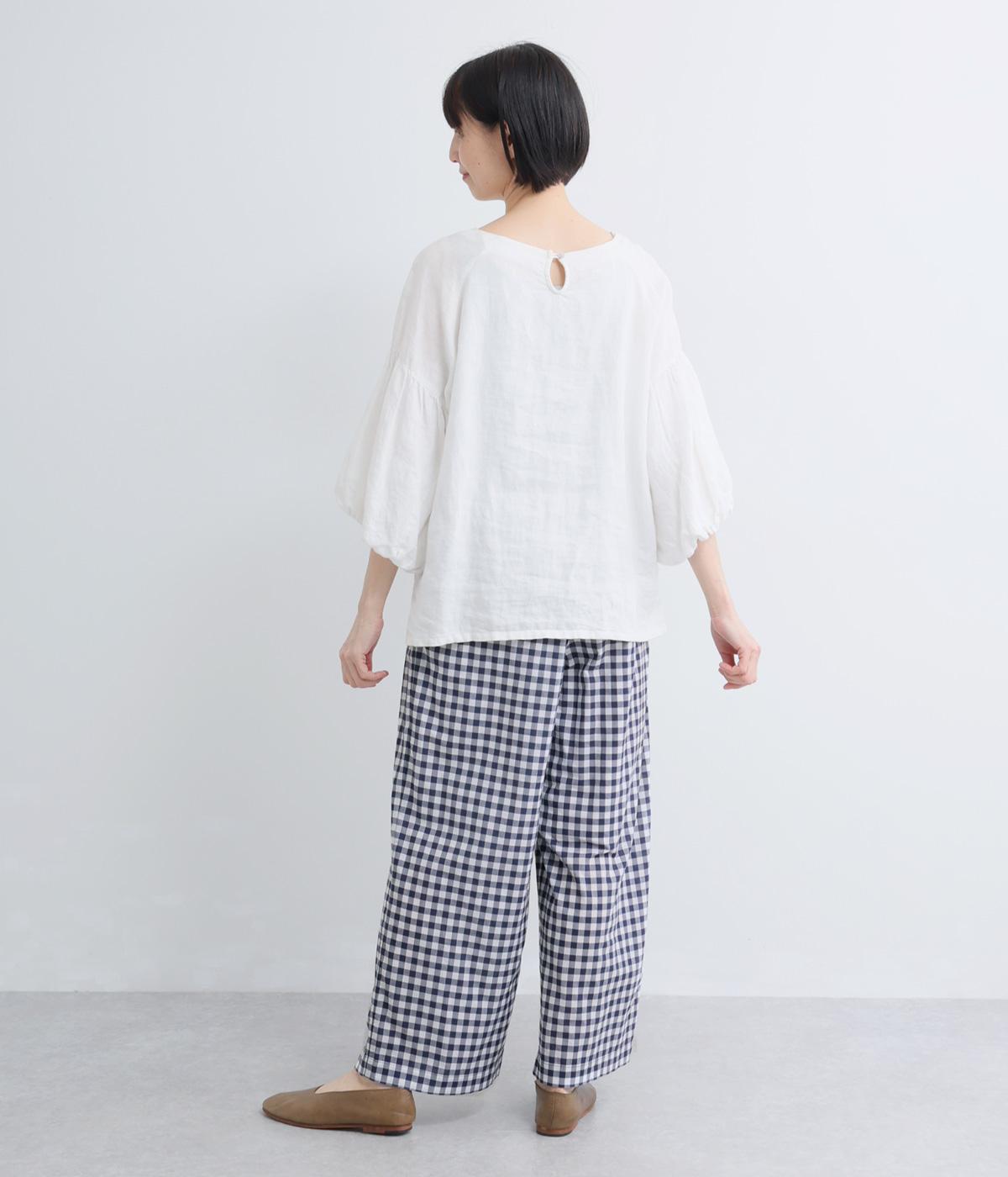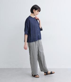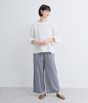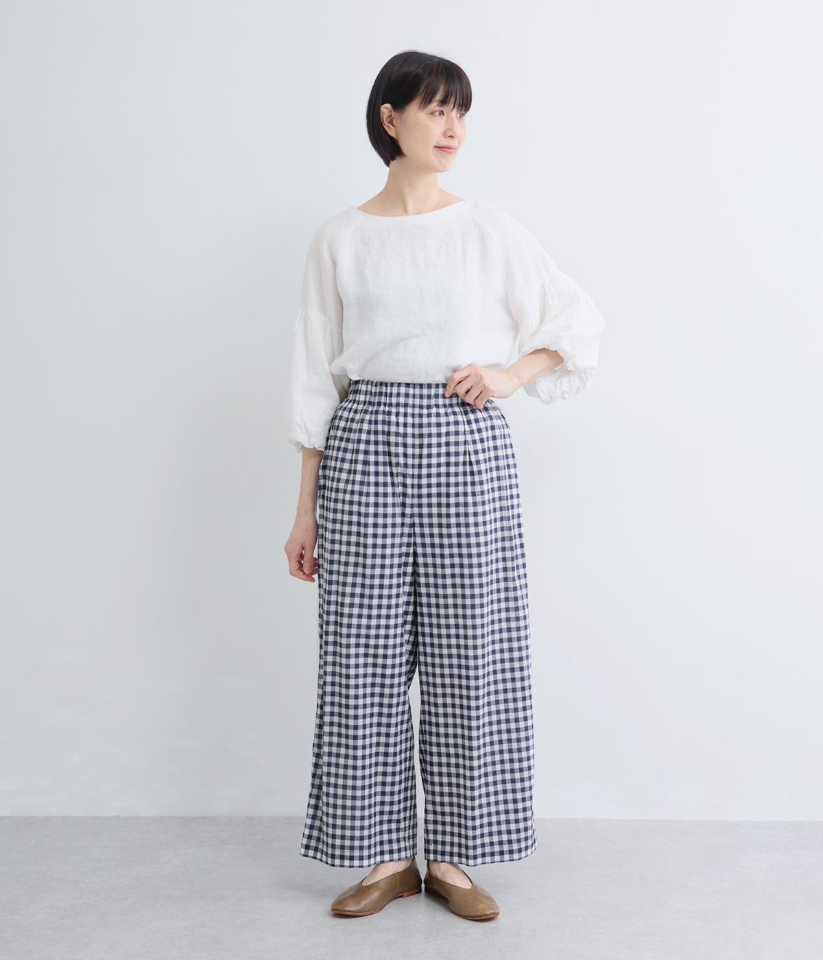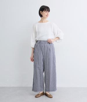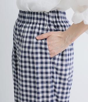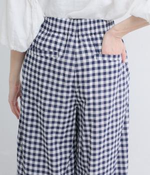 リネン先染ブロックチェック裏付ボリュームパンツ