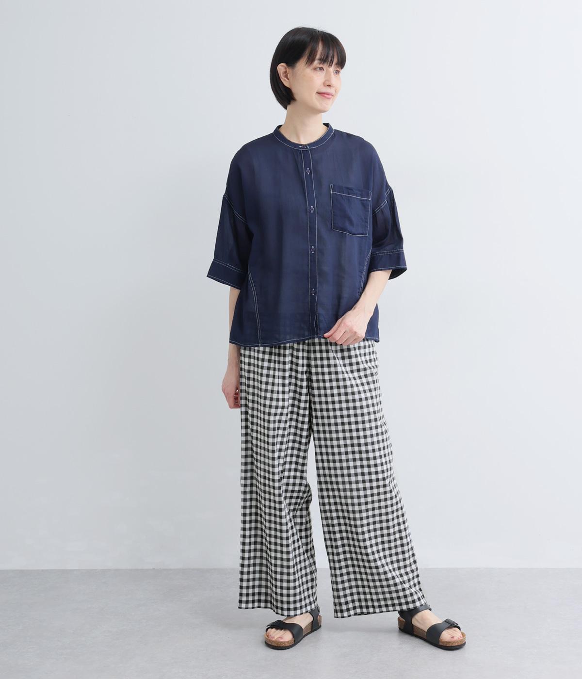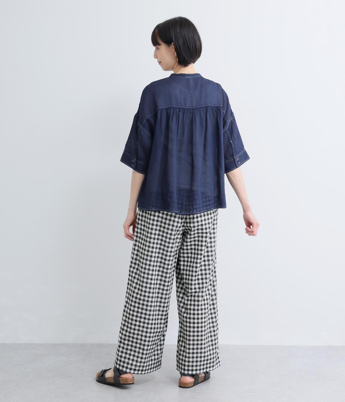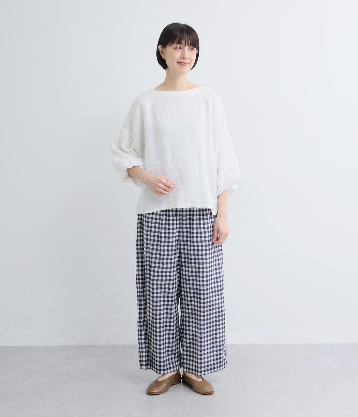 リネン先染ブロックチェック裏付ボリュームパンツ