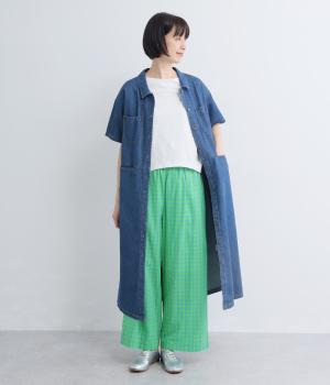 コットンギンガムデニムワイドパンツ