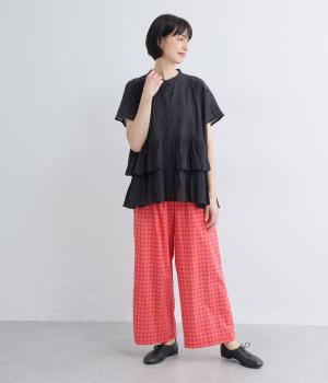 コットンオックスチェックワイドパンツ