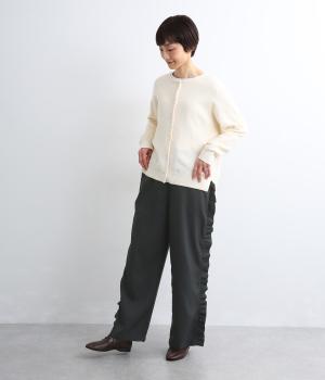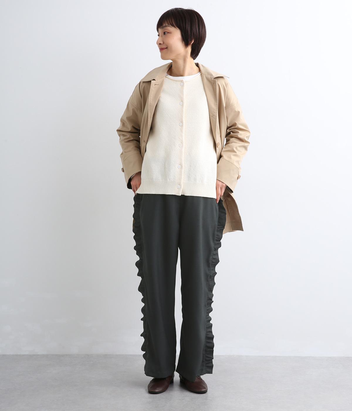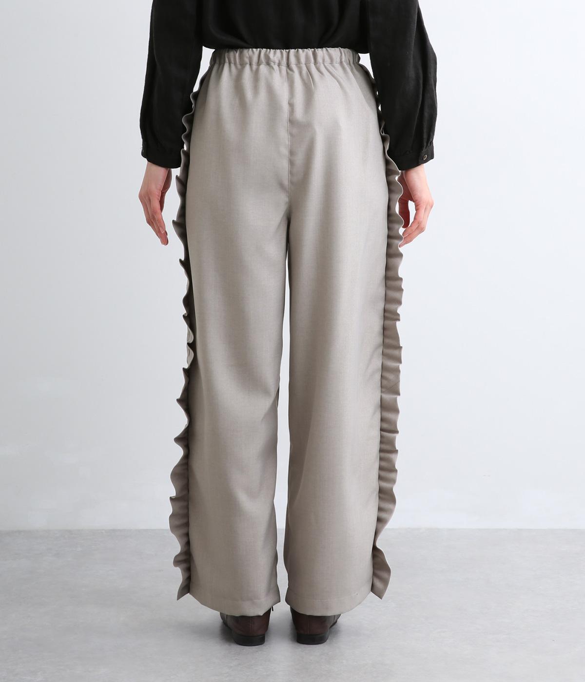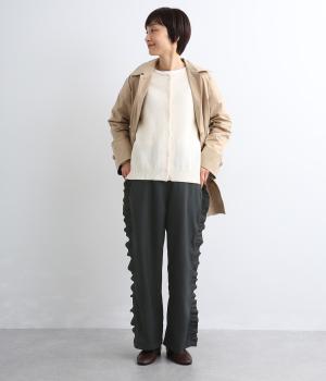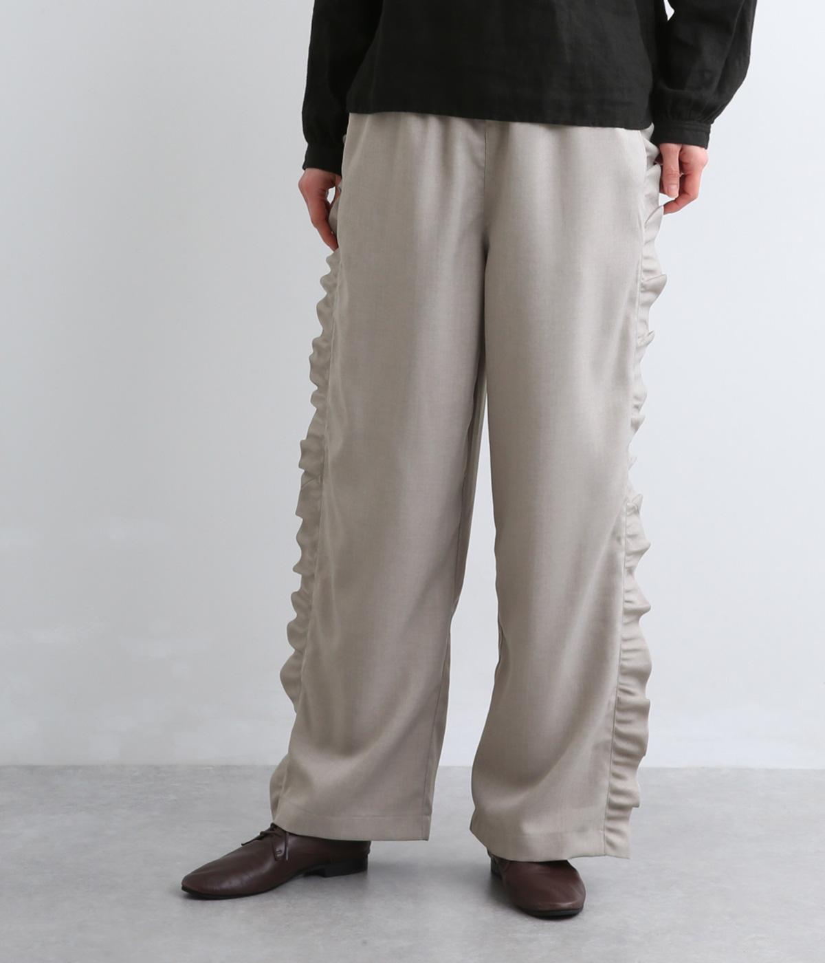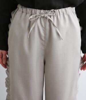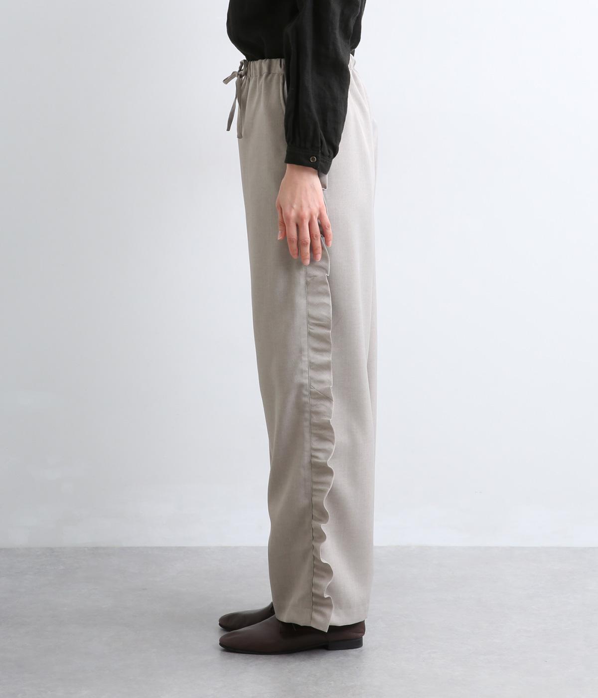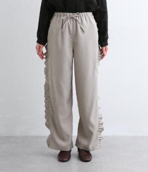 サイドのフリルディテールがきれいめな大人スタイルにほどよく甘さをプラス。すとんと落ちるストレートシルエットで甘すぎることなく可愛らしさを添えます。ウエストは総ゴムに調整紐入りのイージーなのにお洒落欲も満たす一本。