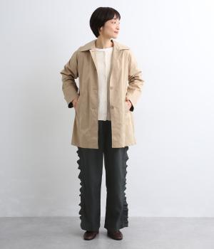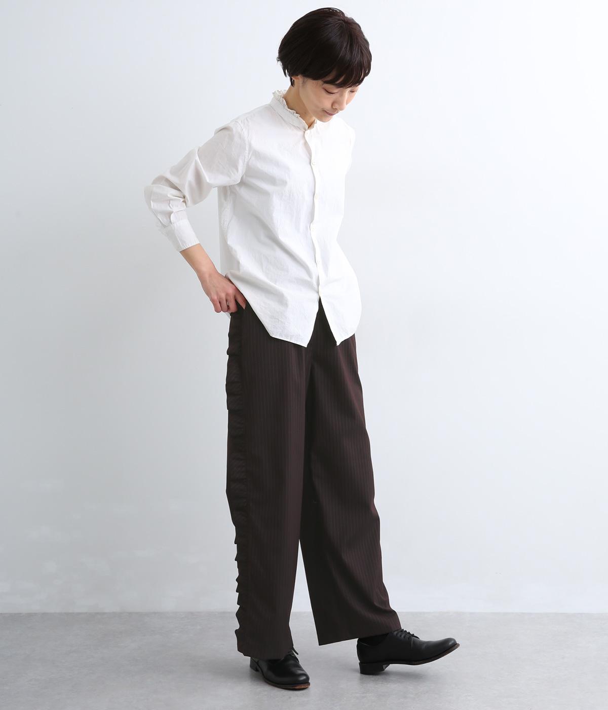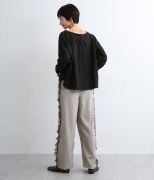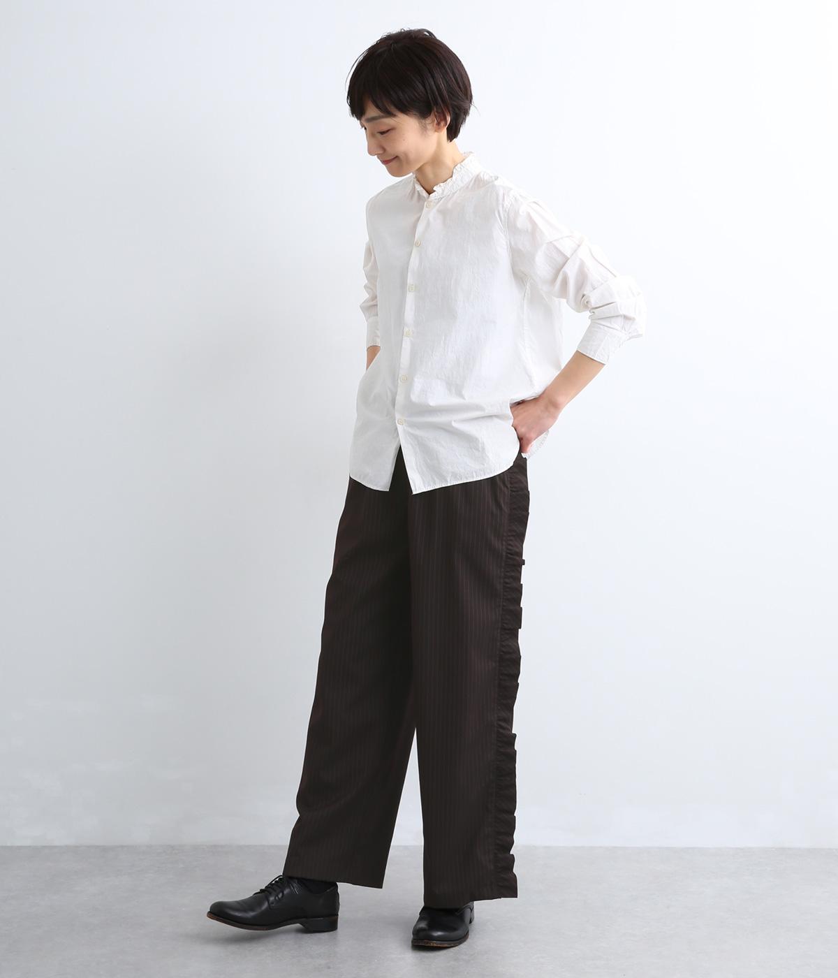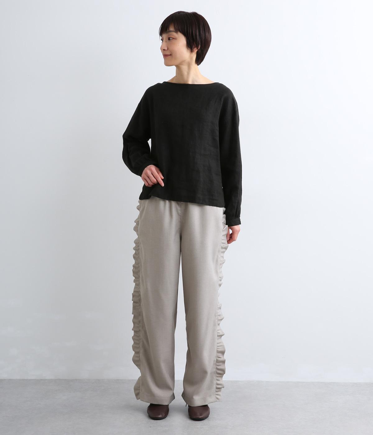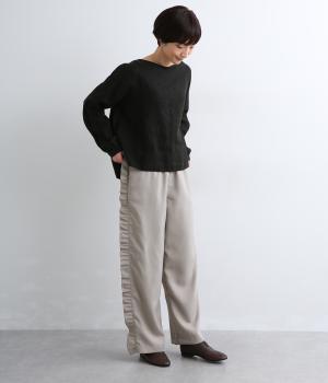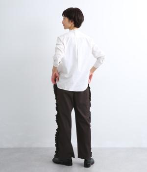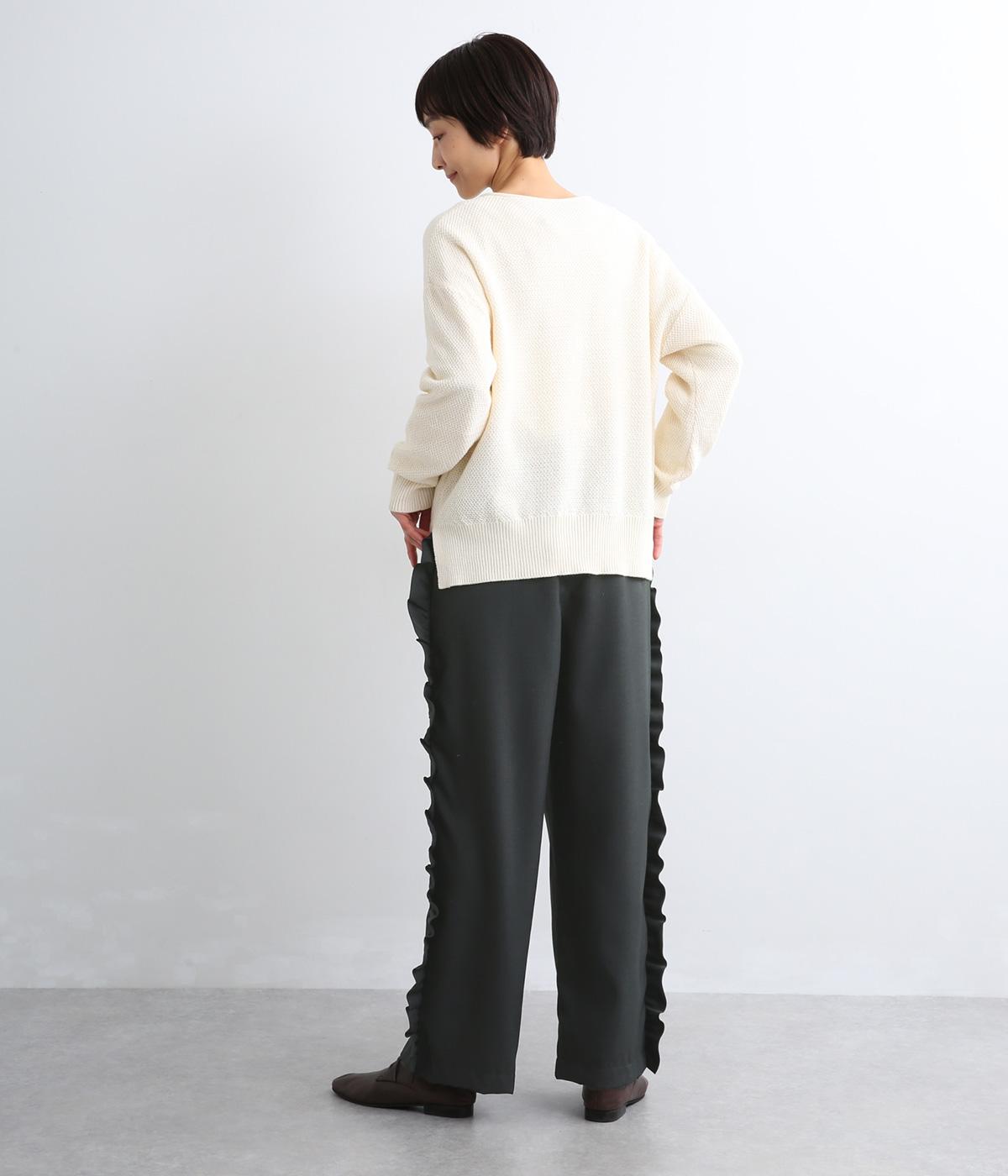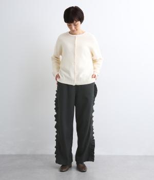 サイドのフリルディテールがきれいめな大人スタイルにほどよく甘さをプラス。すとんと落ちるストレートシルエットで甘すぎることなく可愛らしさを添えます。ウエストは総ゴムに調整紐入りのイージーなのにお洒落欲も満たす一本。