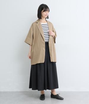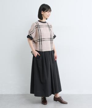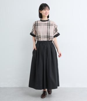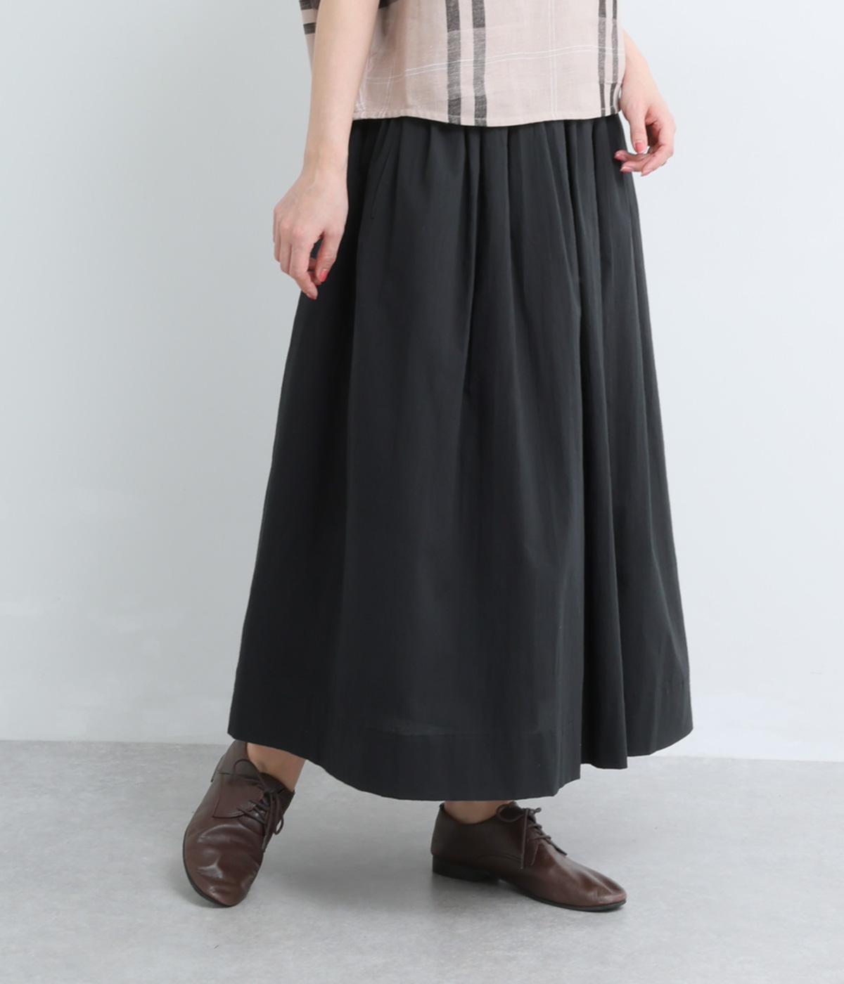 素材感を活かしてシンプルに仕立てたギャザースカート。贅沢にたっぷり生地を使い、軽やかながらも着映えするボリューム感を表現。おなかにやさしくフィットする総ゴム&内紐入りで、トップスインのきれいめスタイルもおすすめです。