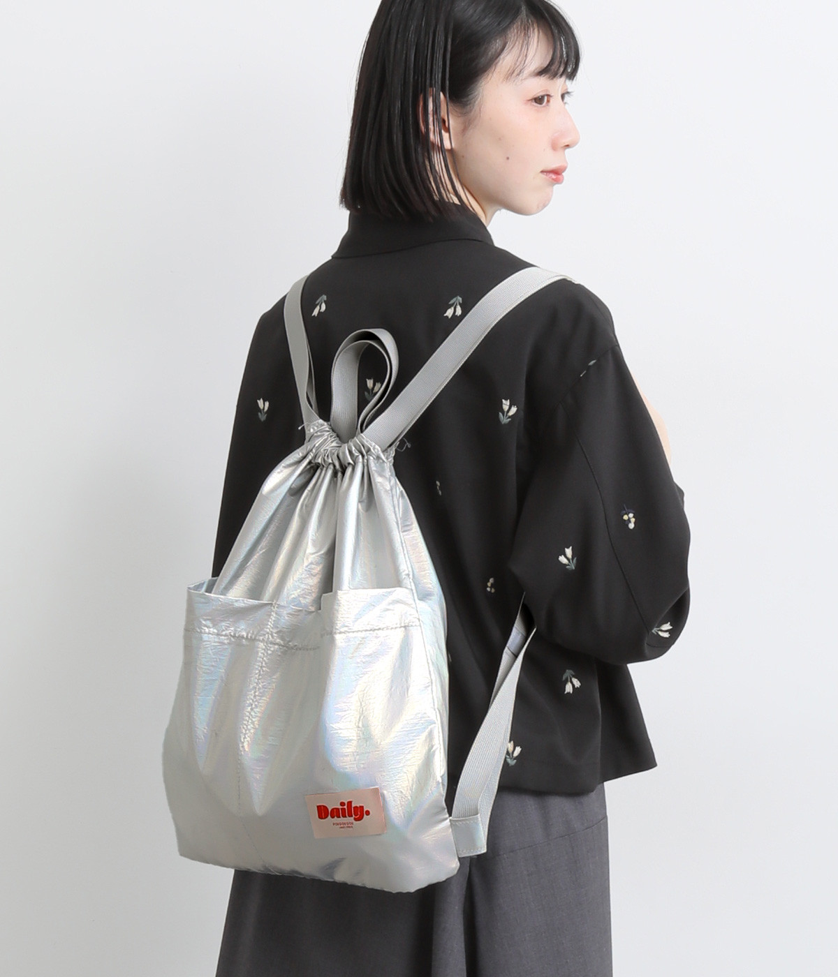 A4もすっぽり入るサイズ感で、デイリーに活躍する使い勝手のいい仕立て。アウトポケットなど使いやすさにもこだわっています。ラフに肩掛けするのもおすすめで、手持ちもできるショートハンドルつきです。