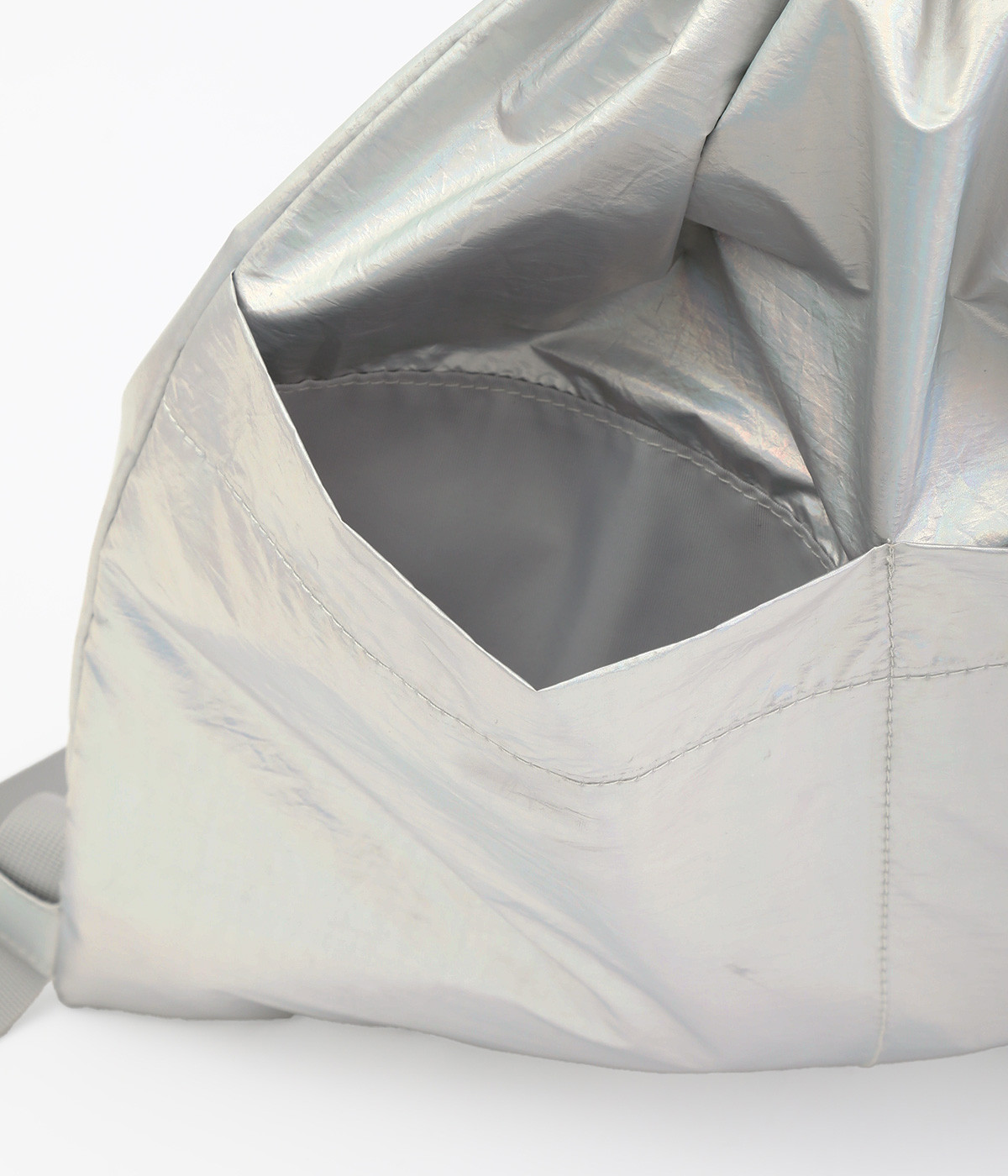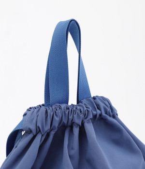 独特の光沢とシャリ感のある肌触りがタフな印象を与えるナイロン混紡素材。同色系にまとめたポリエステルの裏地つきで強度も高めています。ハンドルはやや太さのあるテープで負担を軽減。