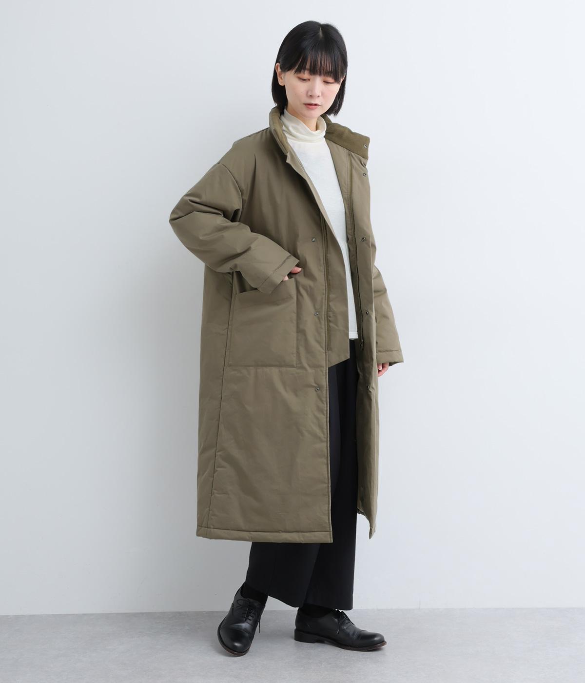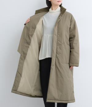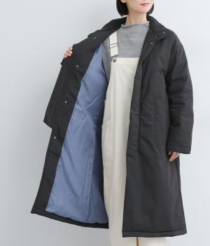 首元からひざまですっぽりと包み込む中綿入りのハイネックコート。ネック裏にはフリース生地をつけてあたたかさをアップさせました。前はファスナーとボタン仕様、袖口にはリブをつけて風の侵入を防止。洗練された大人らしいムードが漂う、無駄のないシンプルなデザインも◎です。