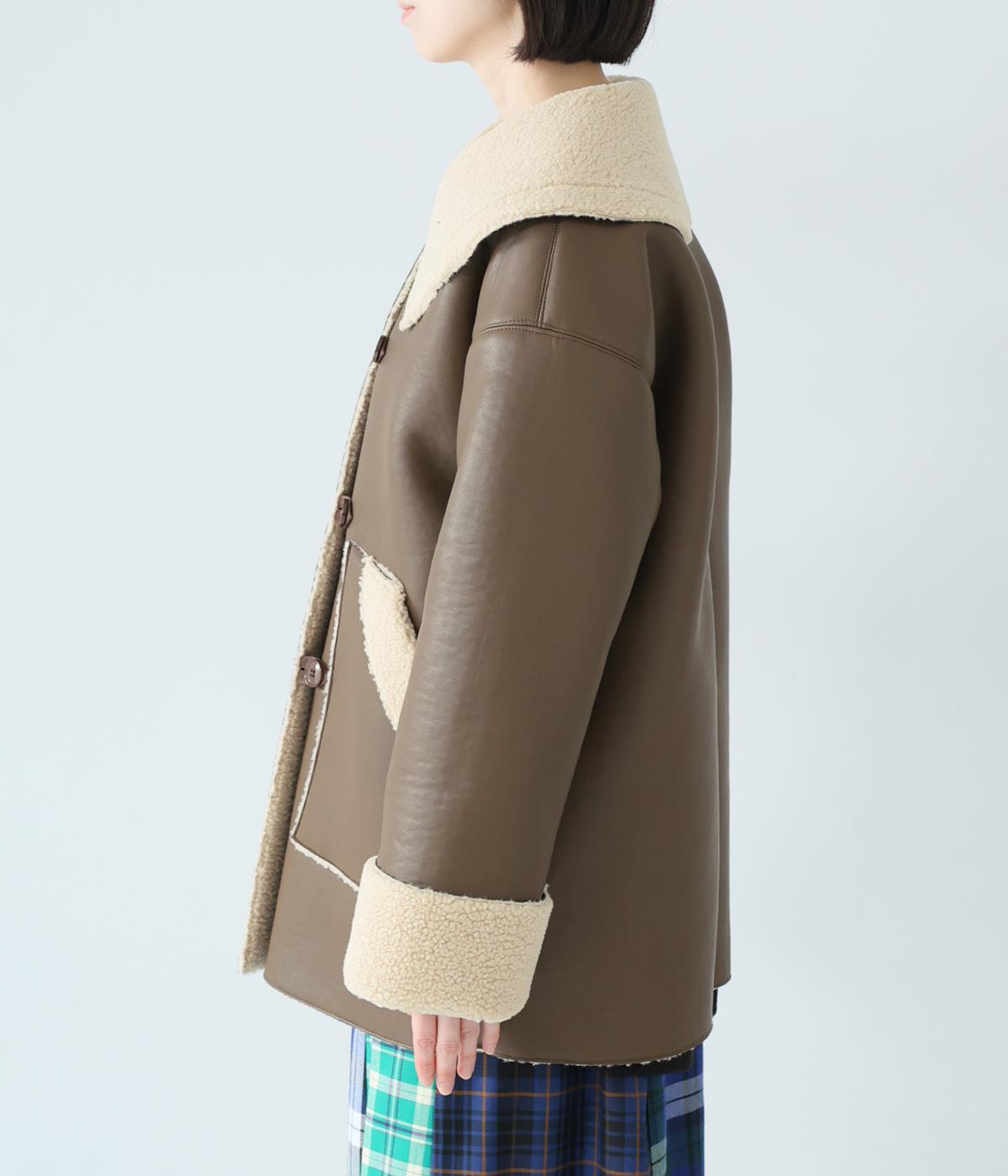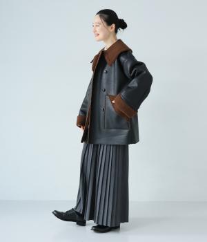 表側は上質な合成皮革、裏側はふわふわのボア素材を使用。見た目も着心地もあたたかな一枚です。しっかりとした厚みがありながらもやわらかな風合いで、快適に過ごすことができます。