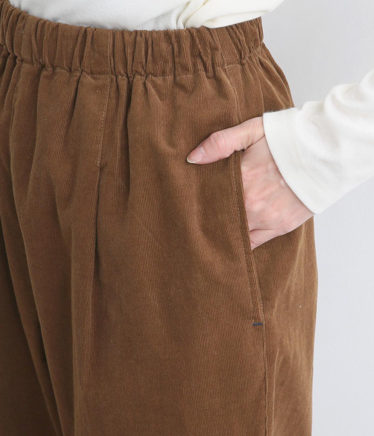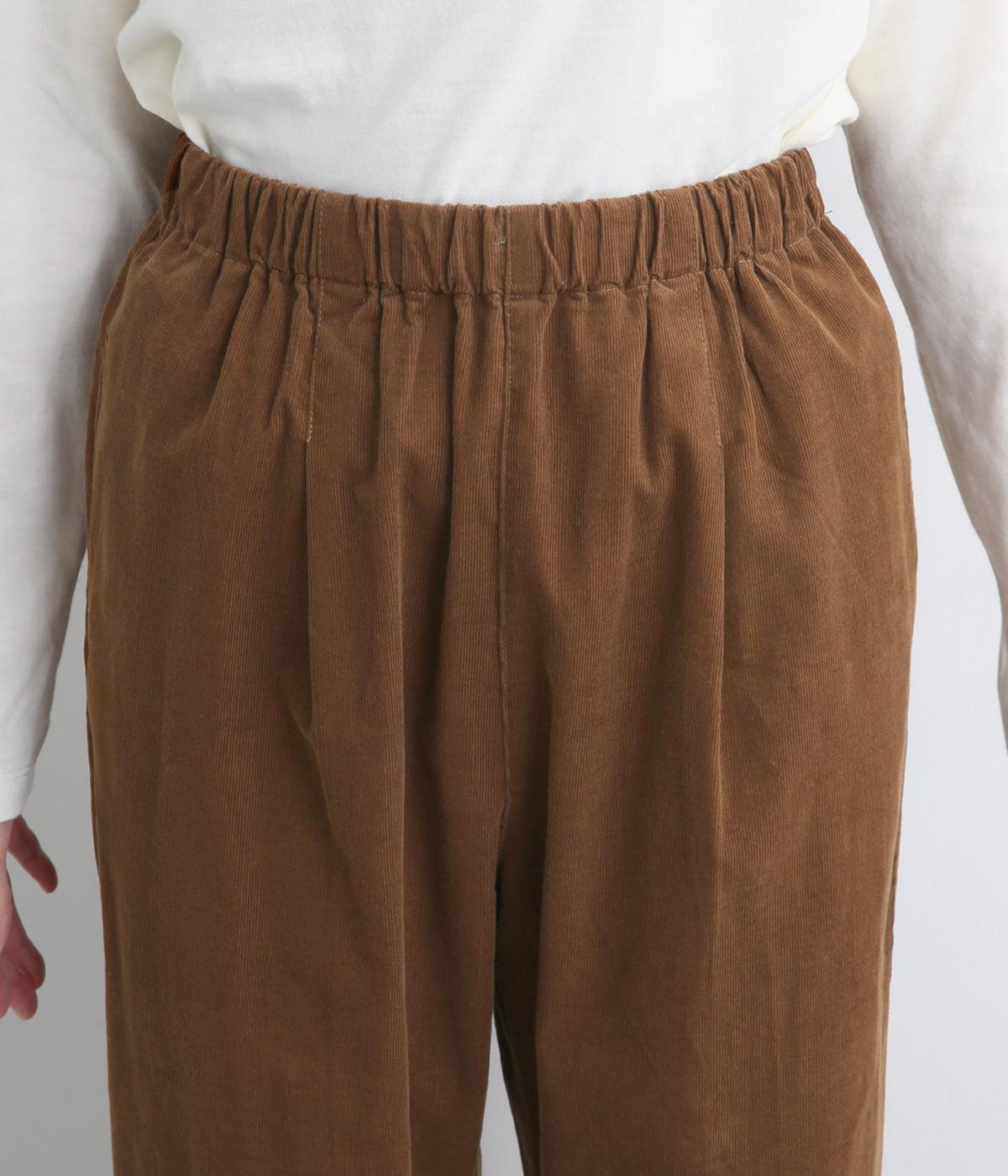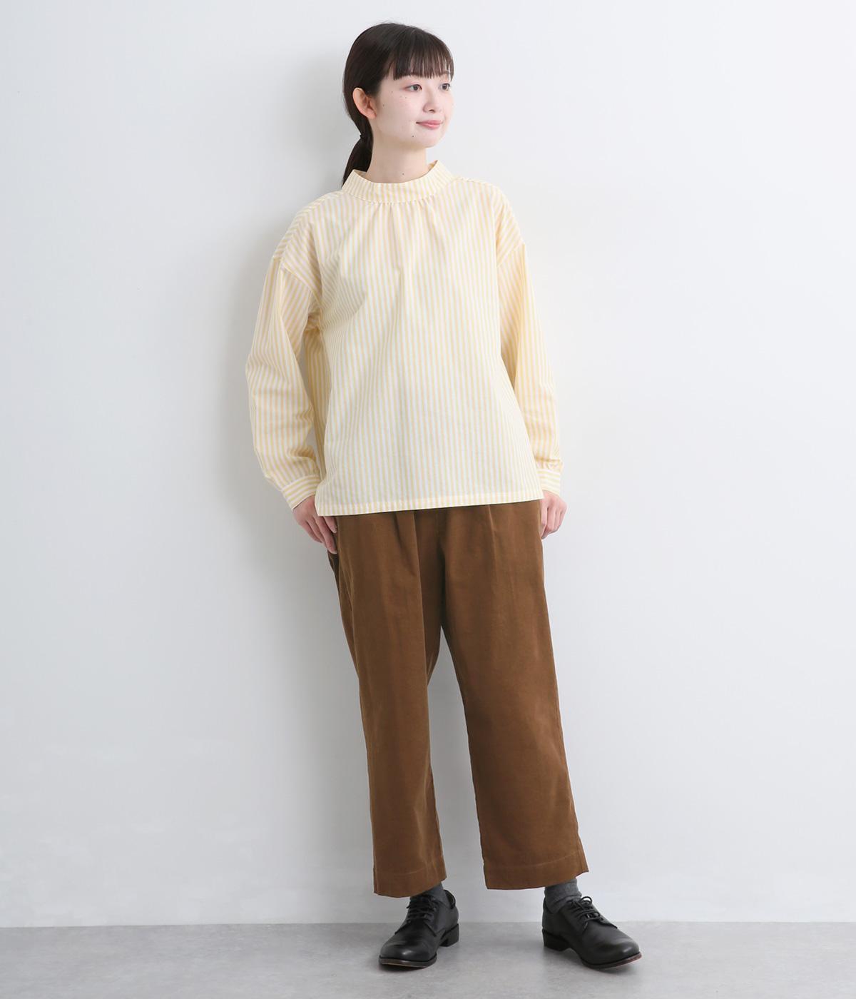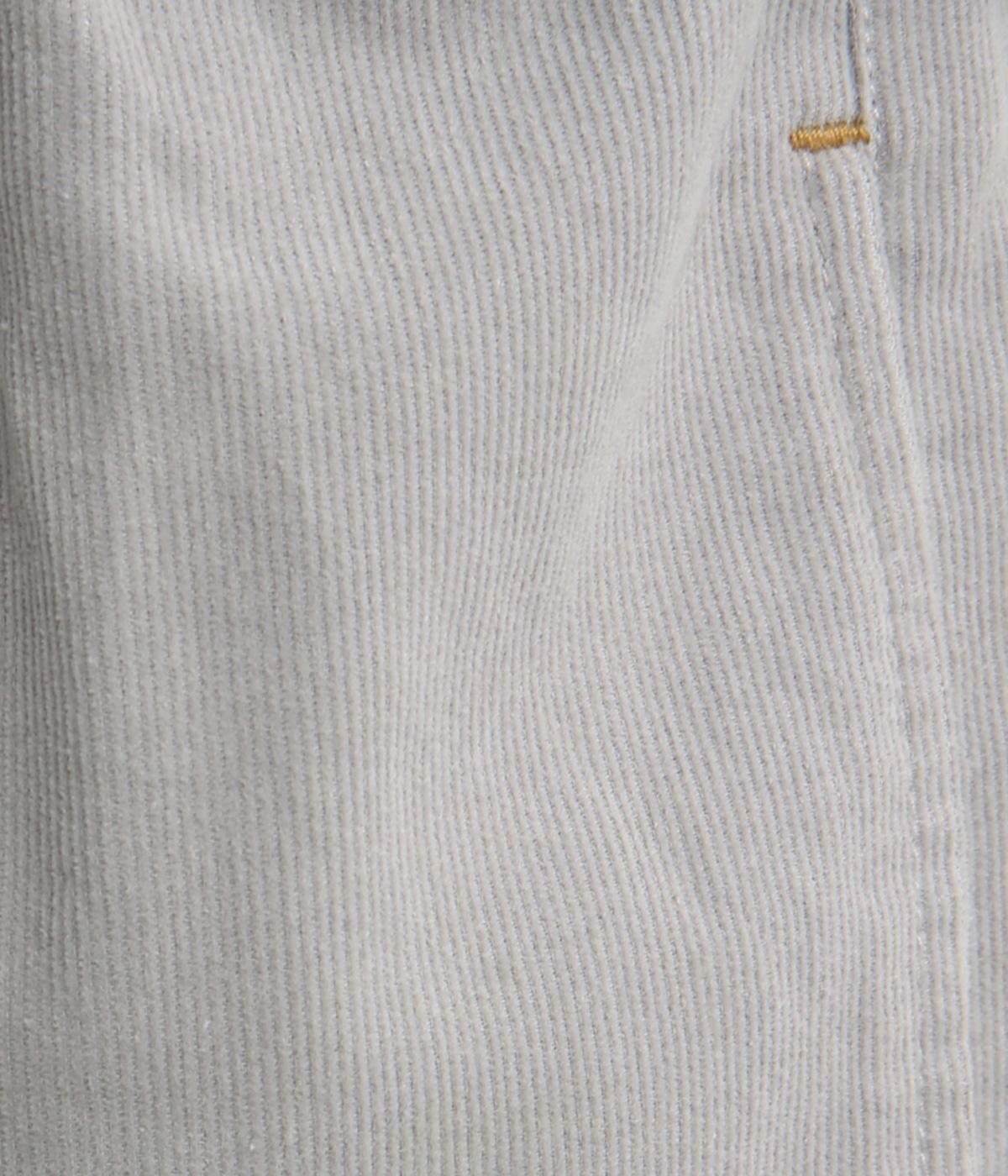 さらりと軽やかなコットンコーデュロイ生地を使用しています。ほのかな起毛の細い畝が動きに合わせてほんのりと光沢を放ちます。ロングシーズン着用できる素材感です。