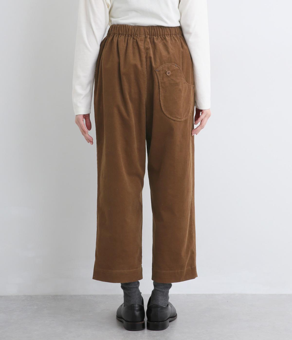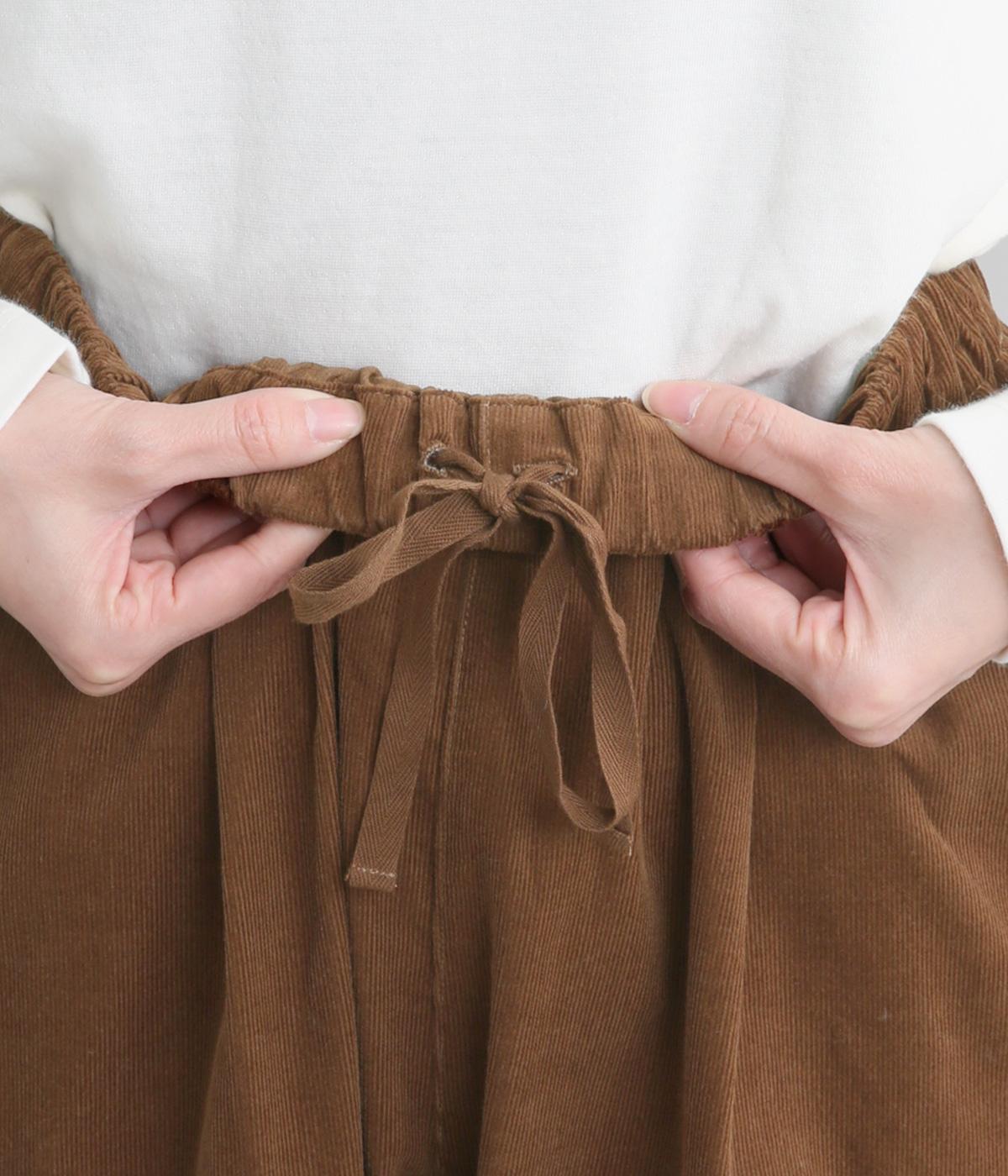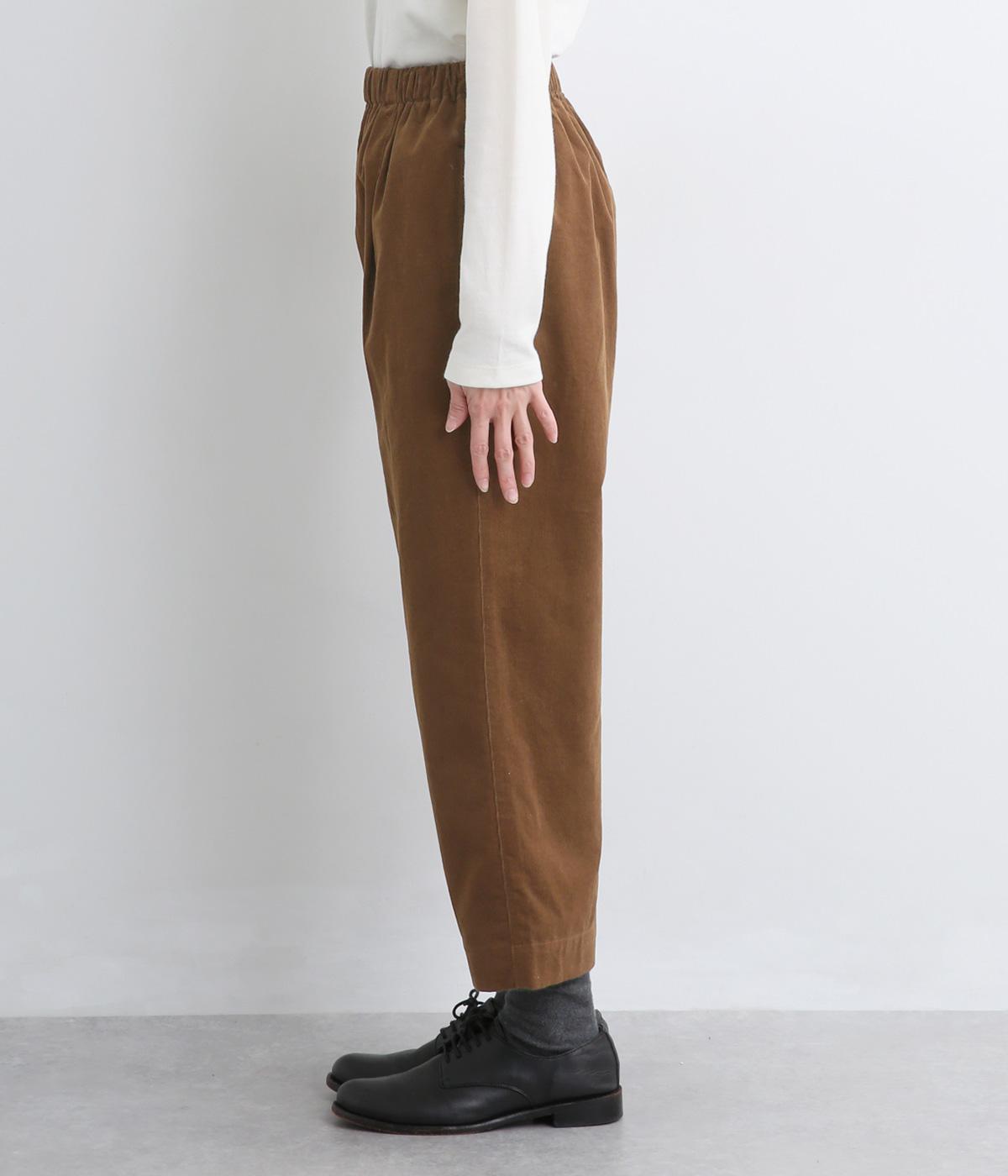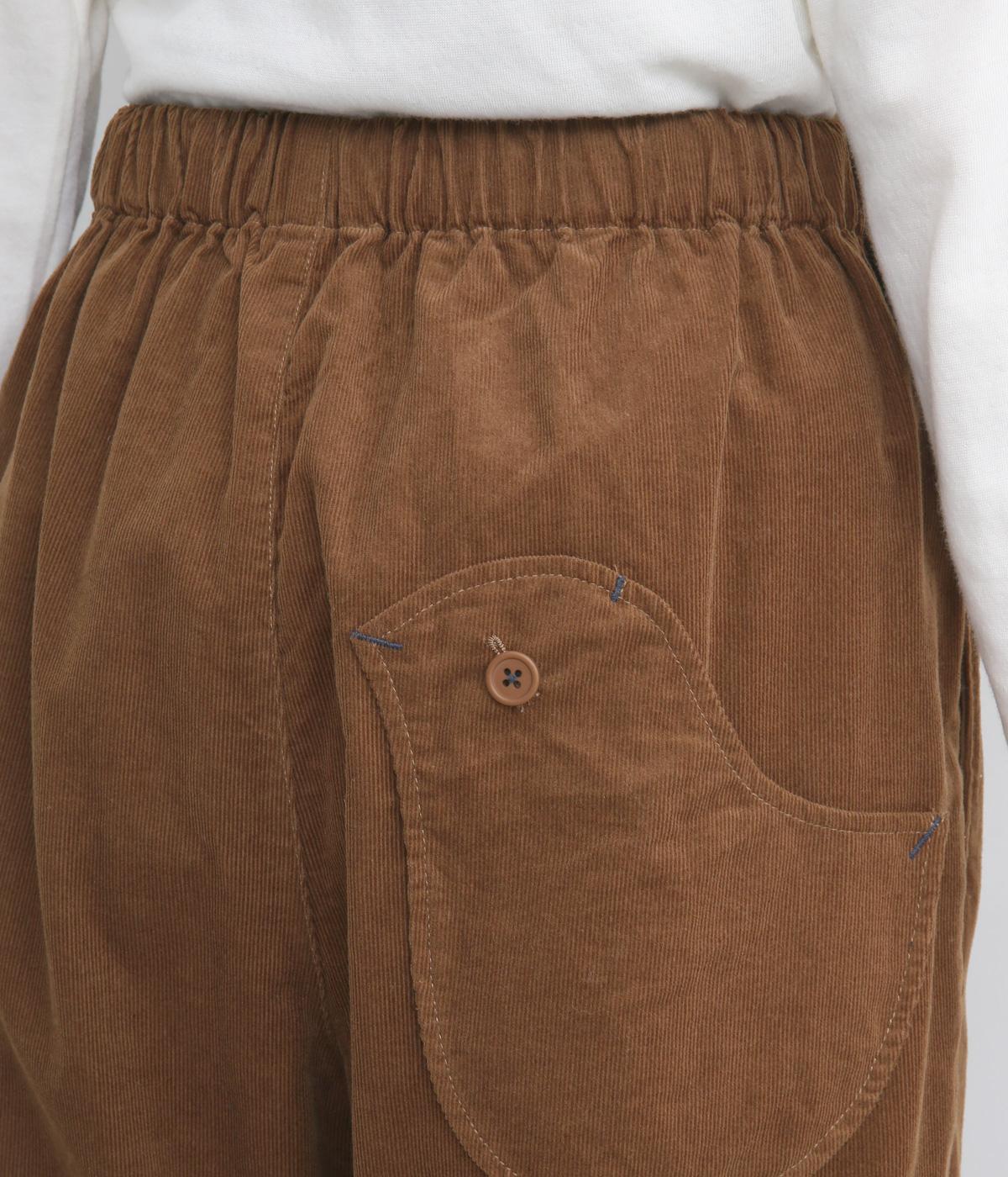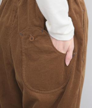 さらりと軽やかなコットンコーデュロイ生地を使用しています。ほのかな起毛の細い畝が動きに合わせてほんのりと光沢を放ちます。ロングシーズン着用できる素材感です。