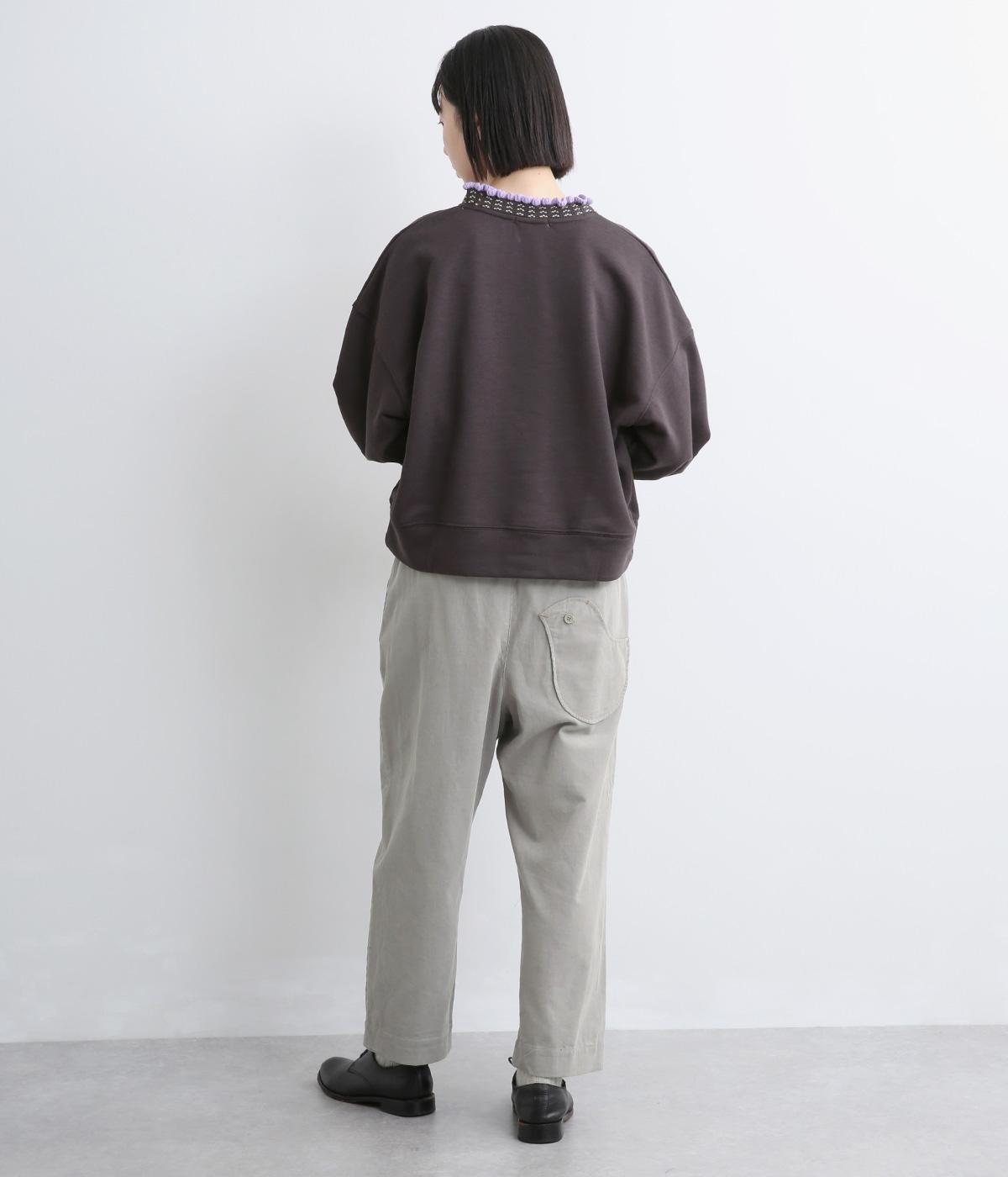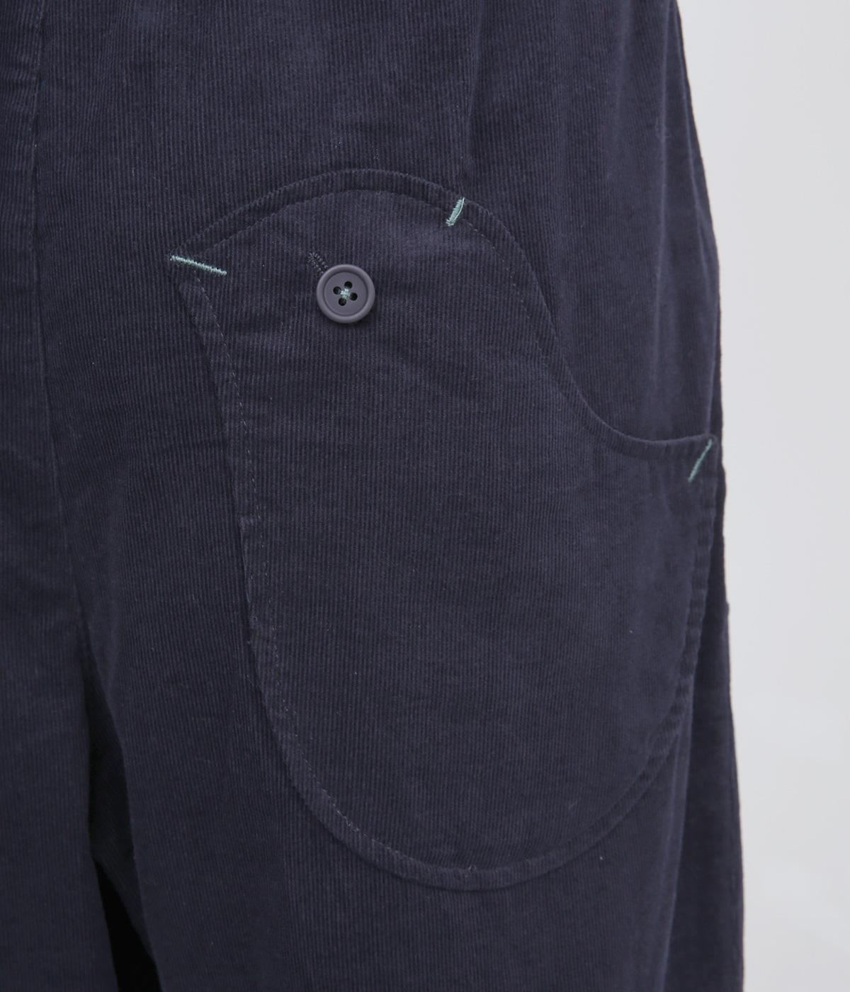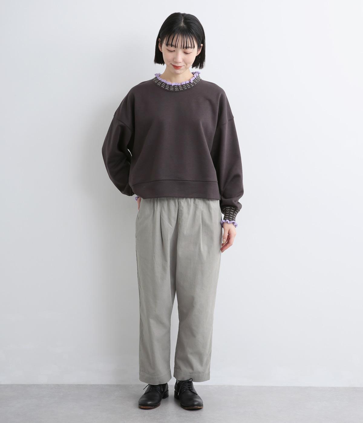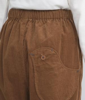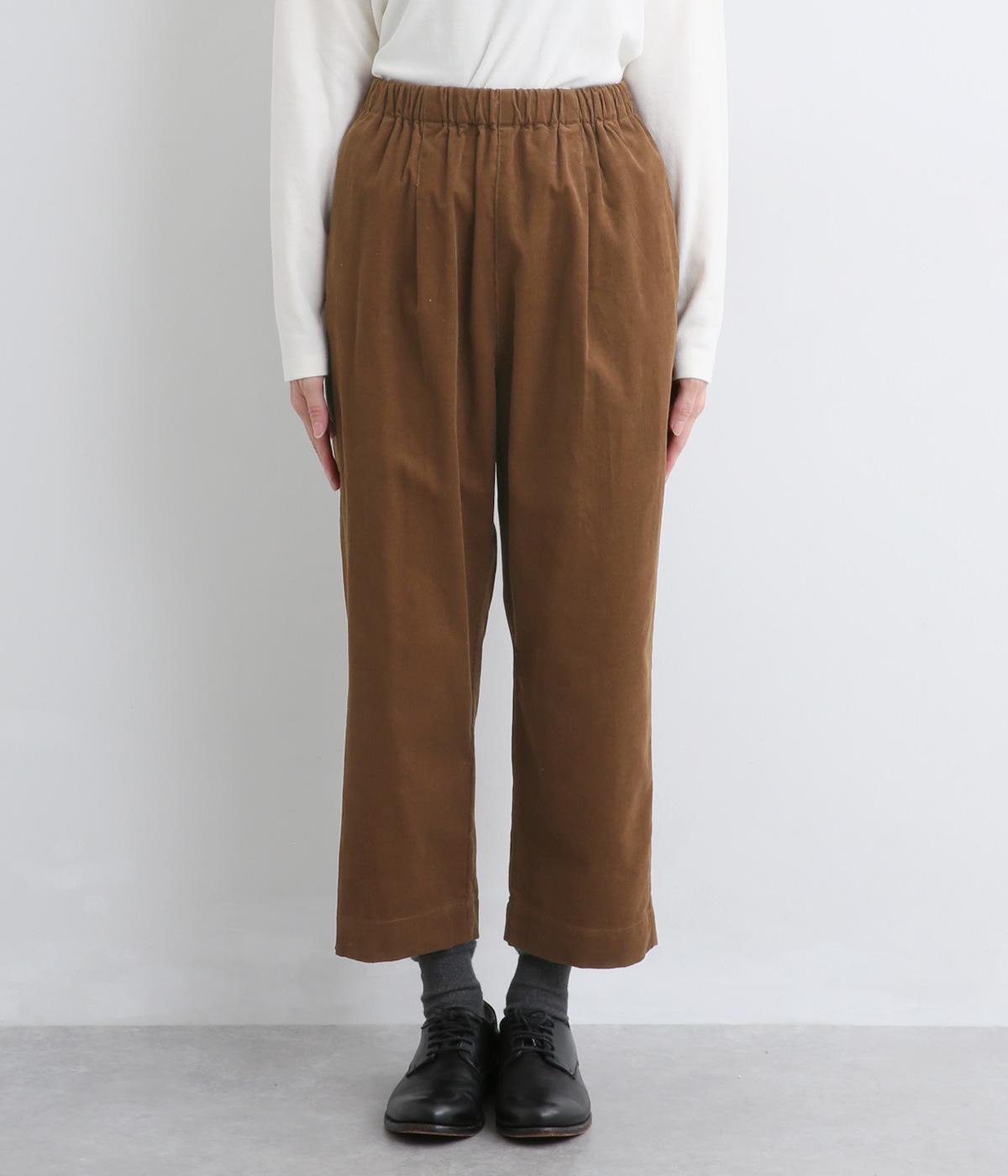 さらりと軽やかなコットンコーデュロイ生地を使用しています。ほのかな起毛の細い畝が動きに合わせてほんのりと光沢を放ちます。ロングシーズン着用できる素材感です。