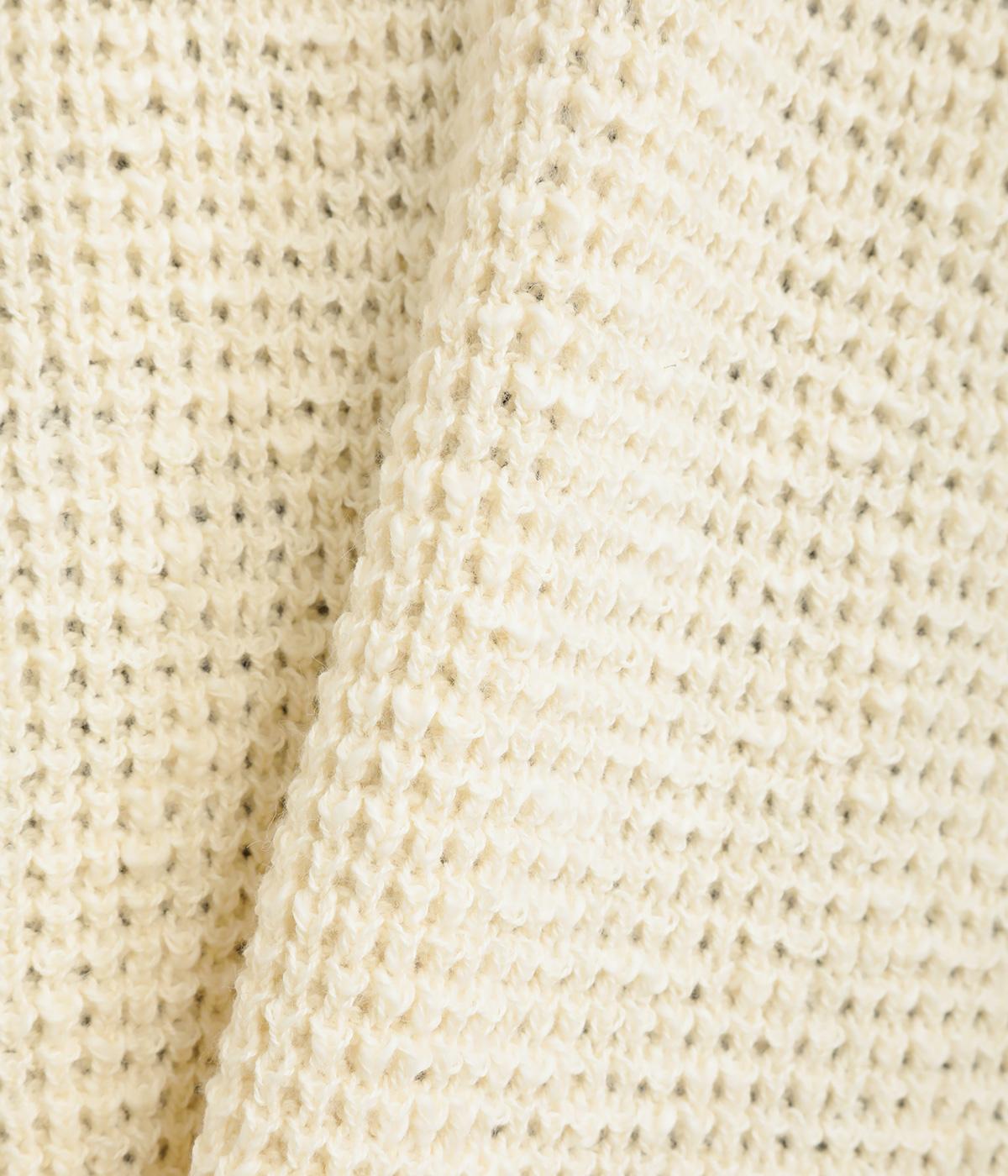個性的な印象のスラブヤーン素材。やわらかく不規則な形状は生地の存在感に深みを感じさせます。なめらかな質感で、心地よく着用できます。