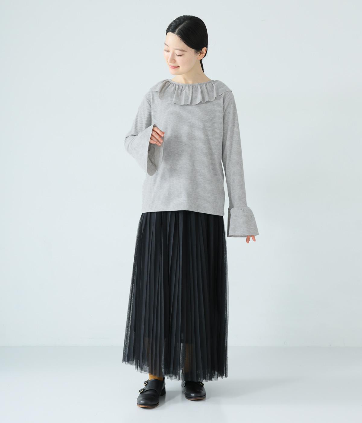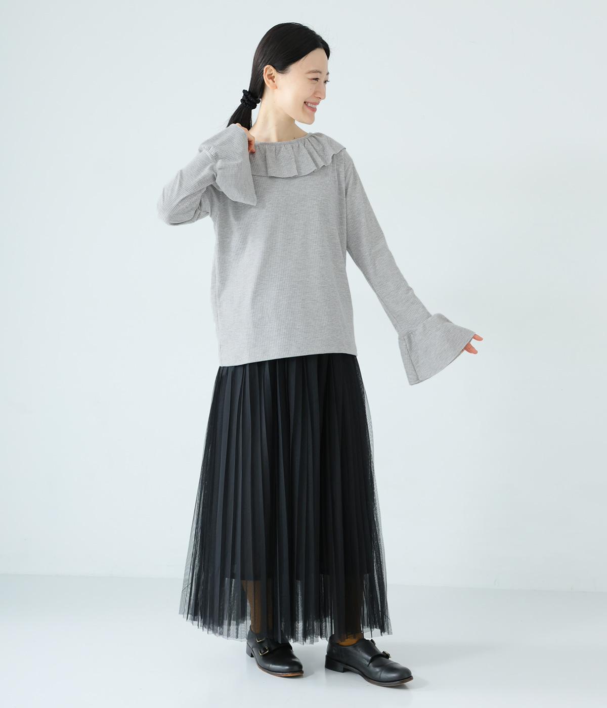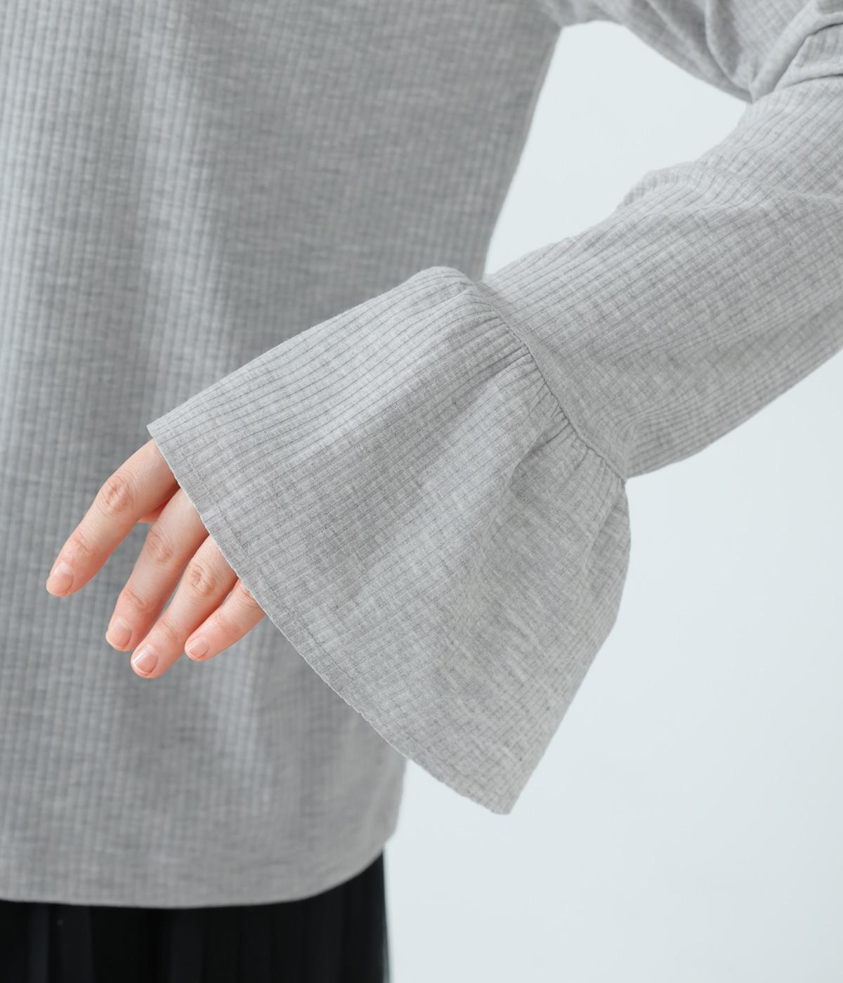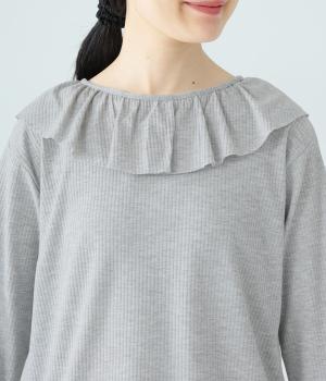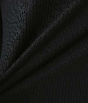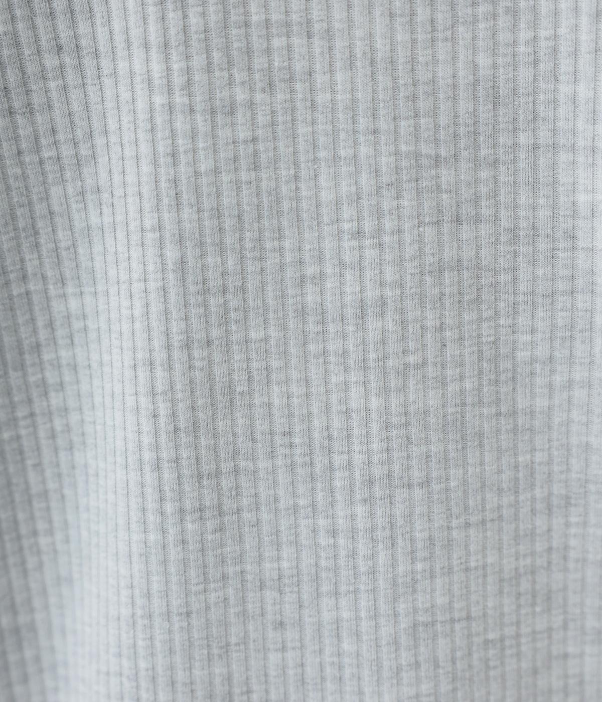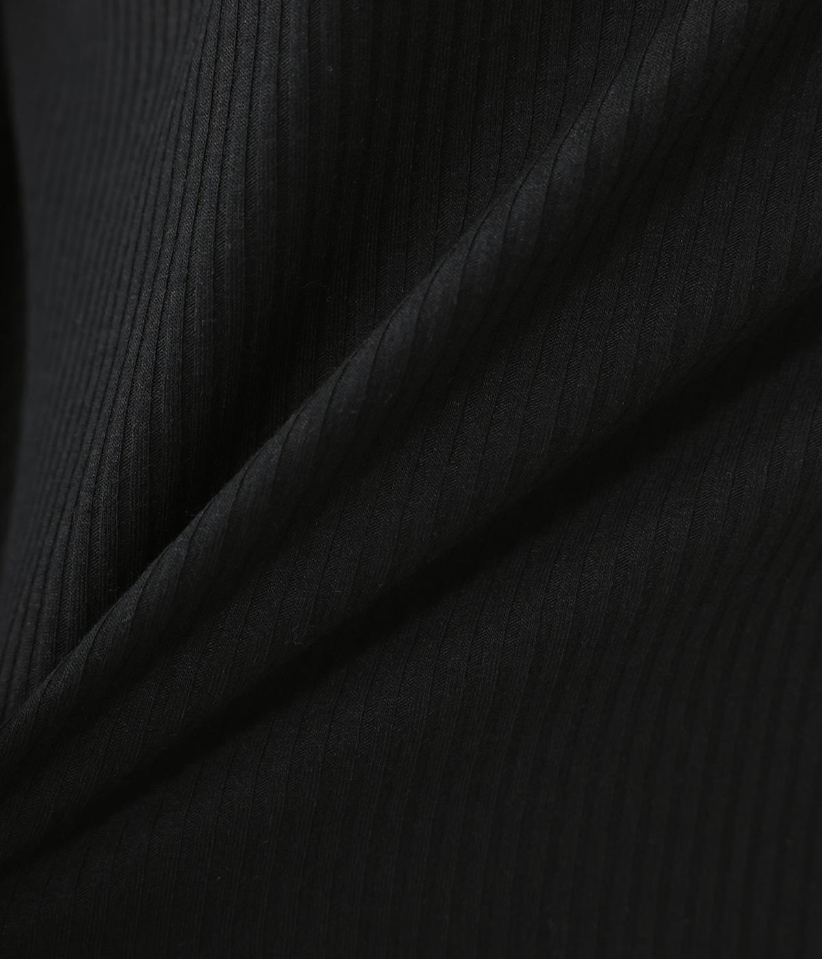 縦ラインの凹凸がしっかりと映えるリブ素材を使用。伸縮性の高いとてもやわらかな風合いと、さらりとした心地よい肌ざわりが魅力の薄手生地です。