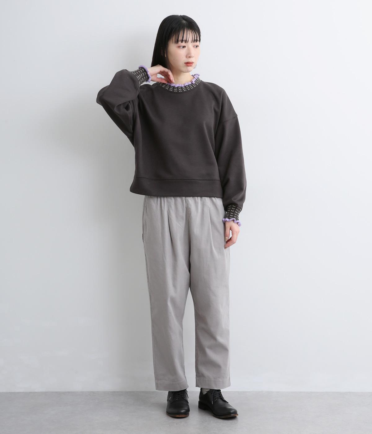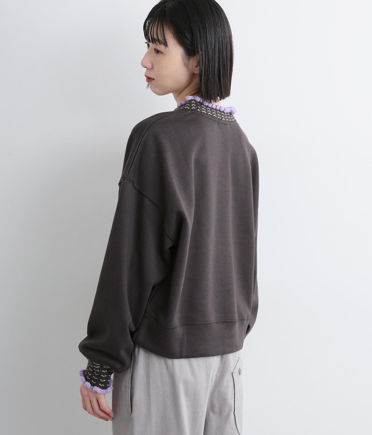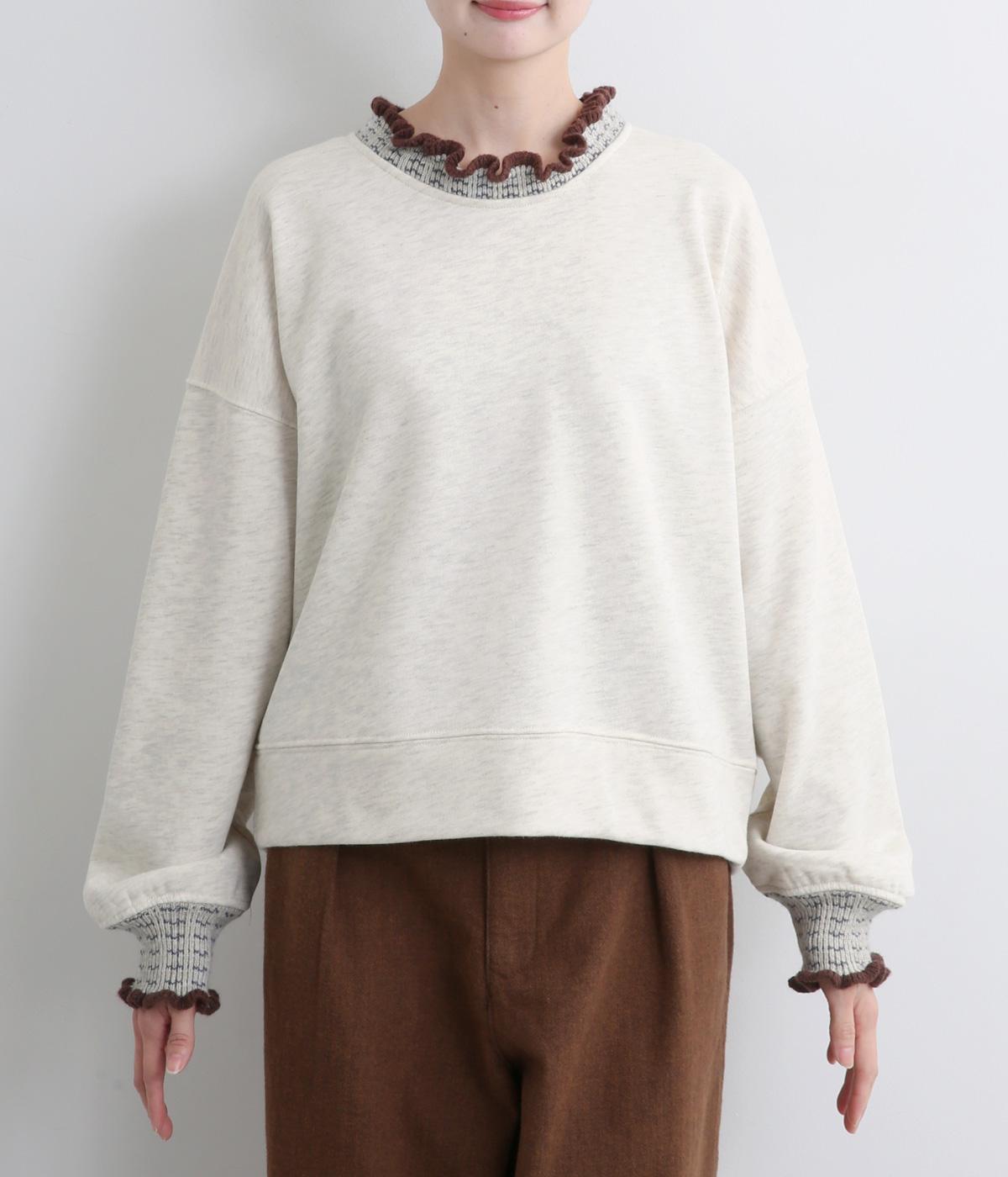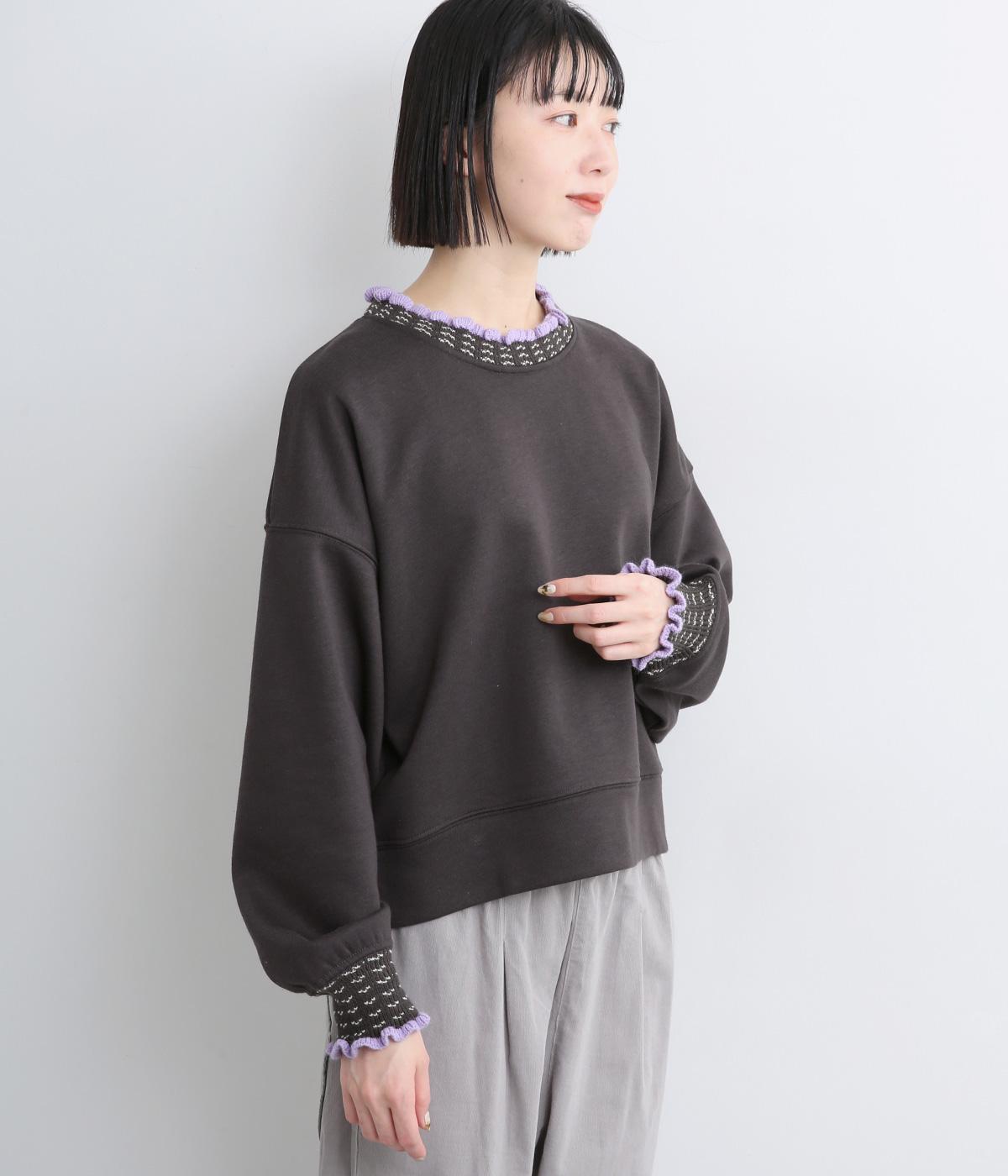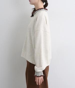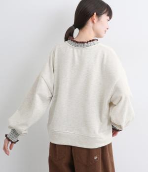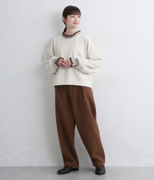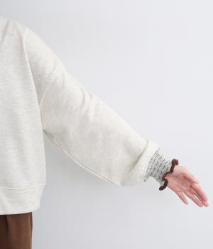 ニット部分のデザイン性が際立つシンプルな型のトレーナー。サッと着るだけでスタイリングが完成するアイテムです。ふんわりした袖のシルエットにすっきりした着丈でバランスよく仕立てました。ジャンパースカートやサロペットのインナーにもおすすめです。
