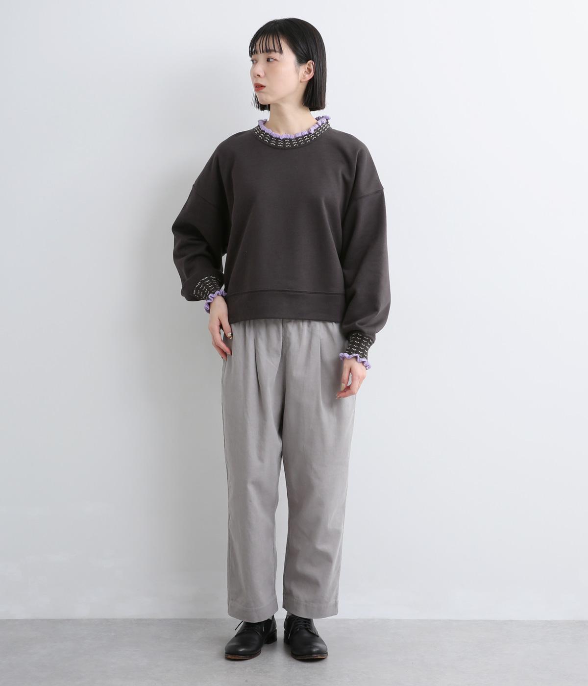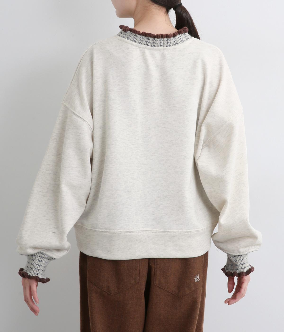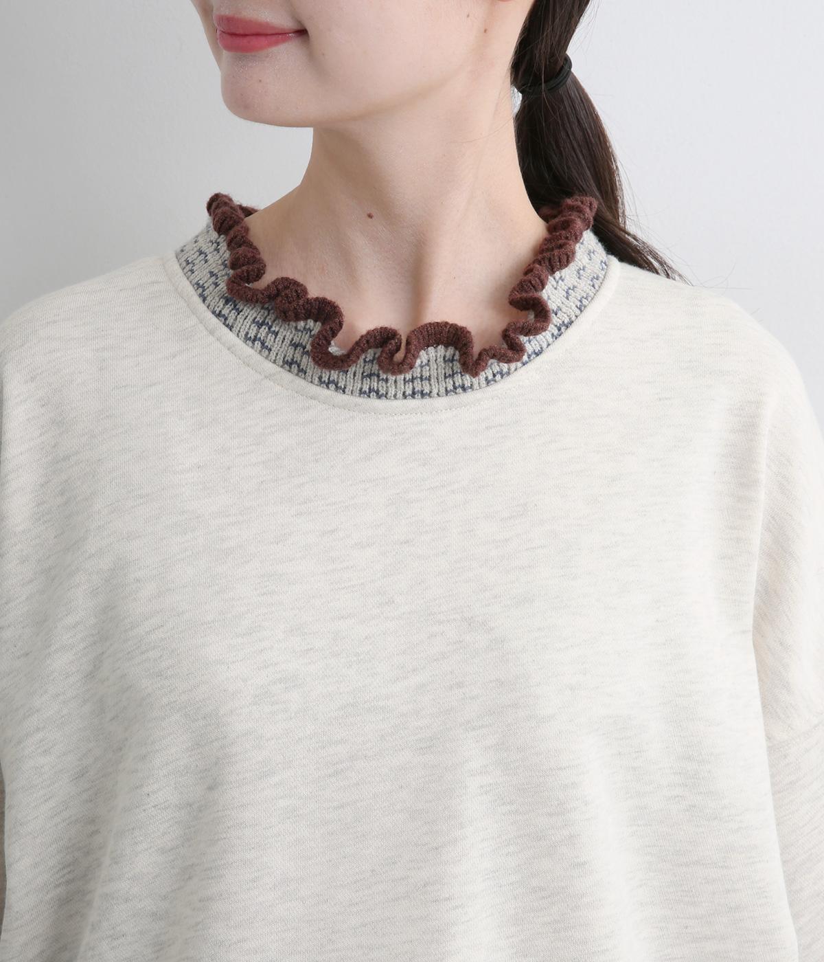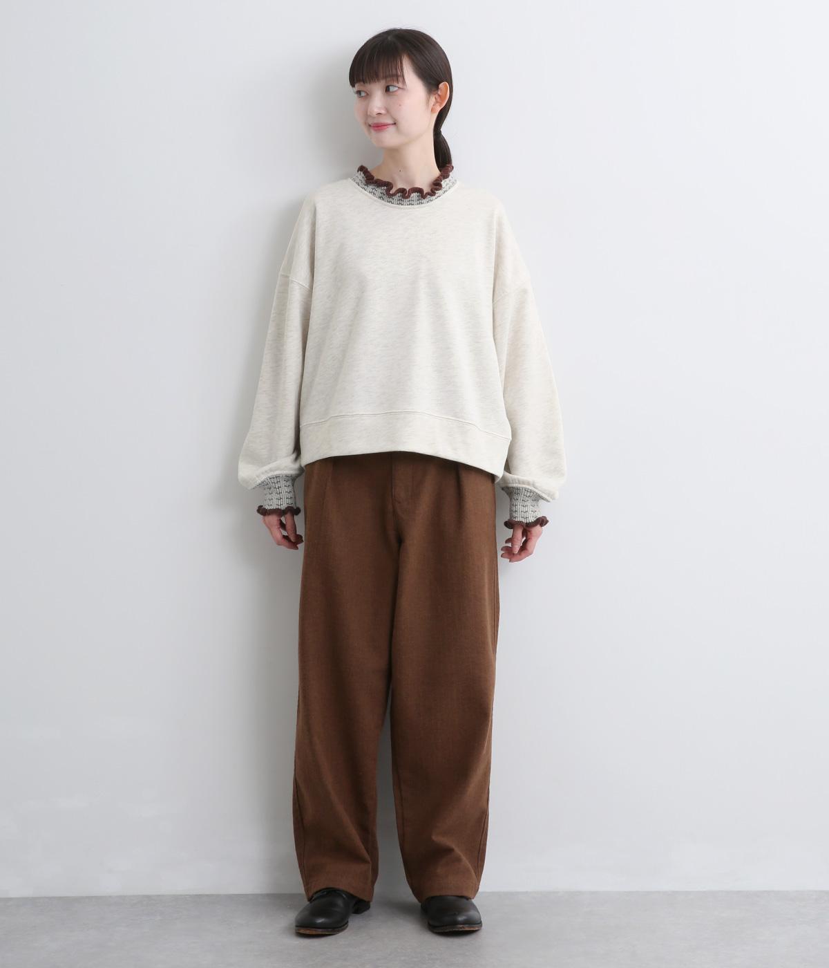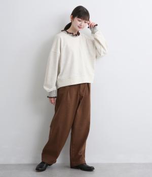 ニット部分のデザイン性が際立つシンプルな型のトレーナー。サッと着るだけでスタイリングが完成するアイテムです。ふんわりした袖のシルエットにすっきりした着丈でバランスよく仕立てました。ジャンパースカートやサロペットのインナーにもおすすめです。