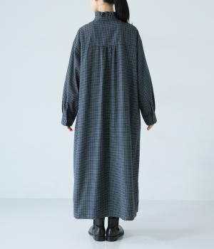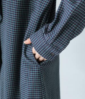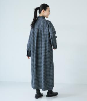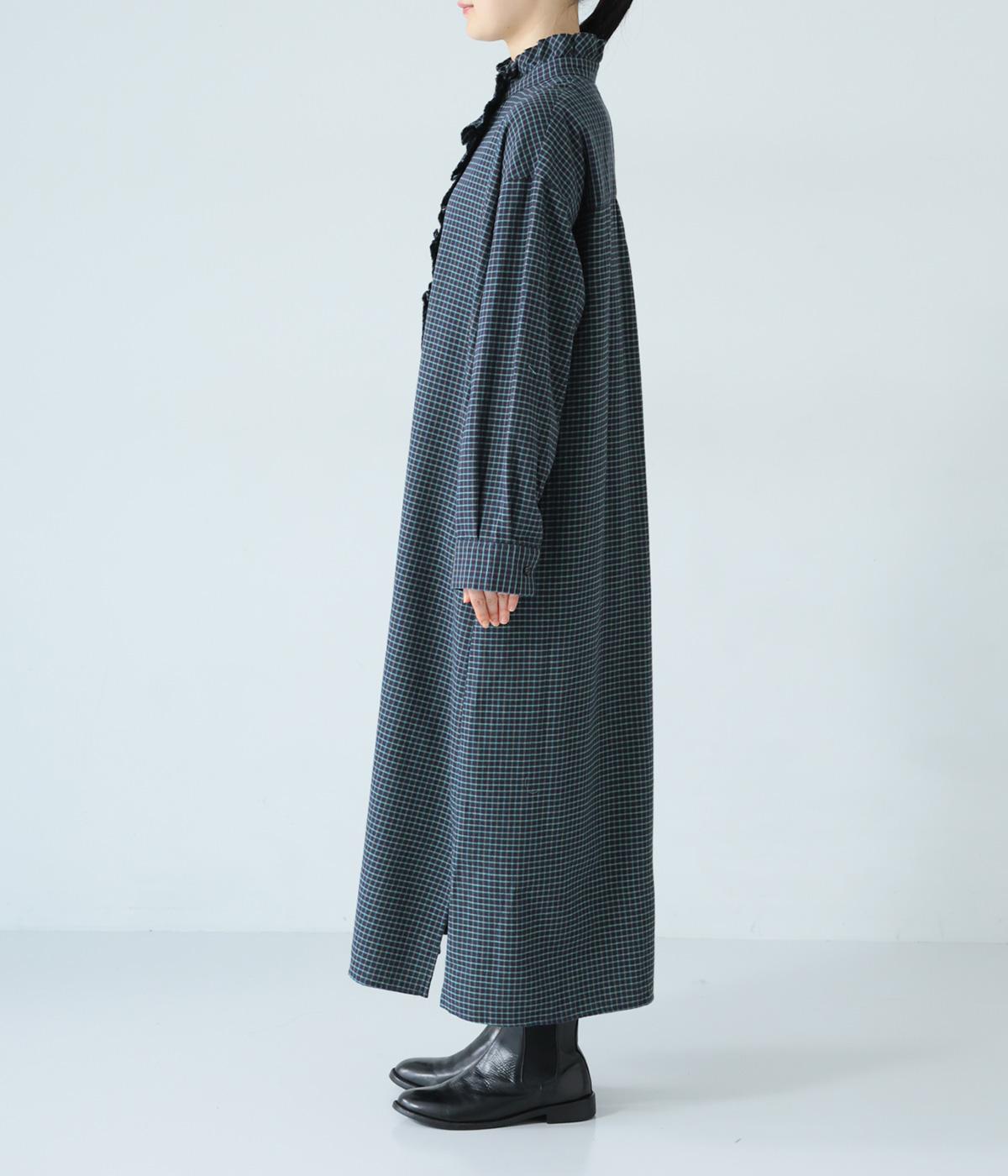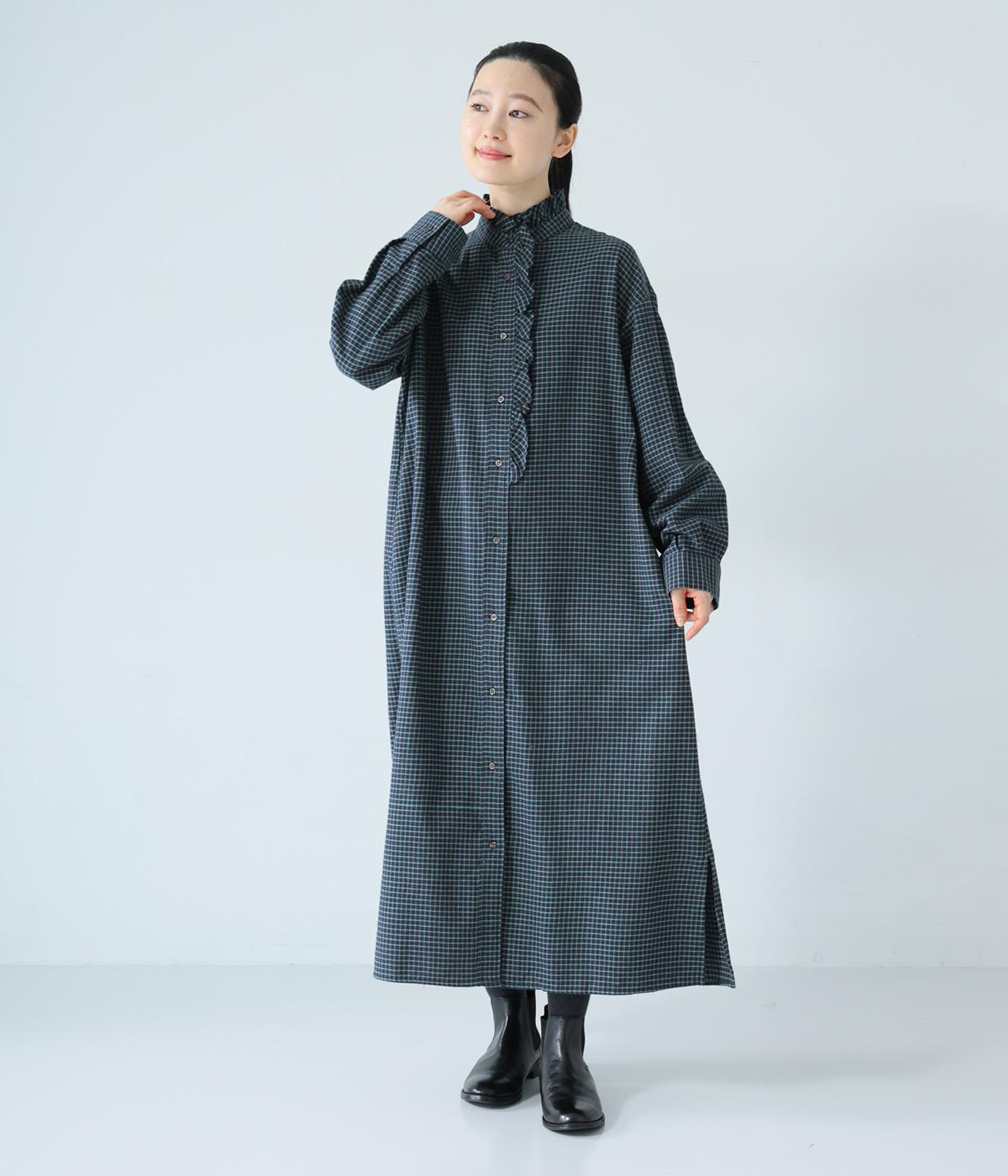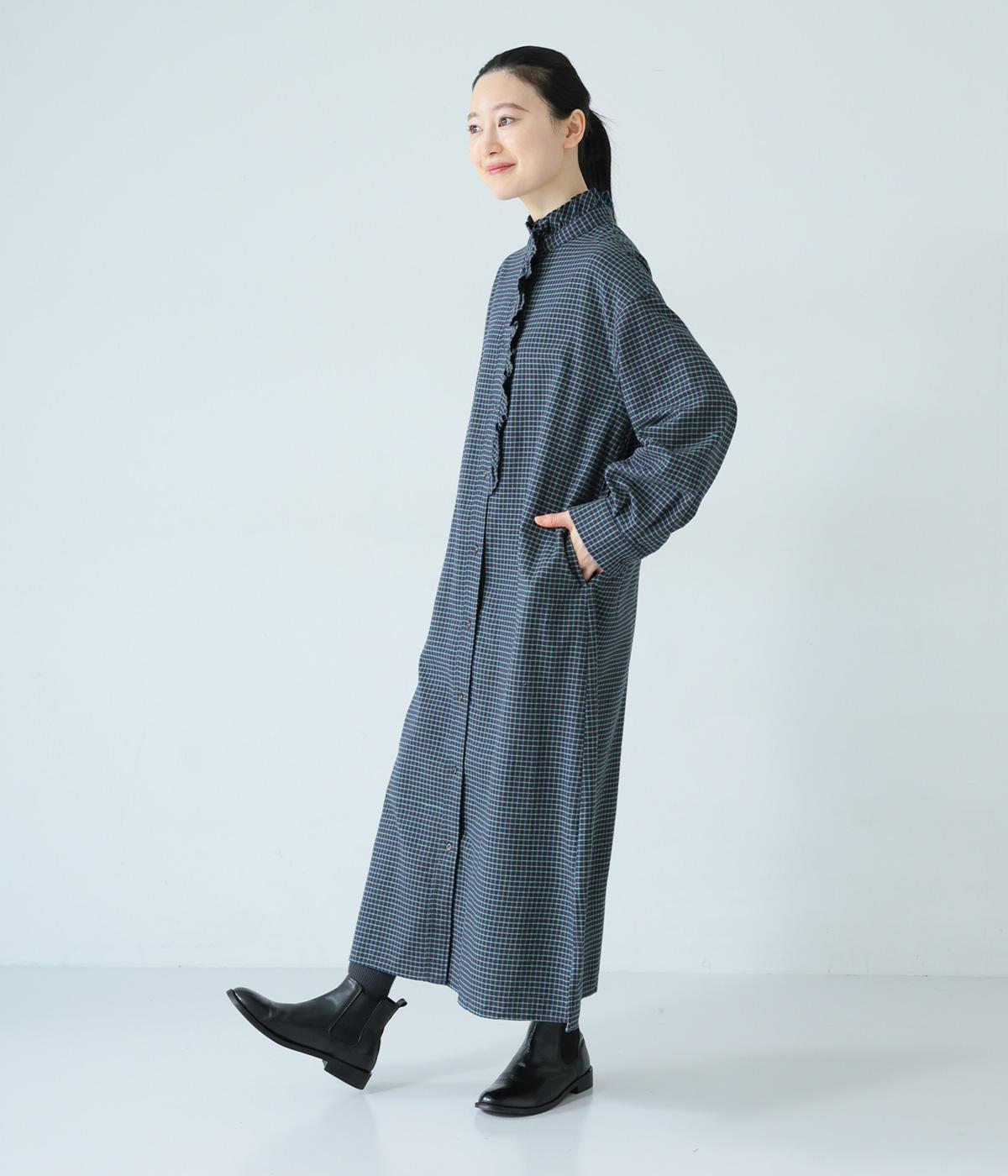 前立てにつながる切りっぱなしのフリル襟が華やか。ストンと落ちるシルエットが美しく、甘くなりすぎない大人らしい装いが楽しめます。前開きなので、羽織りものとしての着こなしもおすすめです。