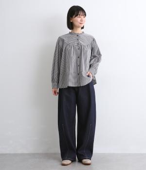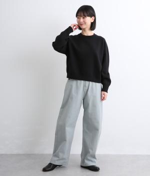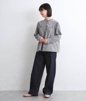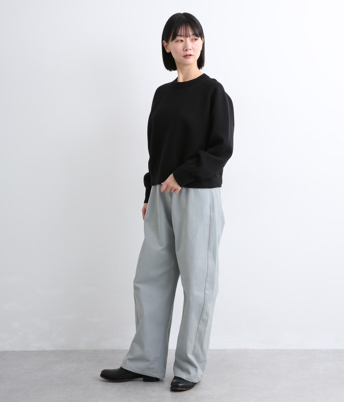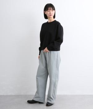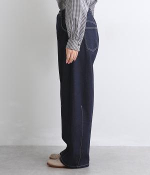 ほどよい厚みで季節を問わず活躍するパンツです。腰まわりはゆったりと、裾に向かってしぼまるシルエットが全体をすっきりと見せてくれます。ウエストはうしろにゴムをほどこし、穿き心地の良さを高めました。