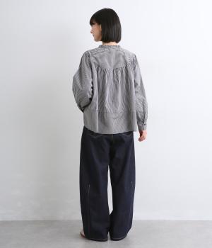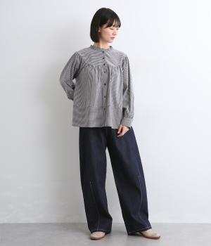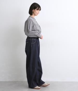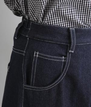 コットンならではのさらりとしたやさしい肌なじみです。穿くほどに体になじんでいく経年変化も楽しめる素材感です。ほどよいハリがシルエットをきれいに描きます。