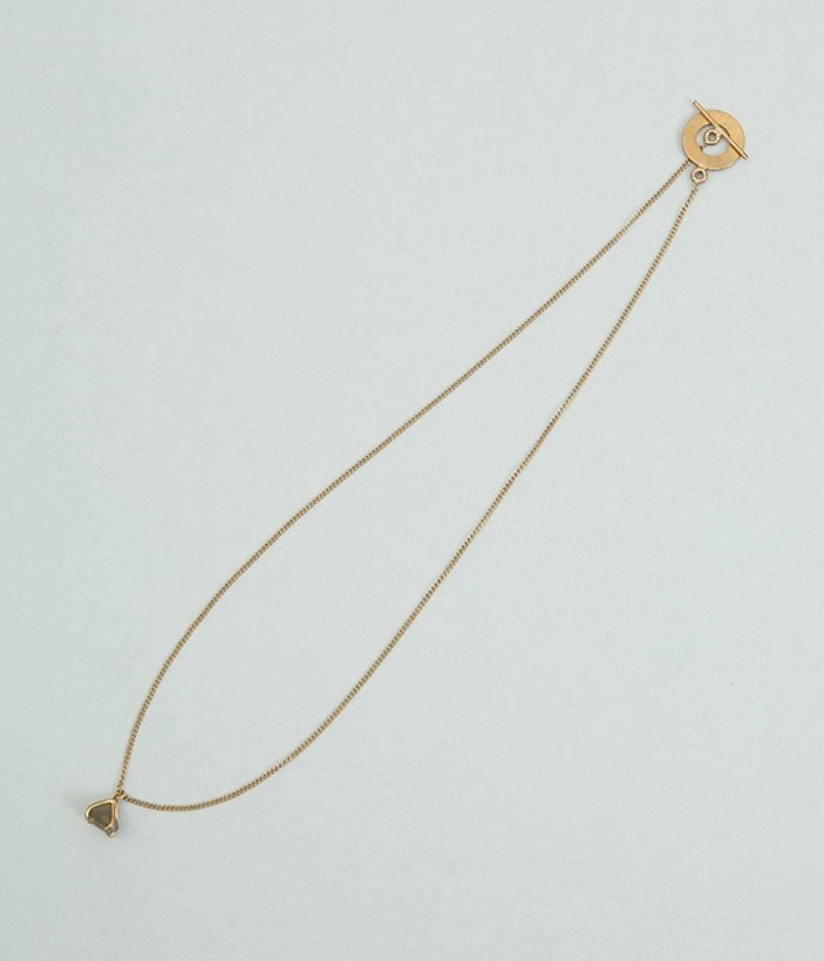 まるでキャンディのような、一粒の天然石があしらわれたラリエットです。天然素材ならではの表情豊かな風合いが魅力的。贅沢な気分になれる天然石のジュエリーが身につけた人の美しさを引き立たせてくれます。天然石をメインにしたり、真鍮を主役にしたりと2WAYの使い方ができるデザインになっているので、シーンやコーディネートに合わせてアレンジを楽しんでください。