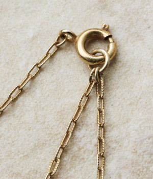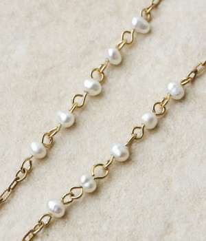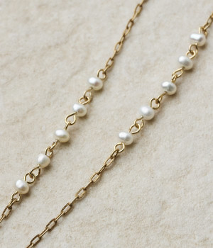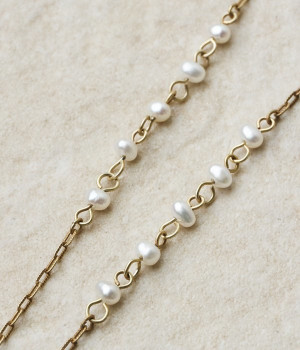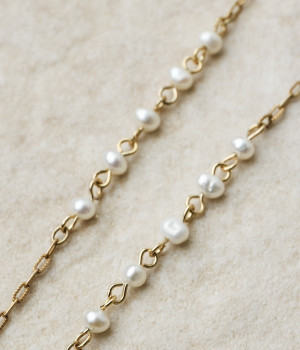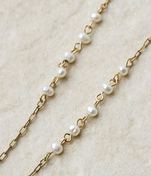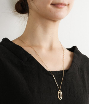 パリの骨董品店で見つけたヴィンテージパーツたちをリプロダクトしたオリジナルイニシャルシリーズのネックレスです。淡水パールをアクセントにしたロングネックレスは、アジャストリングで長さも2段階の調節が可能なので、合わせるトップスによってアレンジを。エンドにはベビーリングをアクセントにつけているのも特徴です。