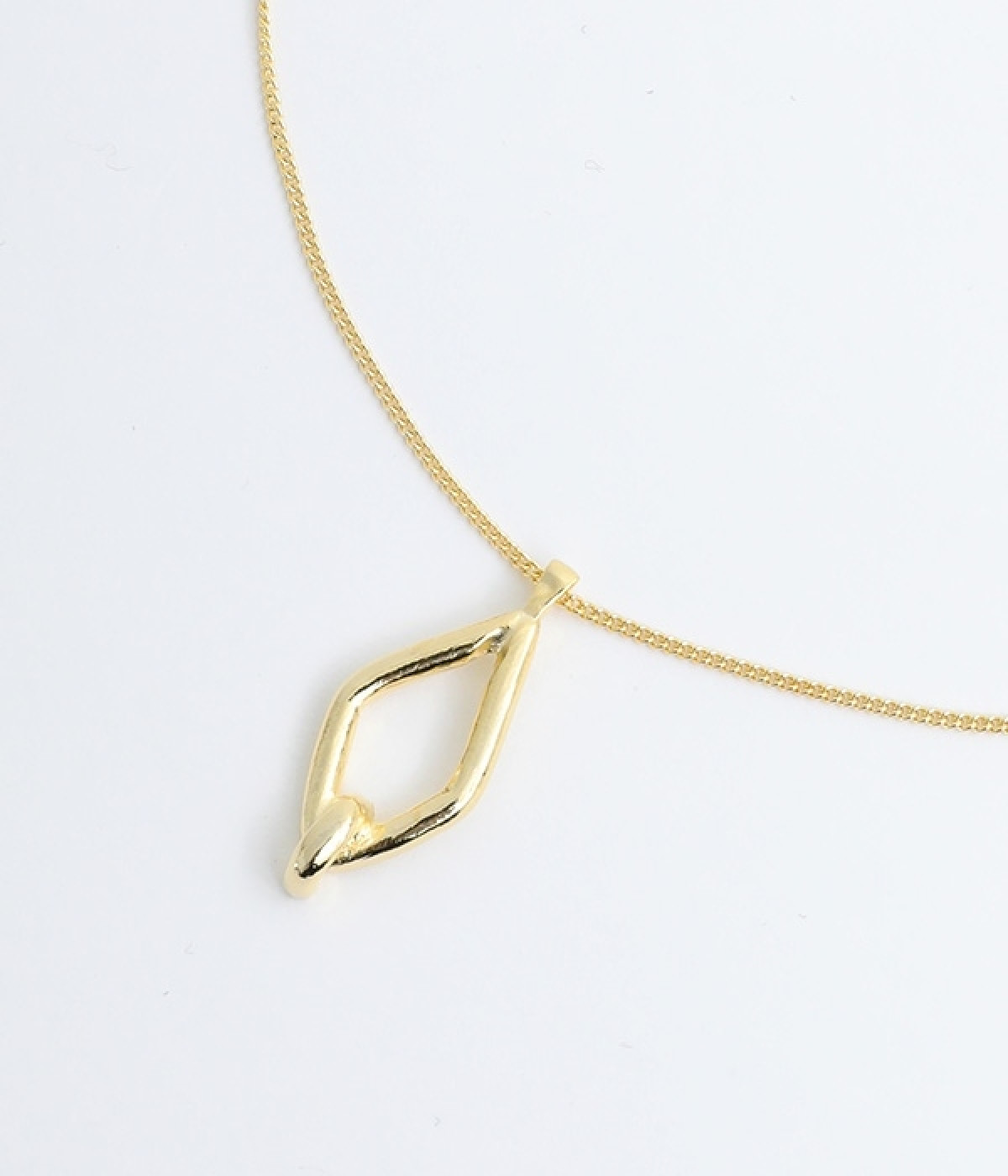 やわらかな線のひし型フォルムがかわいらしい、ワントップのネックレスです。シンプルなデザインでどんな装いにも合わせやすく、通年で幅広いコーディネートに活躍します。品のあるメタルの輝きが顔まわりをさりげなく華やかに。合わせるトップスによってアジャスターで長さ調節も可能。チェーンやパールのネックレスとの重ね付けもおしゃれです。