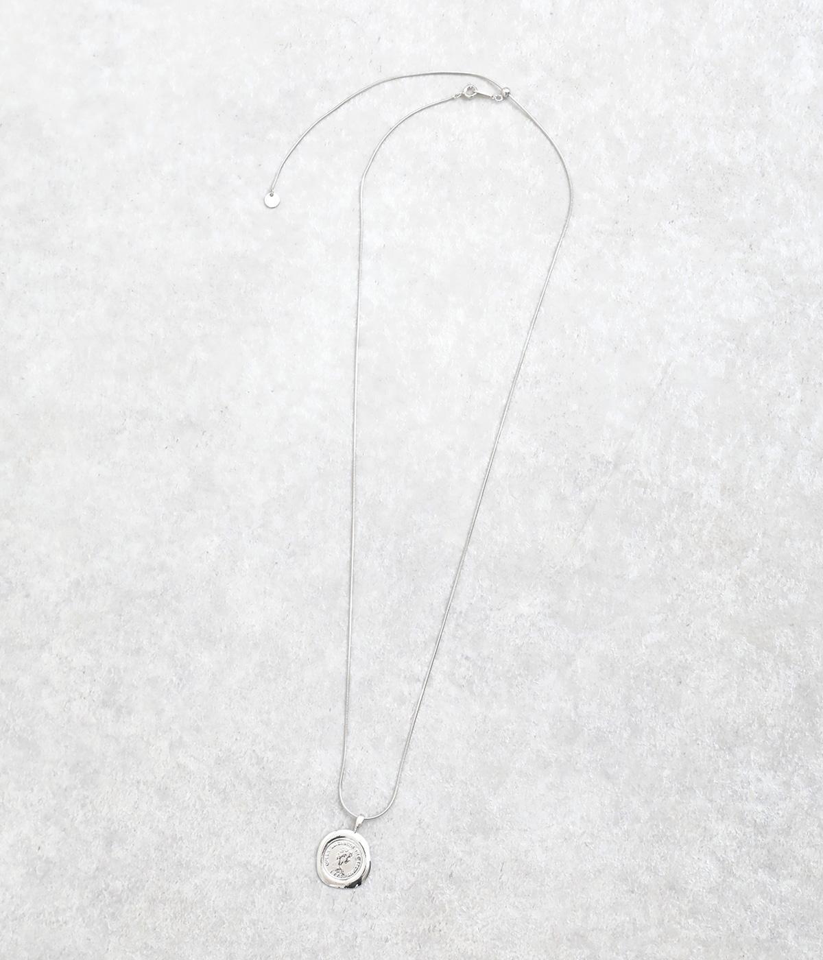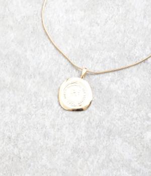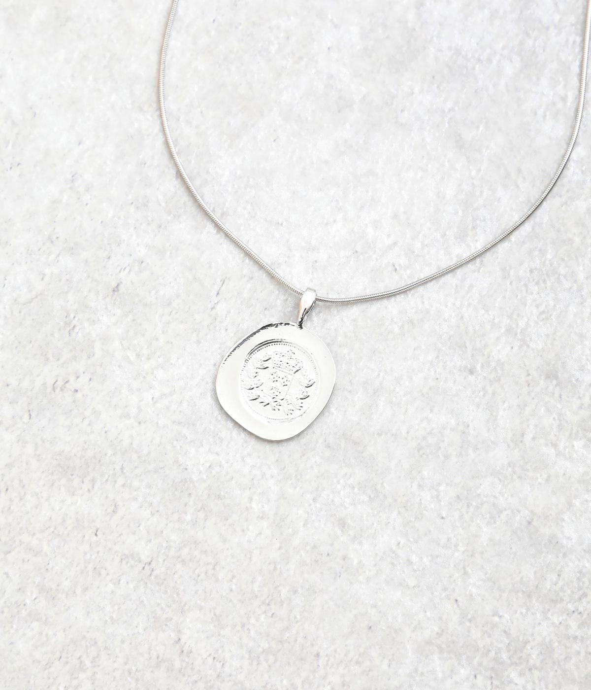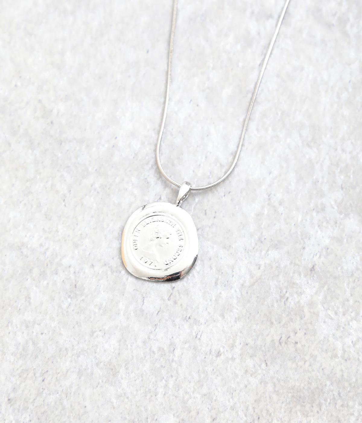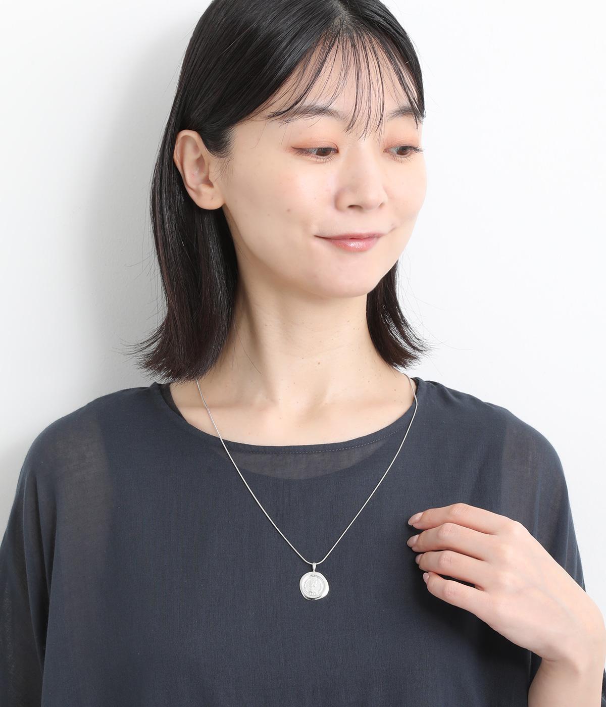 カジュアルからきれいめまで幅広く対応できるコインモチーフのネックレスです。ミディアムからショートまでお好みのバランスで着用できます。チェーンネックレスなどとの重ねつけもおすすめです。