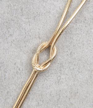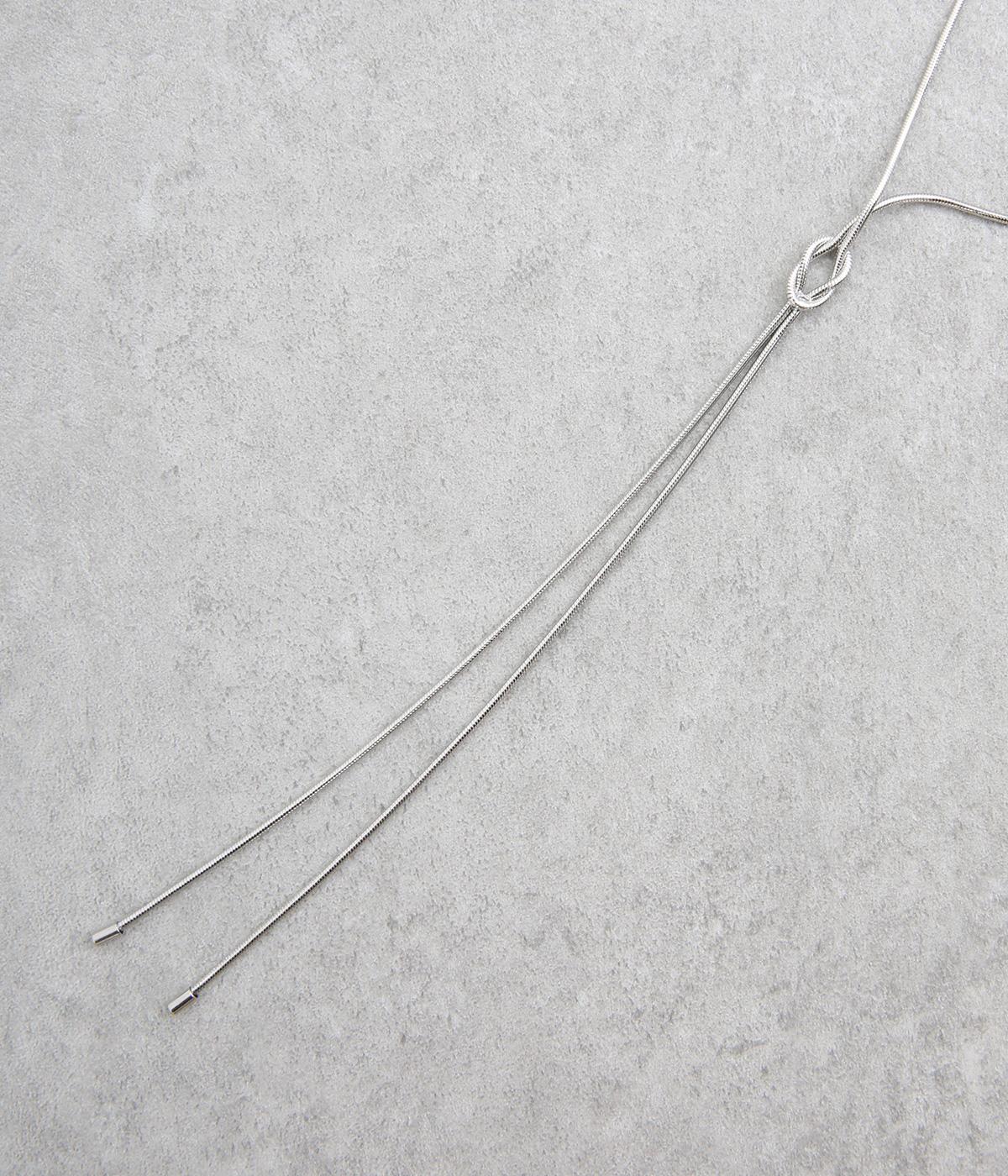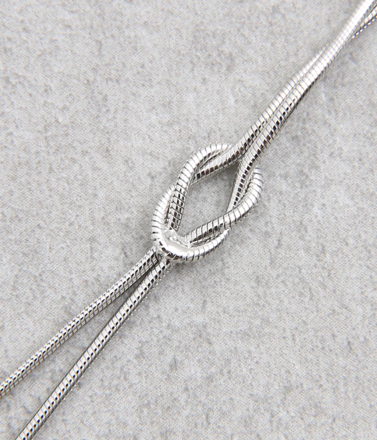 ノットデザインのロングネックレスです。5cmのアジャスター付きでお好みの長さに調整していただけます。長く揺れるデザインが華やかさを演出してくれます。