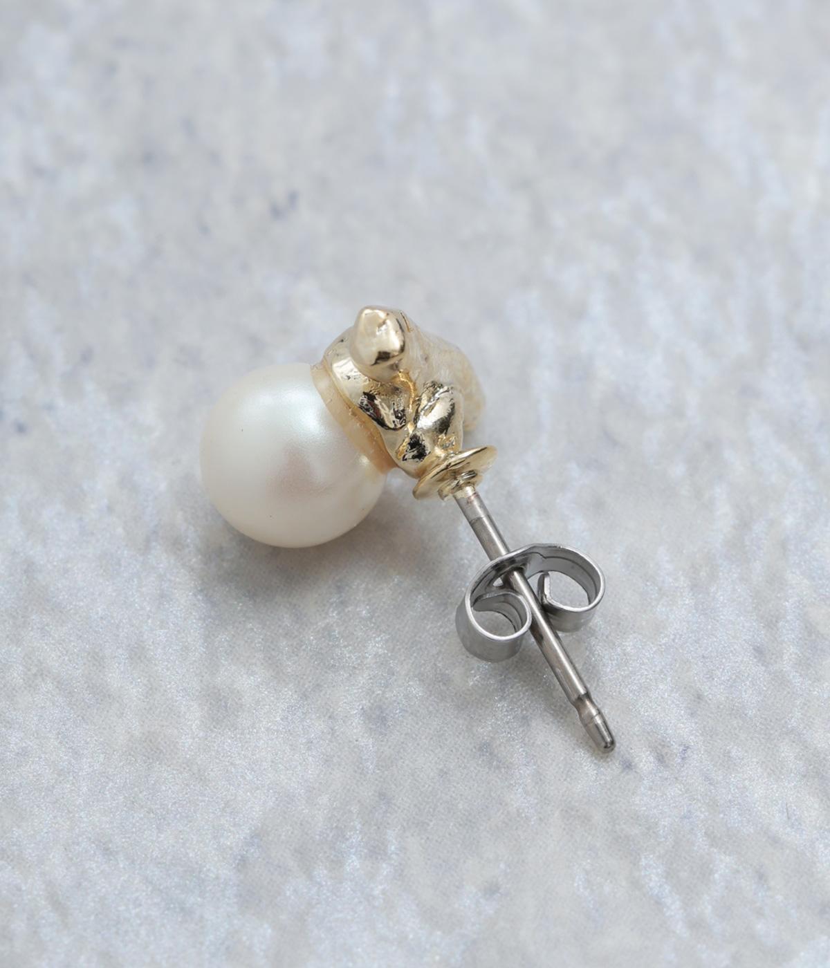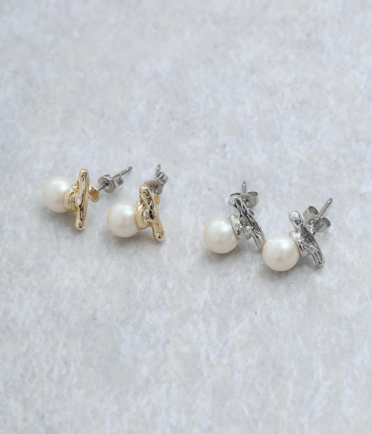 品のある輝きをもつ合金にプラパールを組み合わせました。ステンレスキャッチ&チタンポストを採用し、アレルギーにも配慮したつくりに。