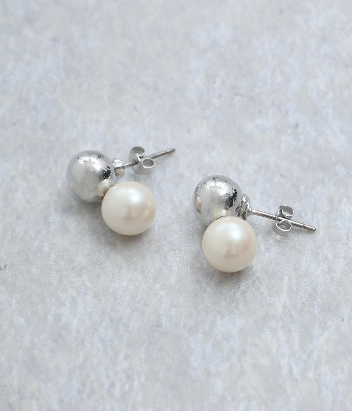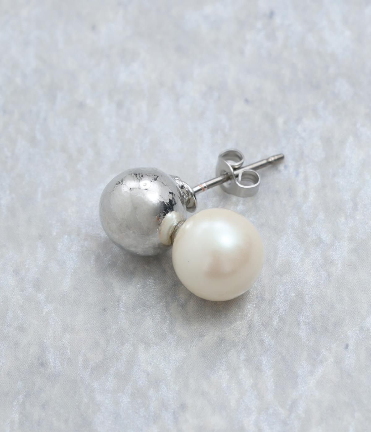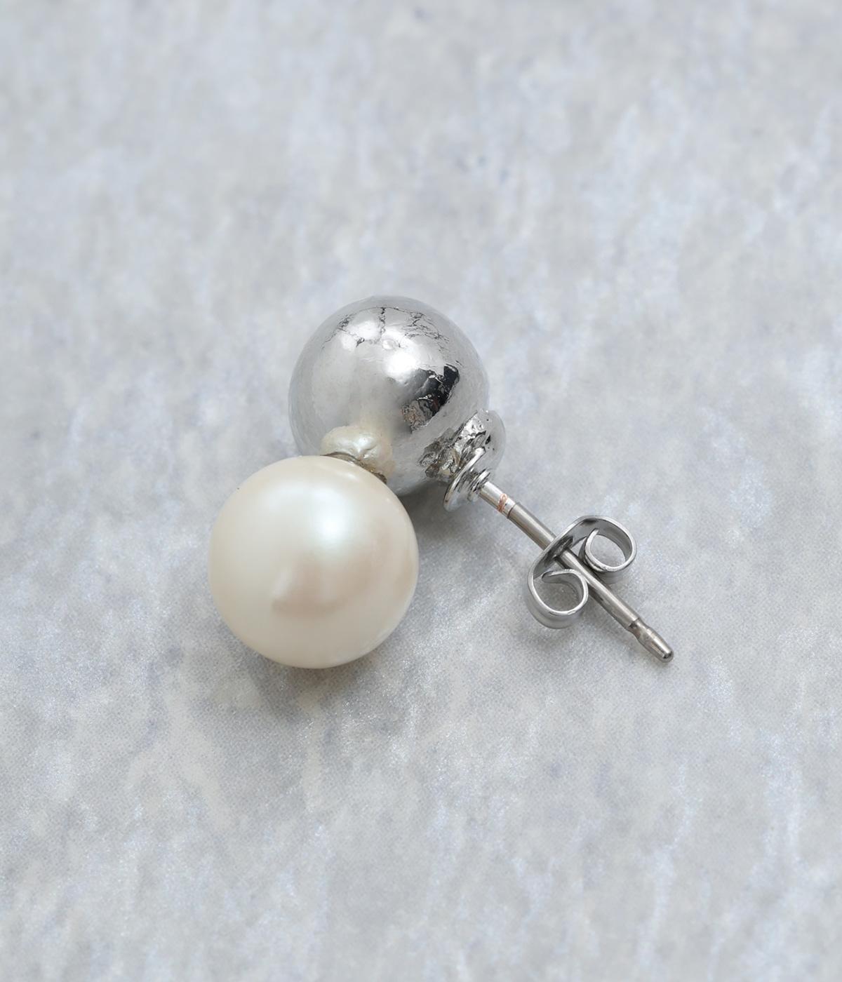 品のある輝きをもつ合金にプラパールを組み合わせました。ステンレスキャッチ&チタンポストを採用し、アレルギーにも配慮したつくりに仕立てています。