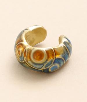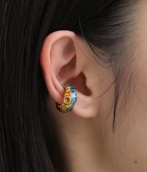 夕方の通り雨が止んだ瞬間を表現したイヤーカフ。水たまりにぽつぽつと落ちる雨粒が水紋を描き、雲間からさし込む夕焼けが水面に鮮やかなオレンジ色のグラデーションを映します。適度なボリューム感で顔まわりを一気に華やかに魅せます。