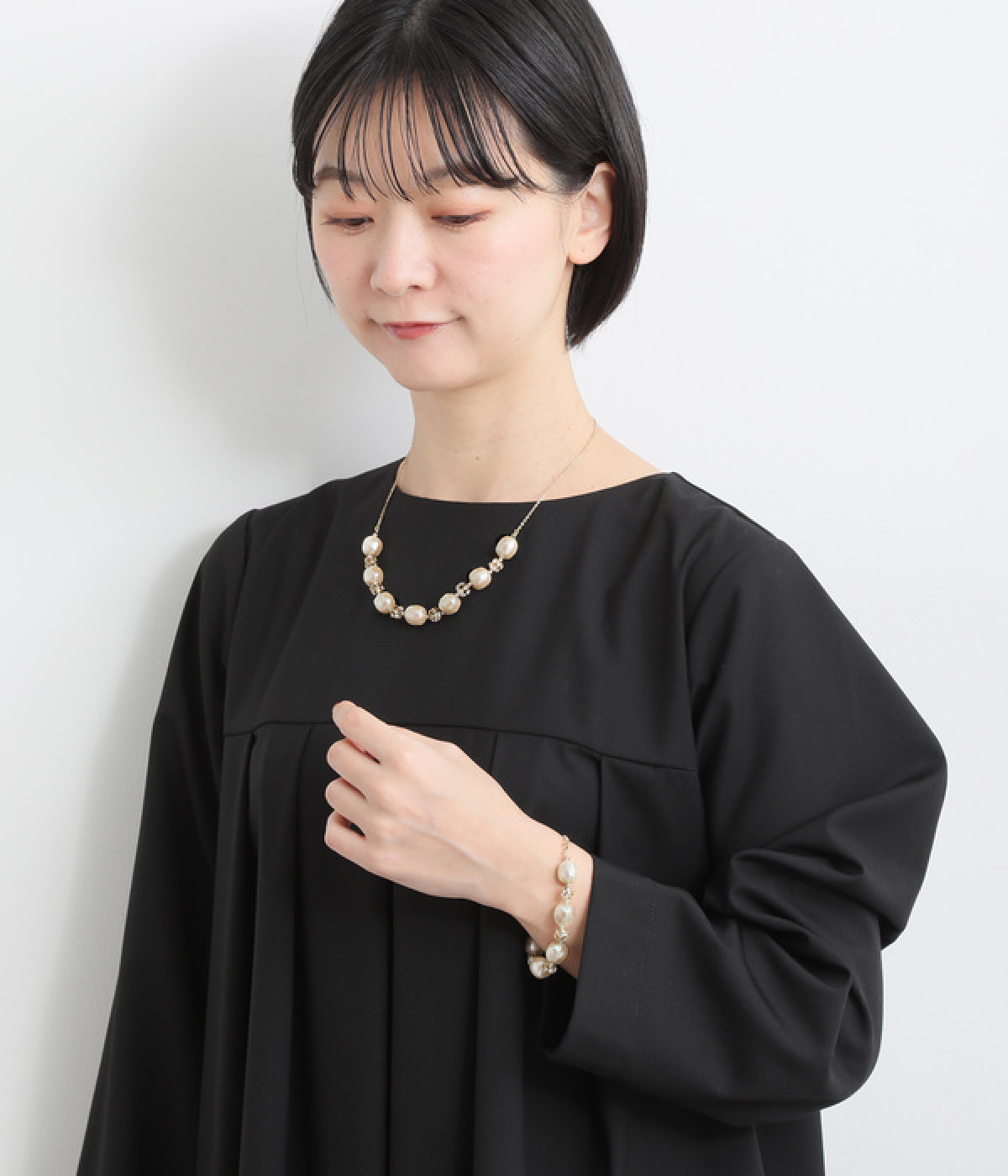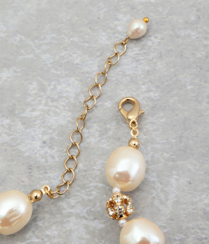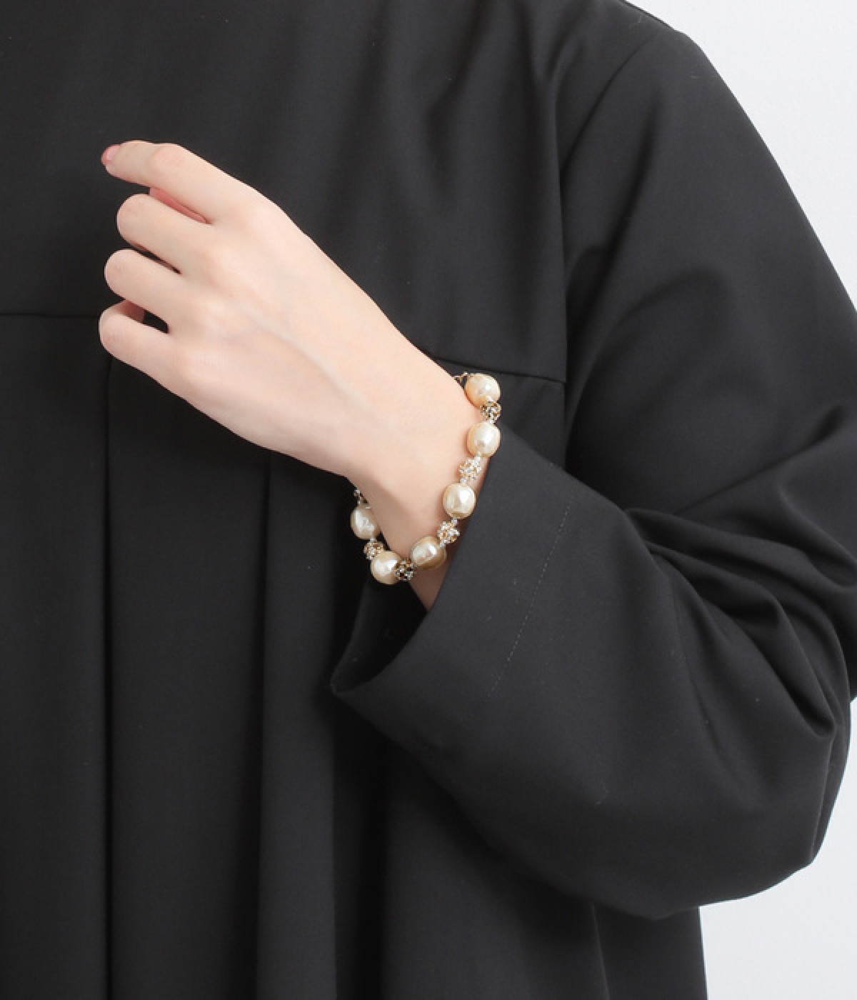 ナチュラルな輝きが美しい淡水パールと上品なきらめきの丸いロンデルビーズを贅沢に使ったブレスレットです。動くたびにさりげなく揺れるモチーフが手首回りを美しく可憐に演出。合わせやすいデザインなので、さまざまな着こなしにぴったり。普段使いにはもちろん、結婚式やパーティなどのお呼ばれシーンにも◎。同シリーズのイヤーアクセサリーやネックレスと一緒に使うのもオススメです。