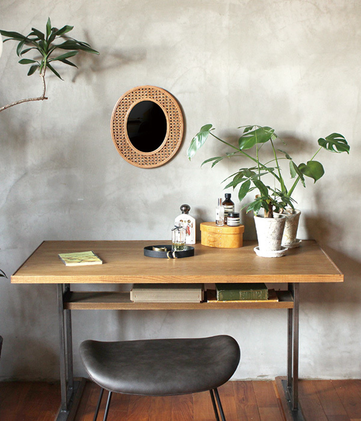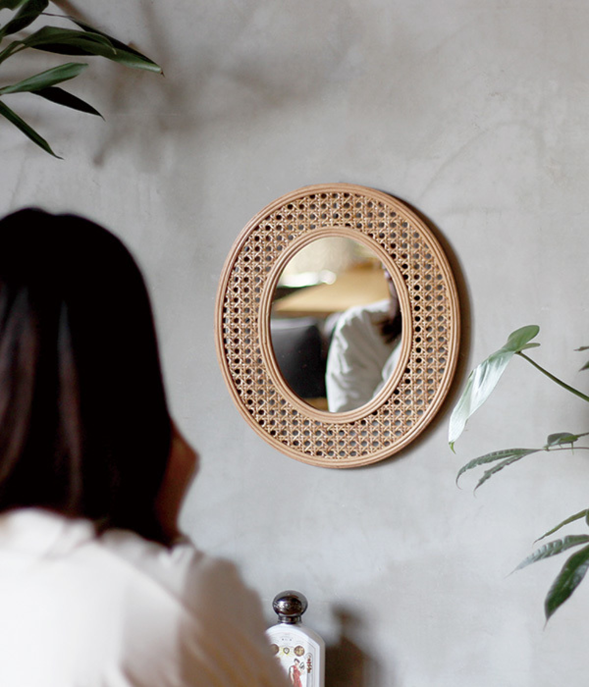 上質なラタン素材で縁取った、ラウンド型のミラーです。アンティークのような味わいとモダンでナチュラルな表情を持った編みが特徴。一つひとつ丁寧に編まれたフレームが美しく、インテリアとしても優秀です。ツヤを感じるアーバンカラーで、リビングや洗面所、玄関など、さまざまな場所で活躍してくれます。