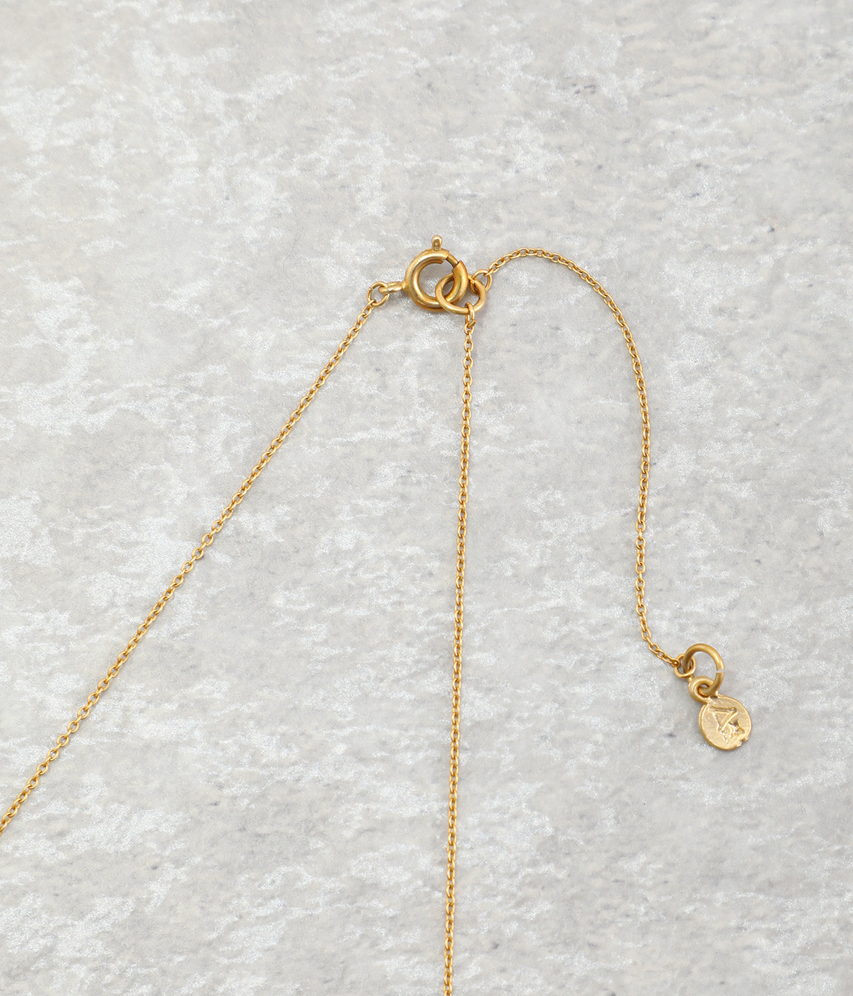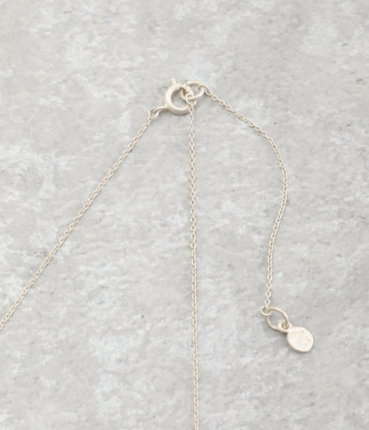 コットンパール特有のナチュラルな表面が上品。端には細かなチェーンを組み合わせることで、軽やかさが加わります。