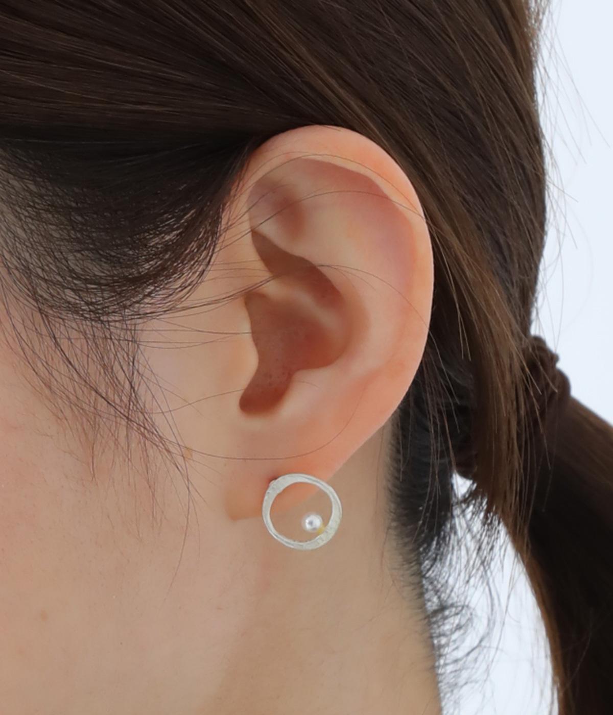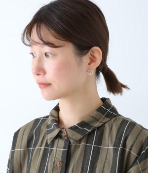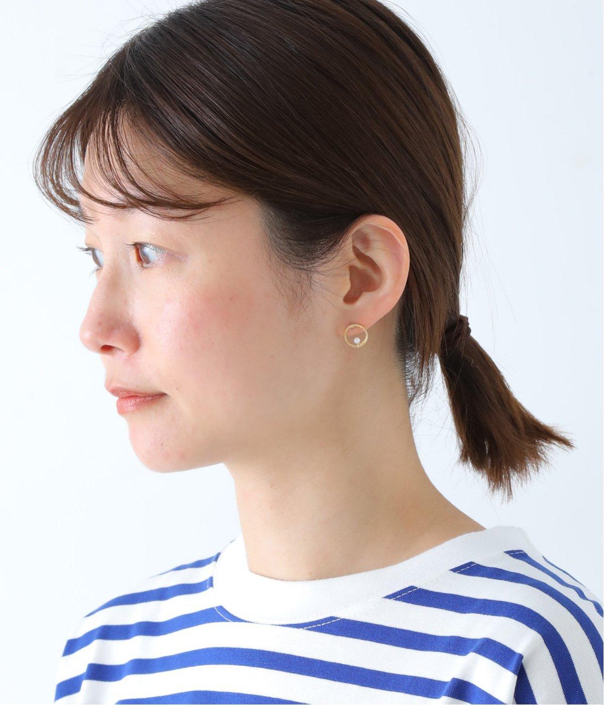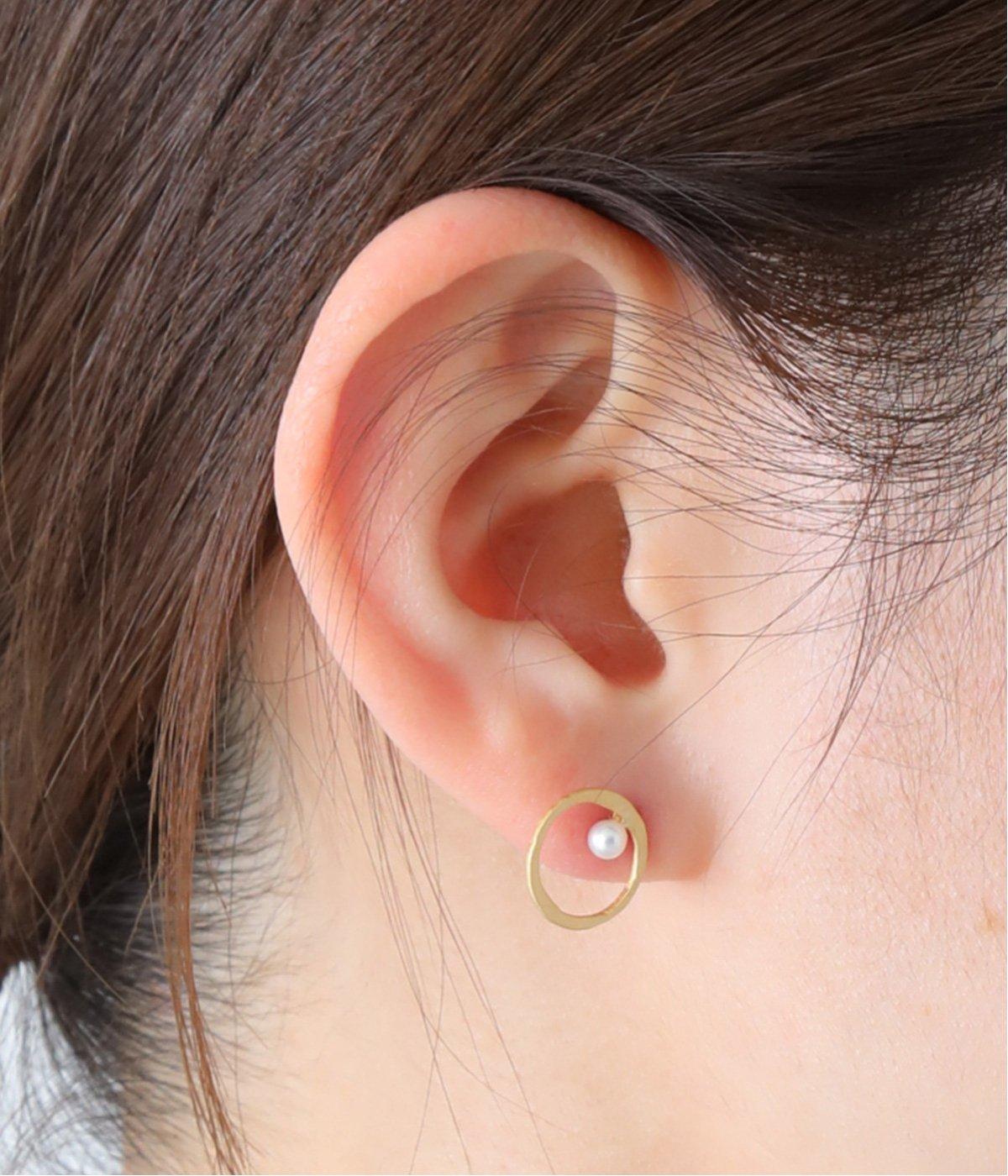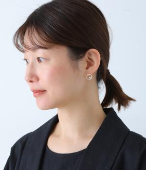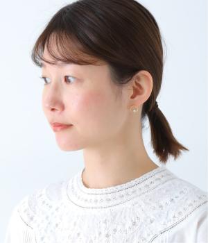 上下でアシンメトリーに配置された、小さな貝パールが愛らしいピアス。何気ないしぐさの中でも、そっと横顔をきれいに見せてくれるワンポイントになります。