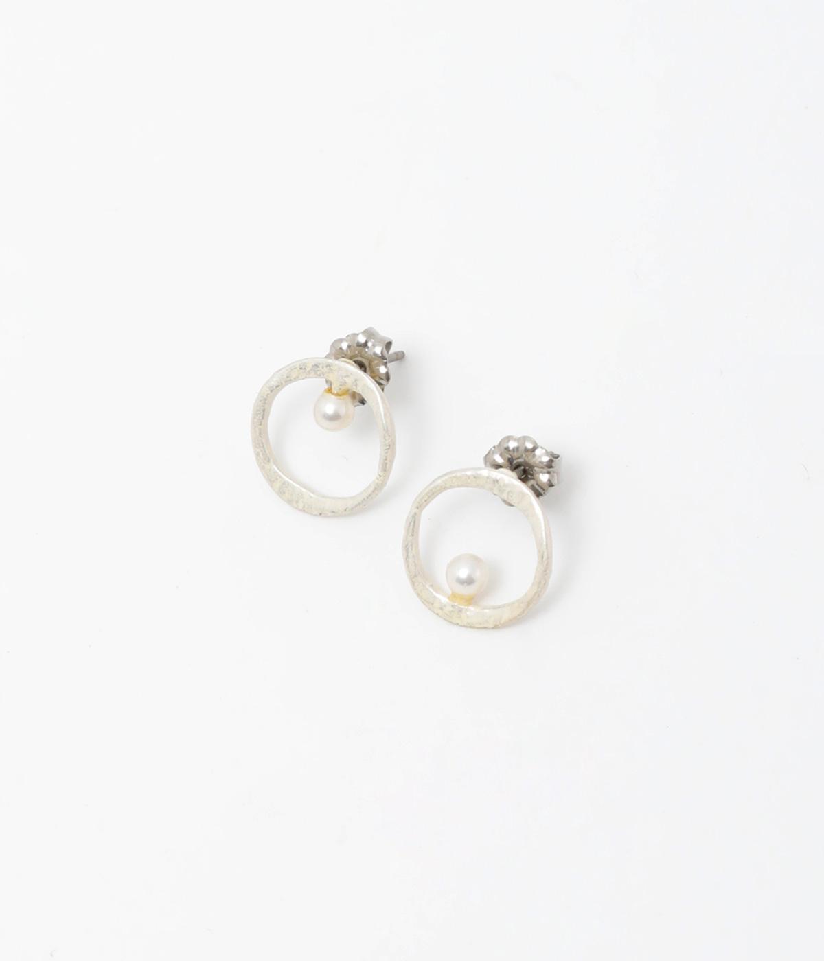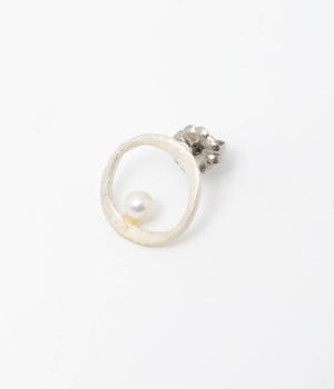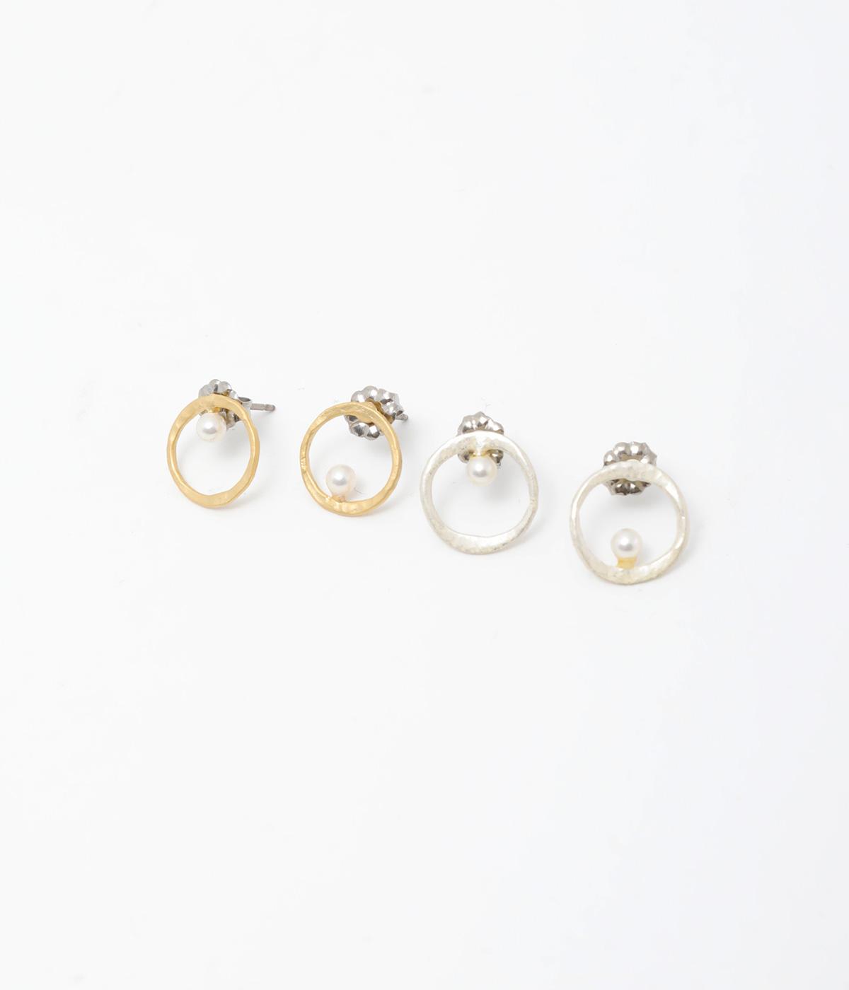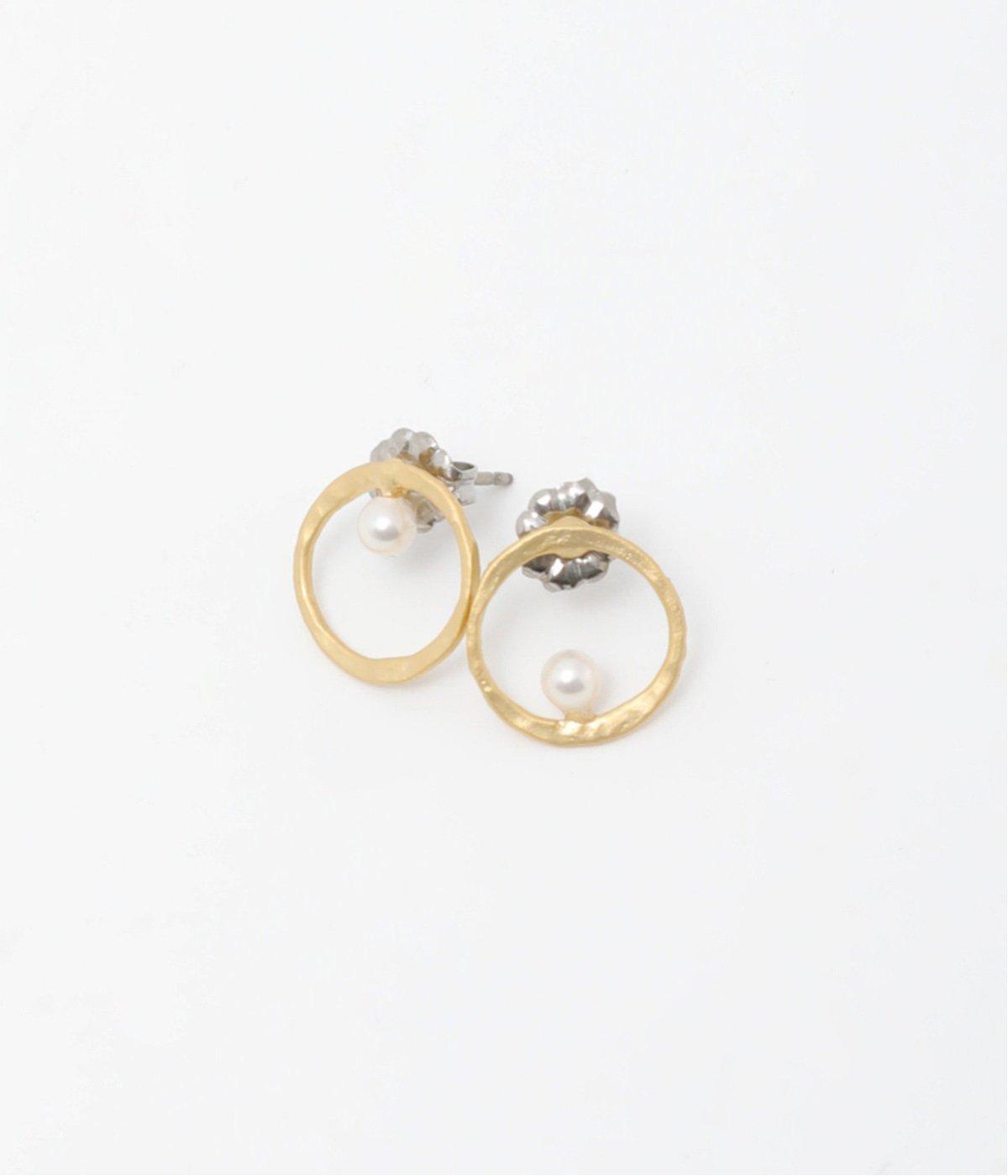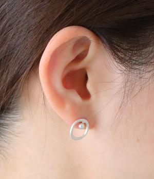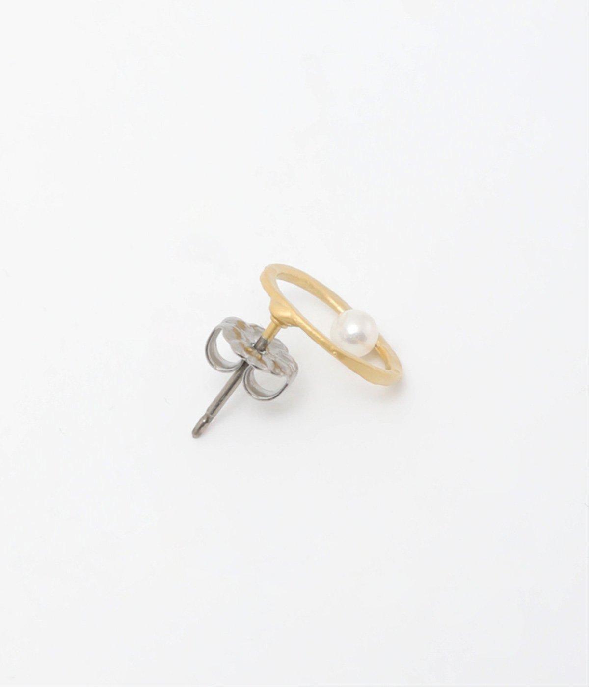 上下でアシンメトリーに配置された、小さな貝パールが愛らしいピアス。何気ないしぐさの中でも、そっと横顔をきれいに見せてくれるワンポイントになります。
