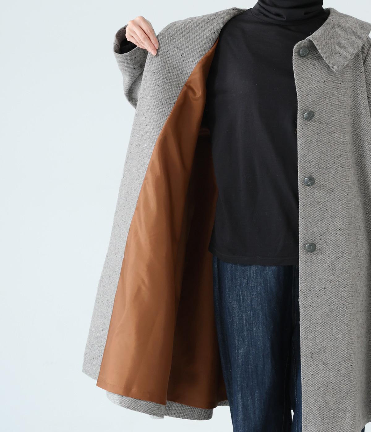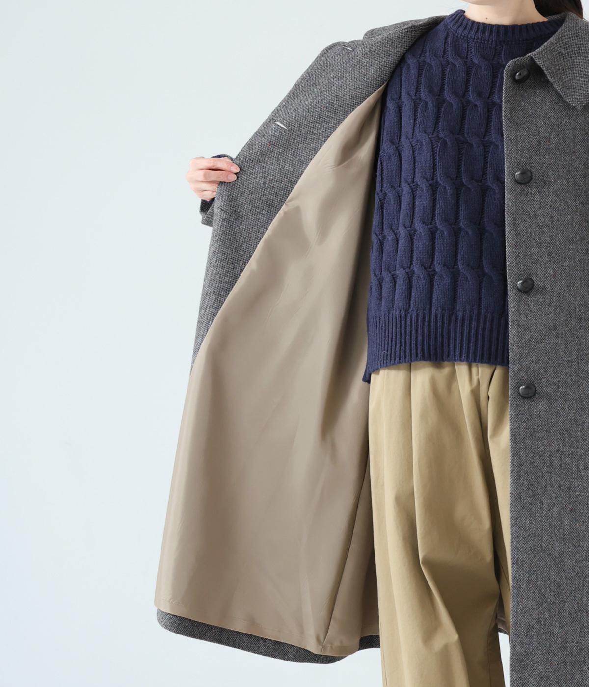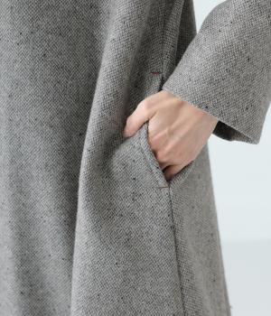 ふっくらとした起毛感とあたたかみのある、やわらかな風合いのウール混生地。ネップ糸を使用することでナチュラルな表情をプラスしました。さらりとした滑りのよい裏地つきです。