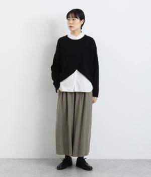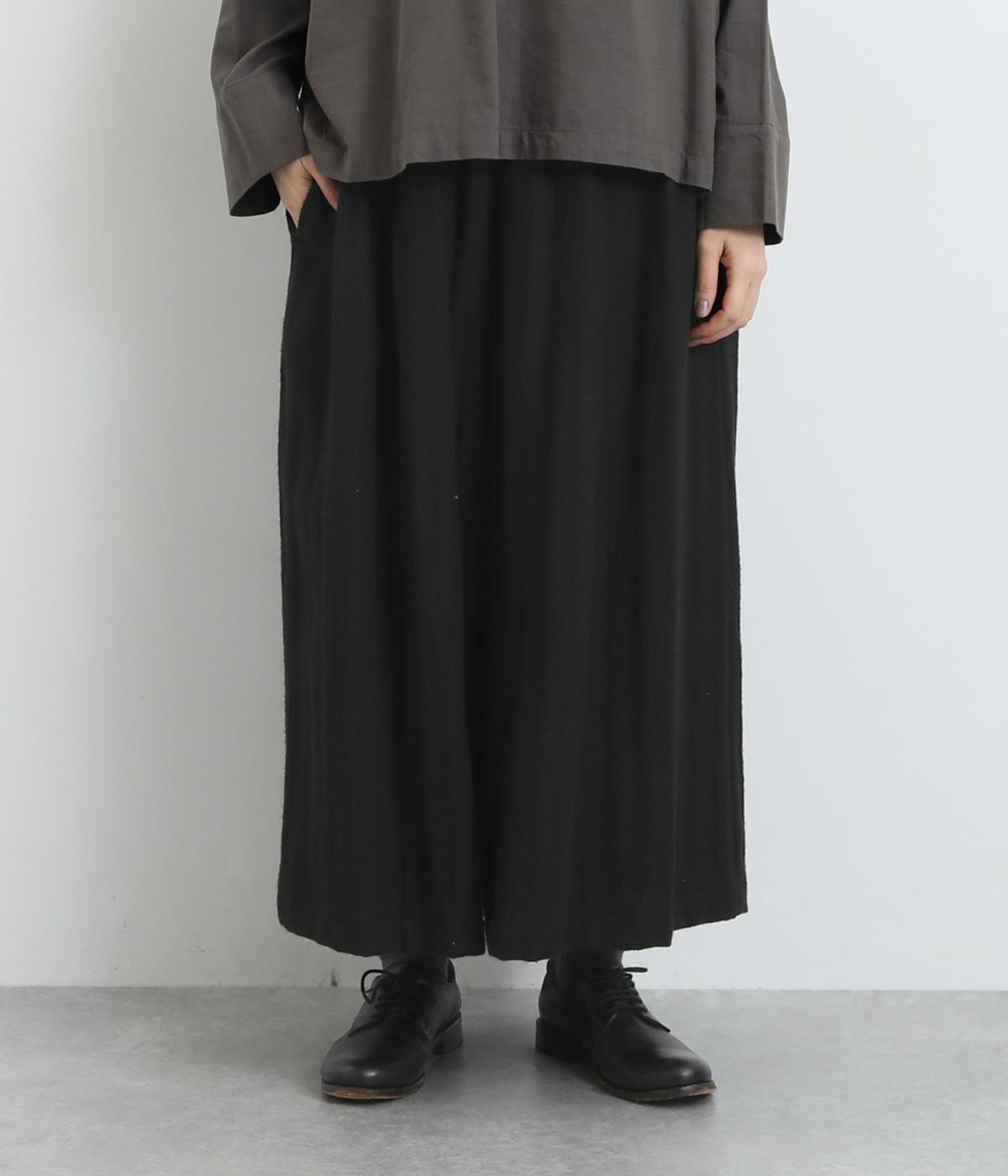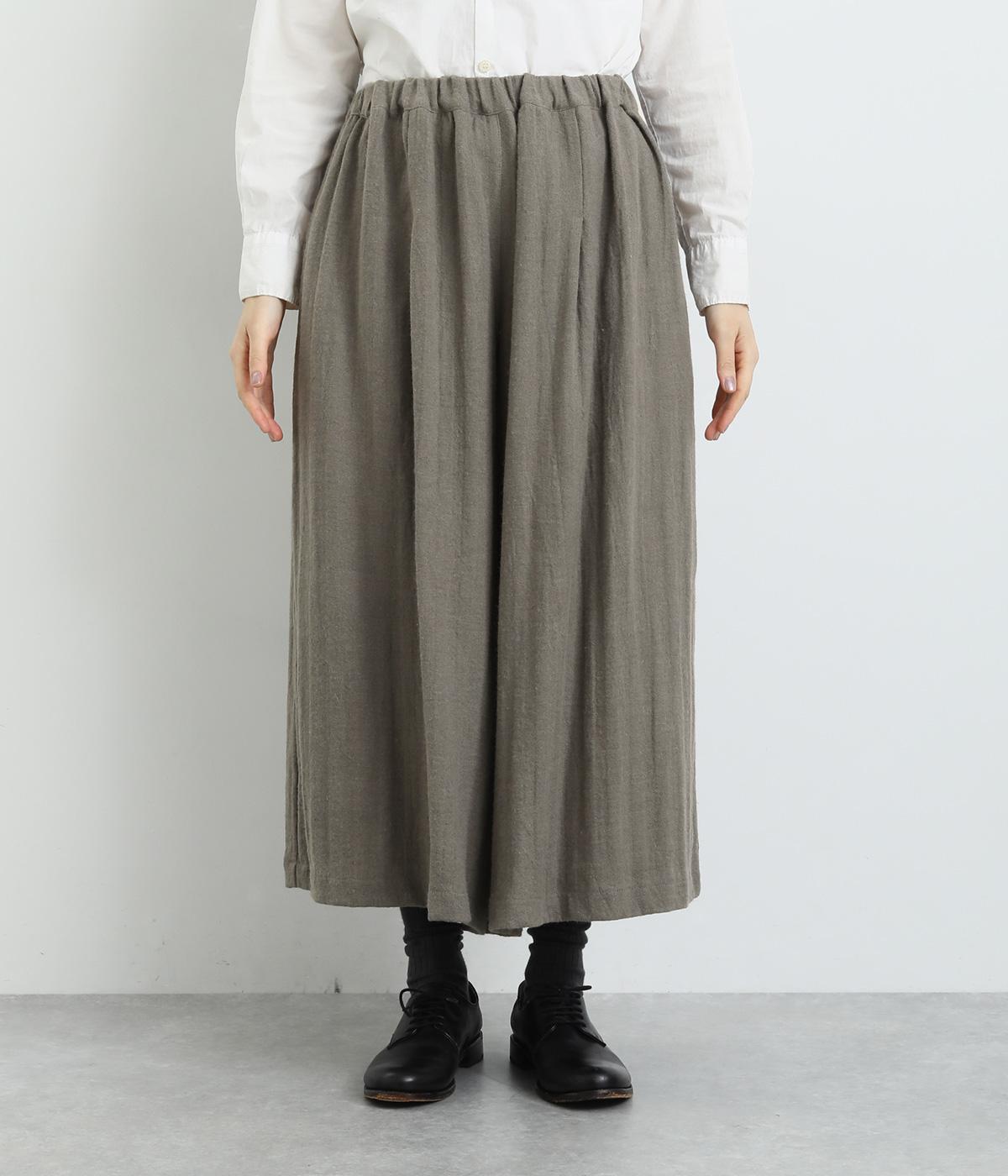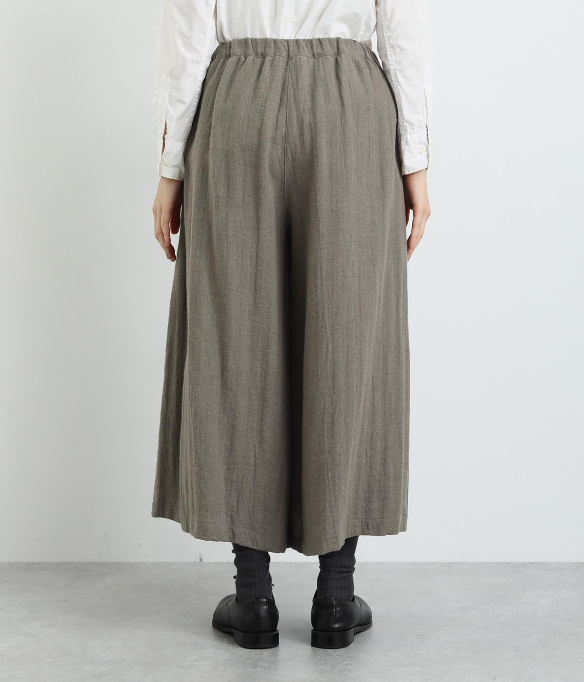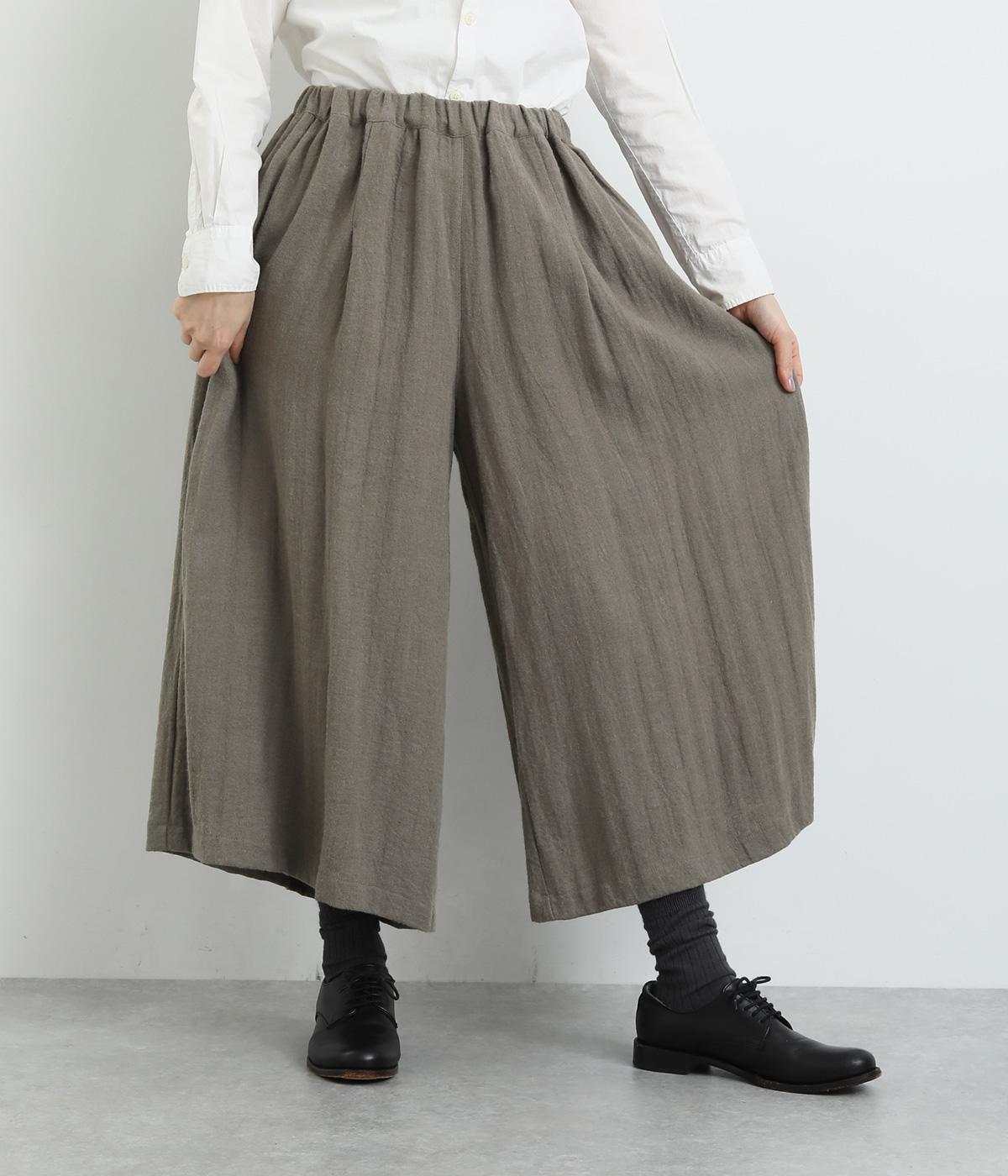 生地を贅沢にたっぷりと使用した、スカート見えするガウチョパンツです。足元がすっきり見える丈感でスタイリングバランスも取りやすくしました。落ち着いた色みで、シックな装いにもはまります。ウエストはオールゴムのイージー仕様。