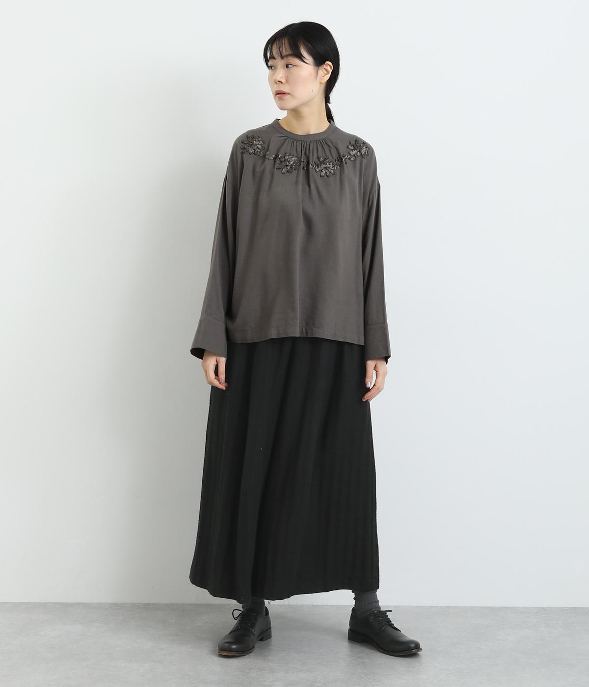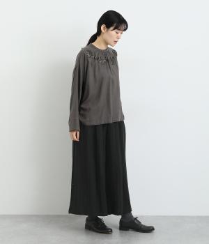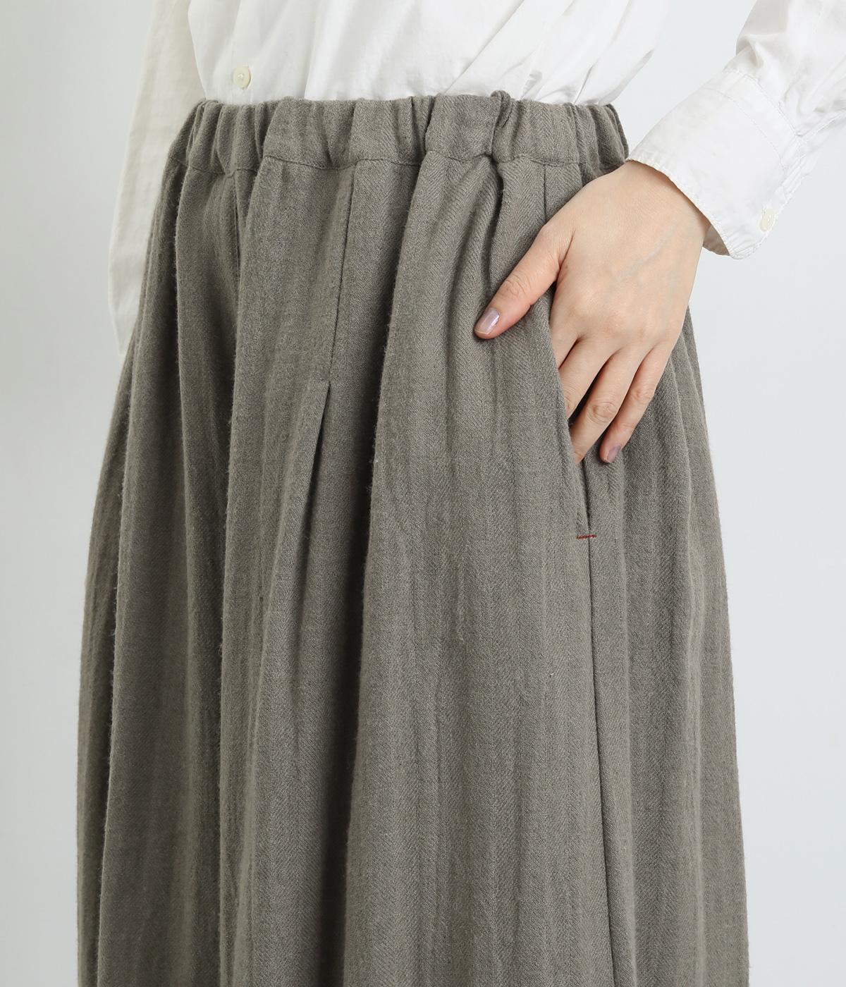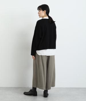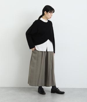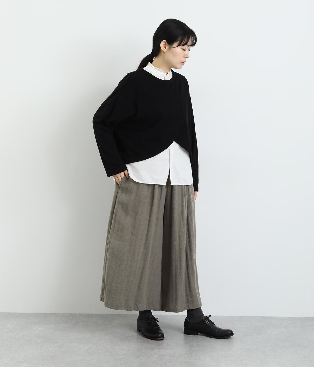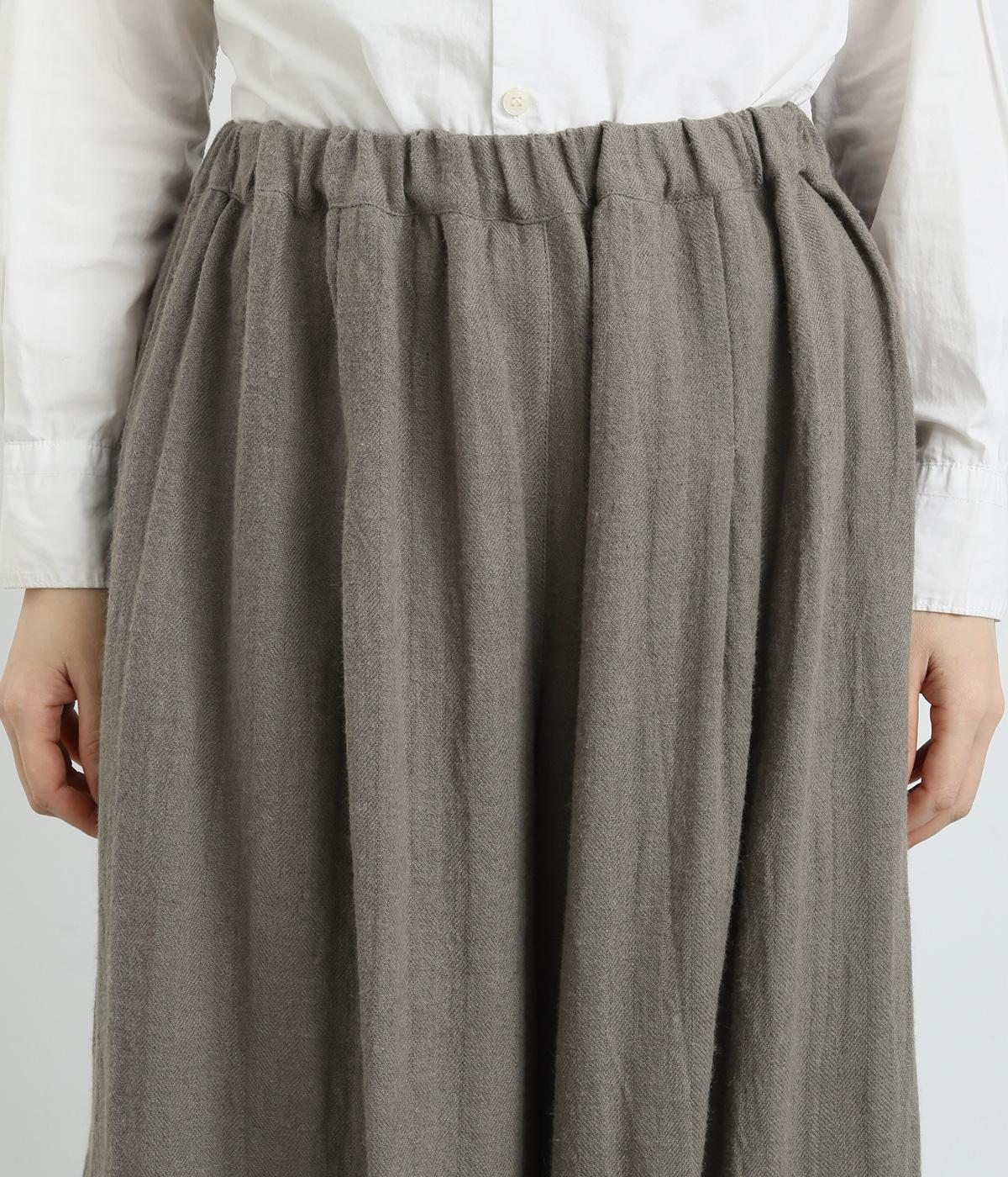 生地を贅沢にたっぷりと使用した、スカート見えするガウチョパンツです。足元がすっきり見える丈感でスタイリングバランスも取りやすくしました。落ち着いた色みで、シックな装いにもはまります。ウエストはオールゴムのイージー仕様。
